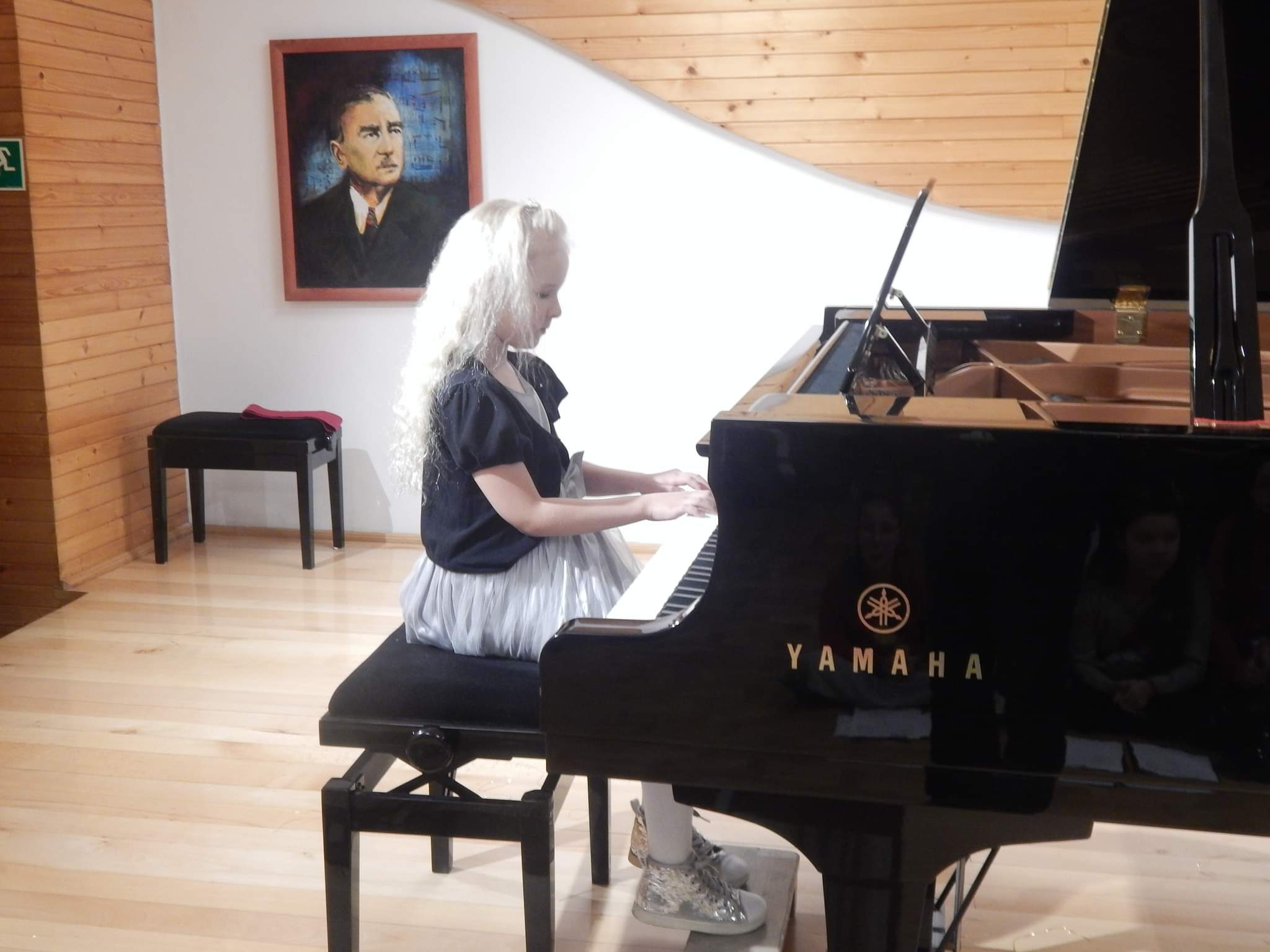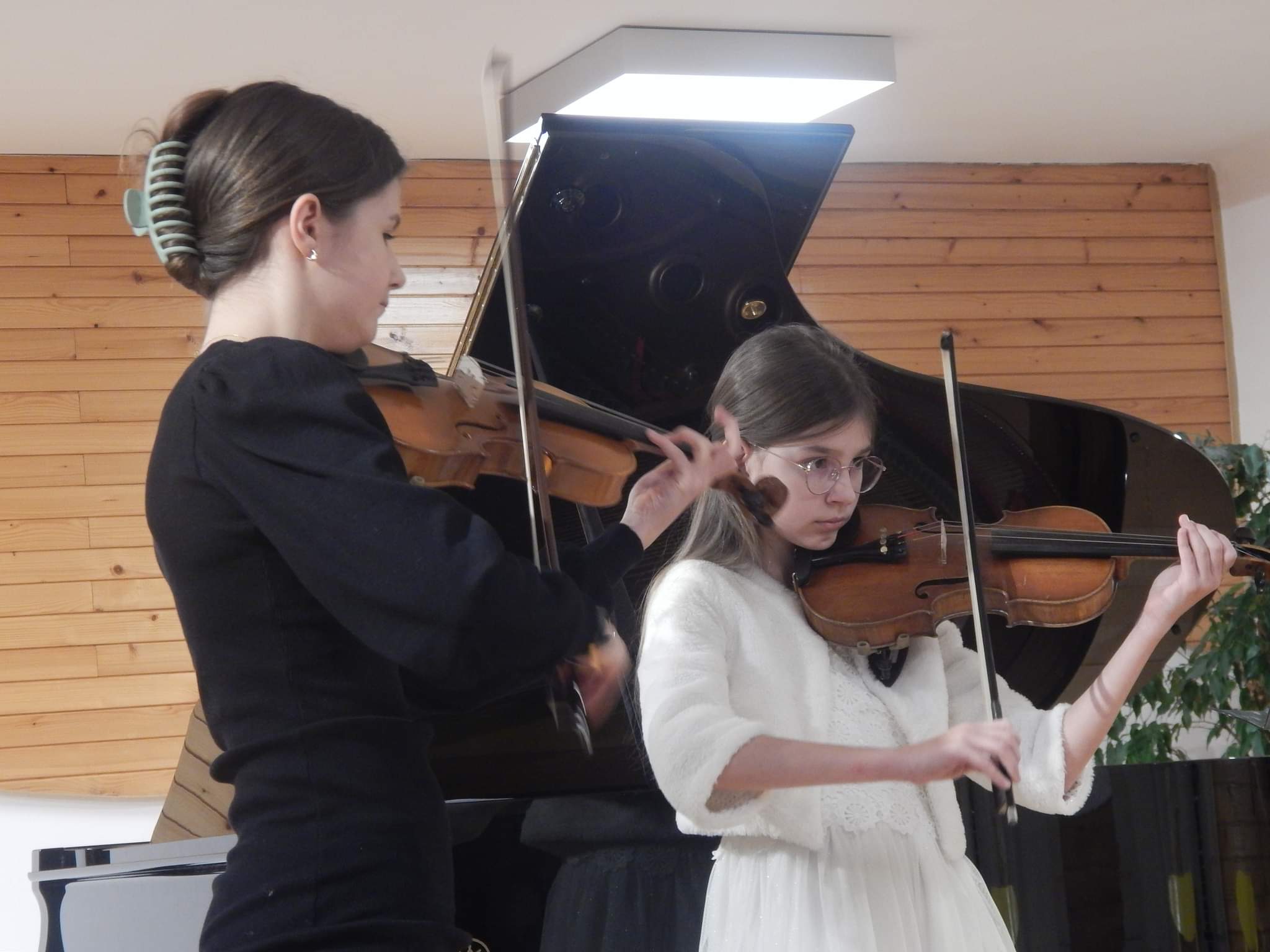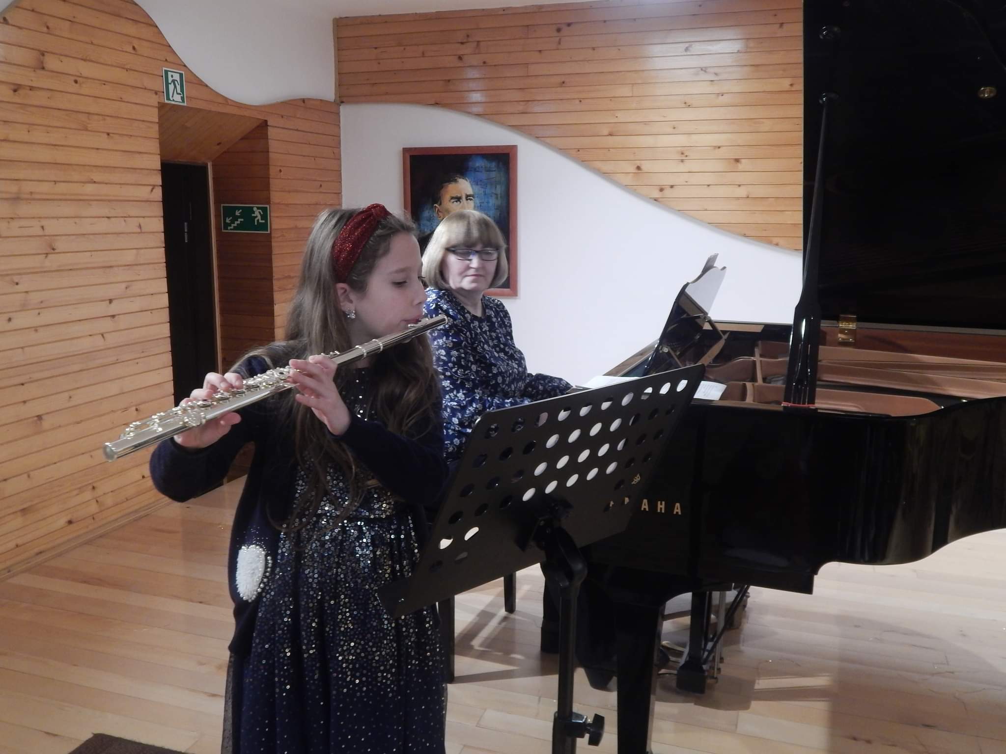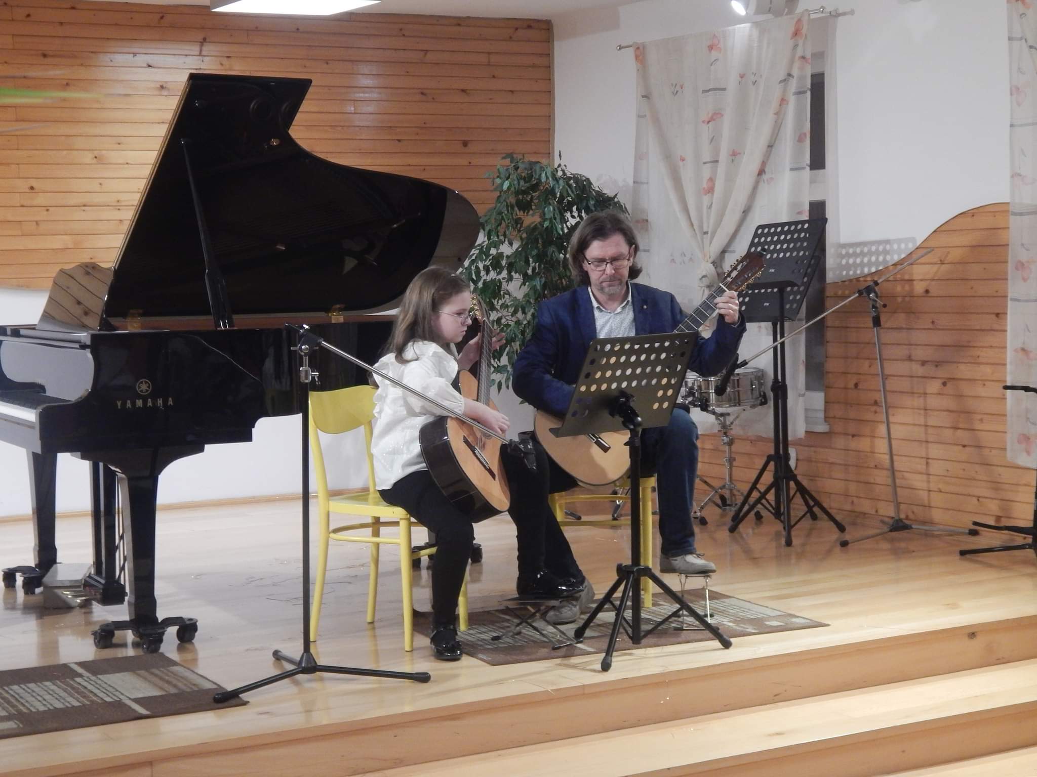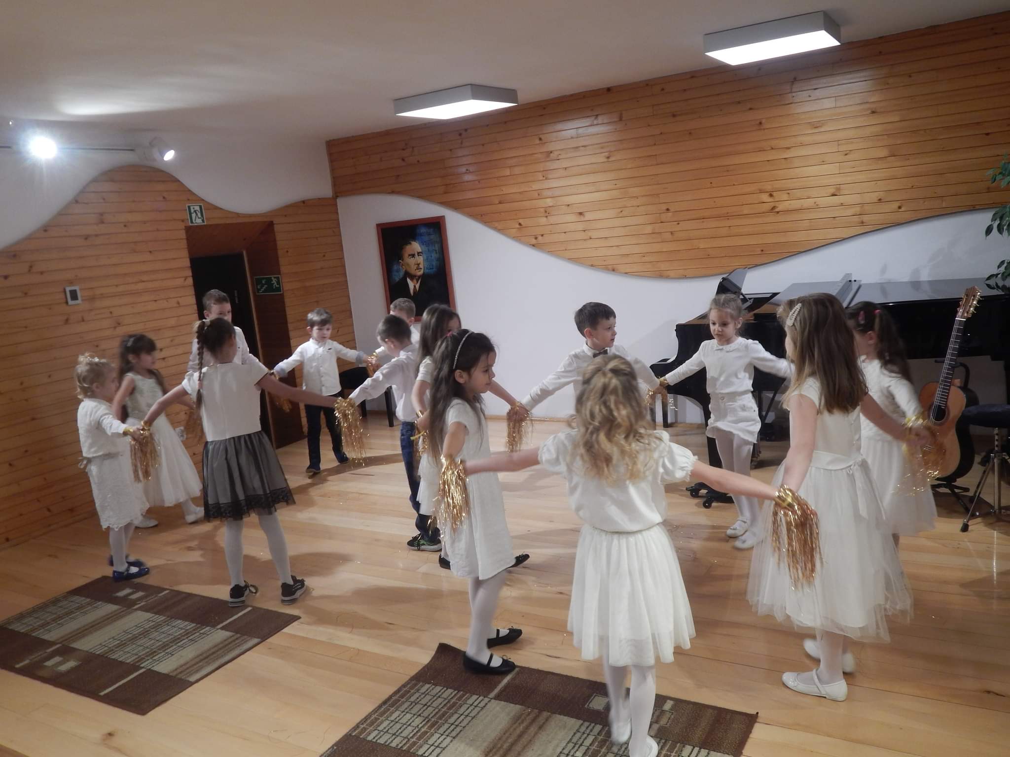 poniżej galeria zdjęć z koncertu przedstawiająca wykonawców, nauczycieli i zebrananą publiczność.