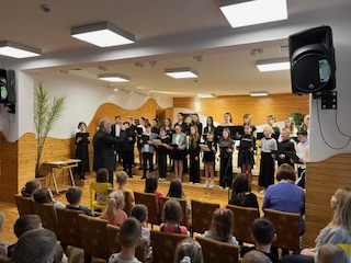 Dnia 12 marca 2025 r. odbył się w naszej szkole Koncert Muzyki Współczesnej. Wystapił chór szkolny oraz soliści. W przeważającej części koncertu utwory jakie zaprezentowali wykonawcy były polskich kompozytorów. Usłyszeliśmy takie znane nazwiska jak: Witold Lutosławski, Józef Świder, Edward Pałłasz czy Wojciech Kilar. Na zakończenie koncert uświetnił występ naszego pedagoga, pianisty Huberta Miarki. Koncert przygotowała i poprowadziła p. Małgorzata Lisiowska.