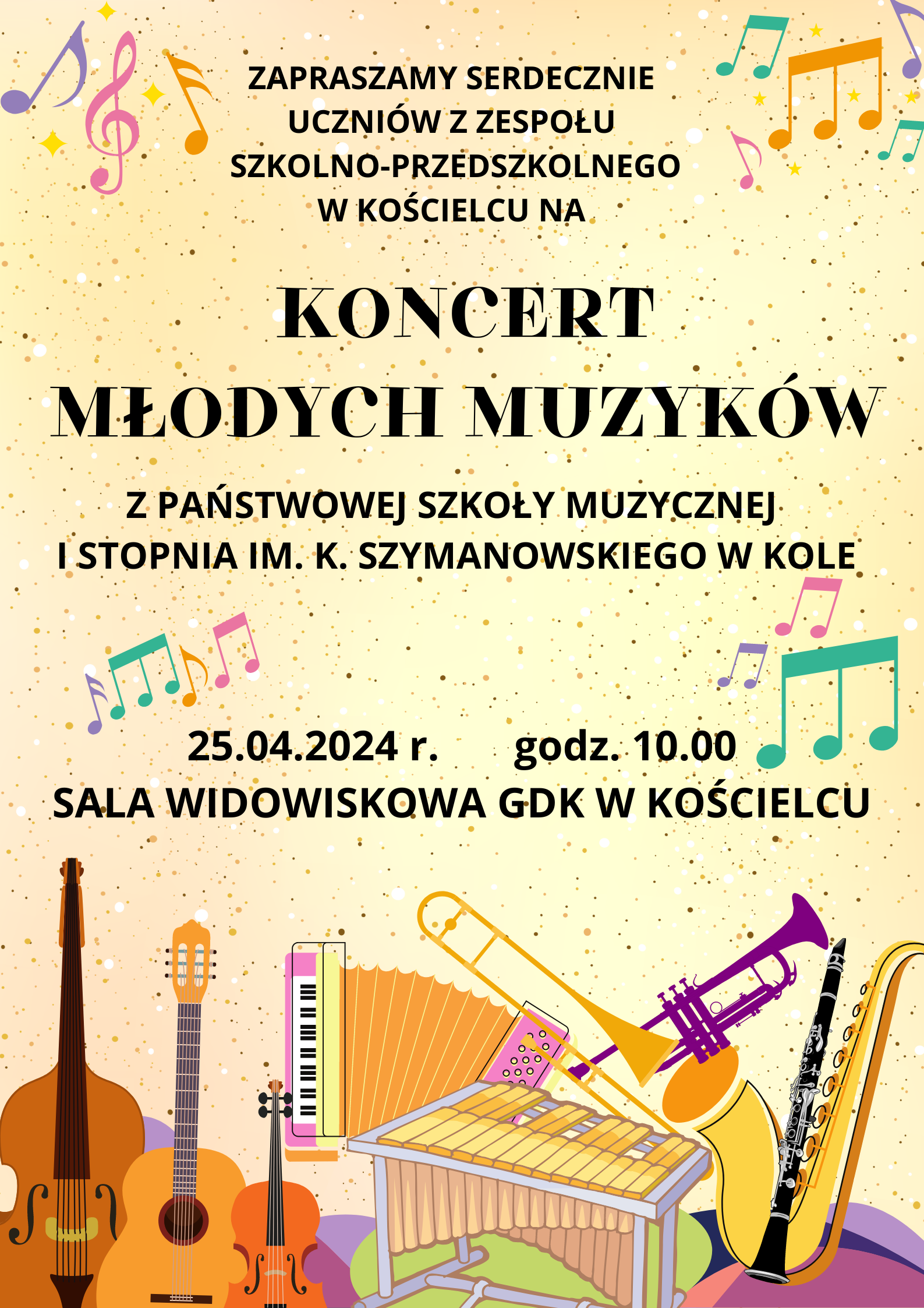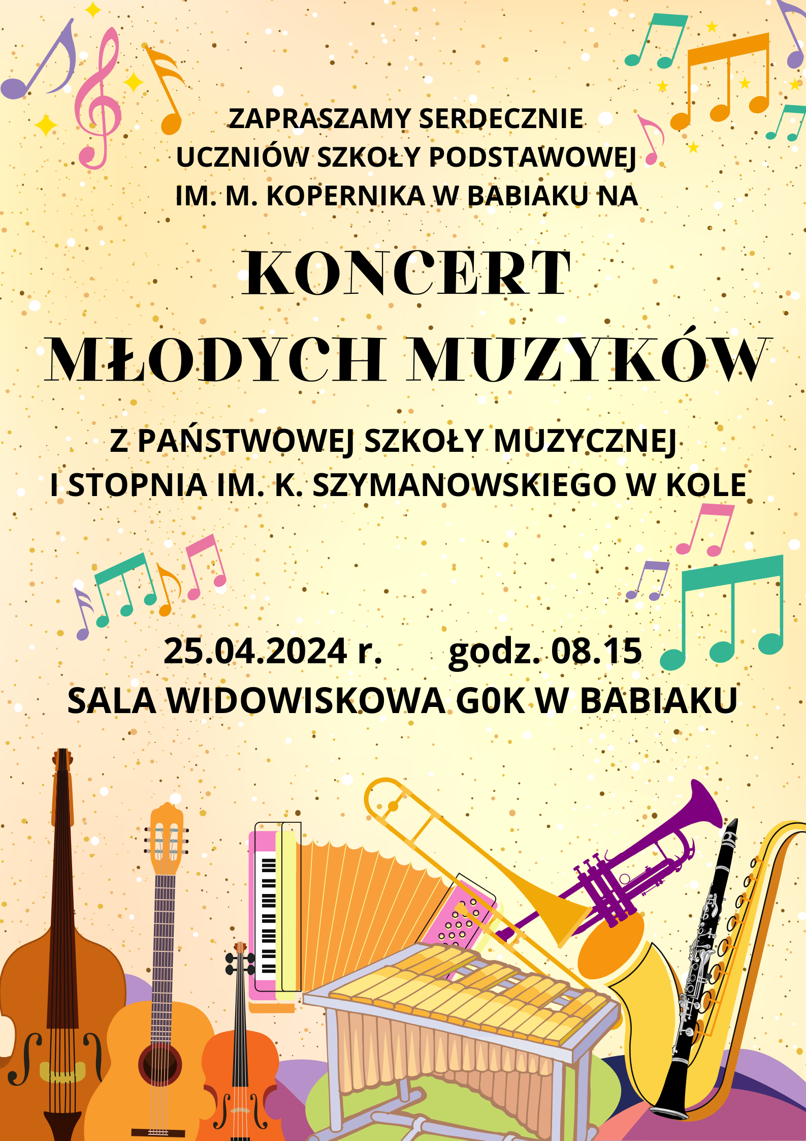 25.04.2024 r. odbyły się dwa koncerty promocyjne naszej szkoły w GOK w Babiaku oraz GDK w Kościelcu, podczas których nasi uczniowie i nauczyciele przybliżyli zaproszonym słuchaczom z pobliskich placówek oświatowych, wiedzę na temat specyfiki poszczególnych instrumentów. Mamy nadzieję, że poprzez piękną grę naszych uczniów zachęciliśmy młodych miłośników muzyki do udziału w rekrutacji w naszej szkole.
