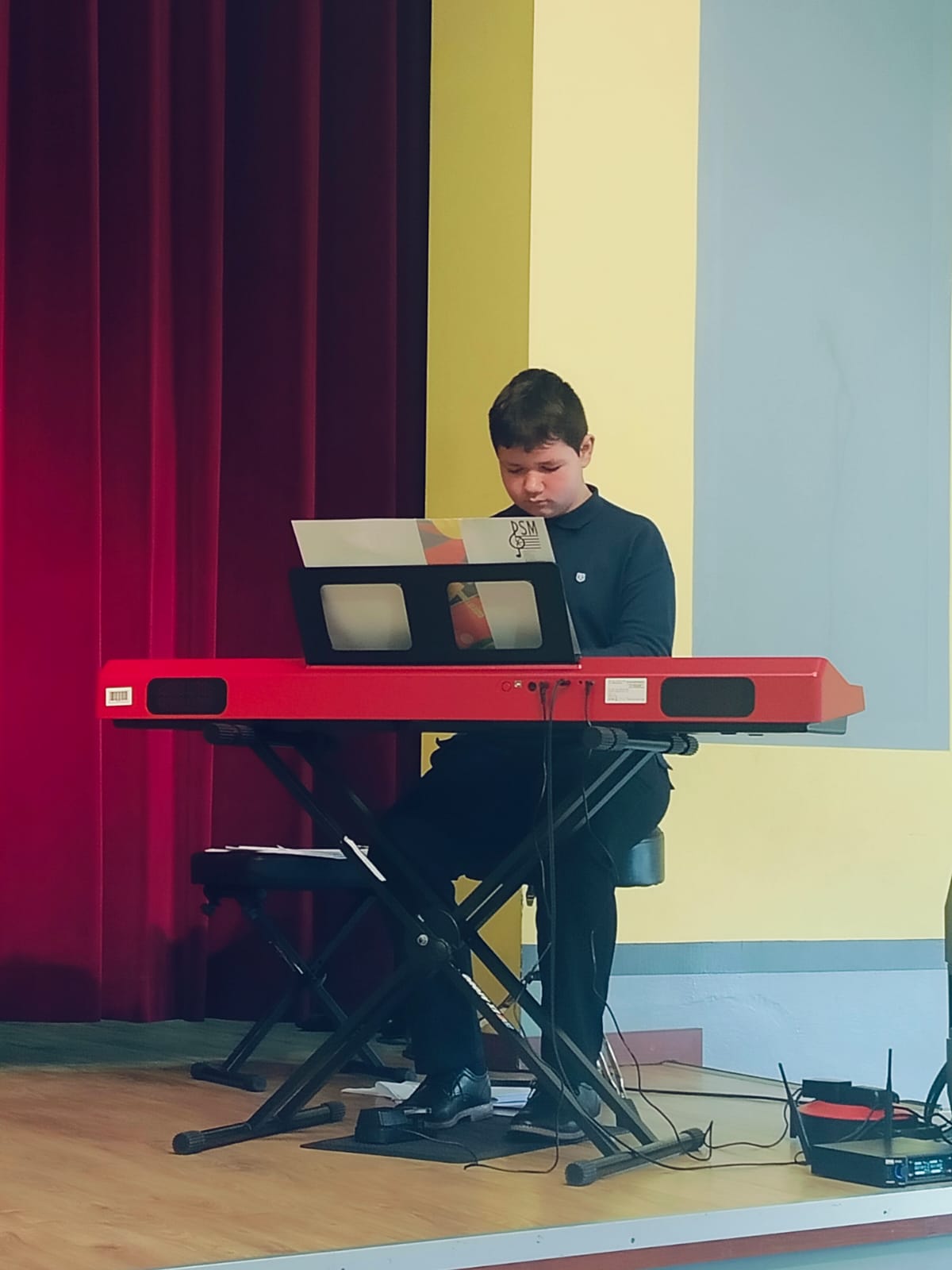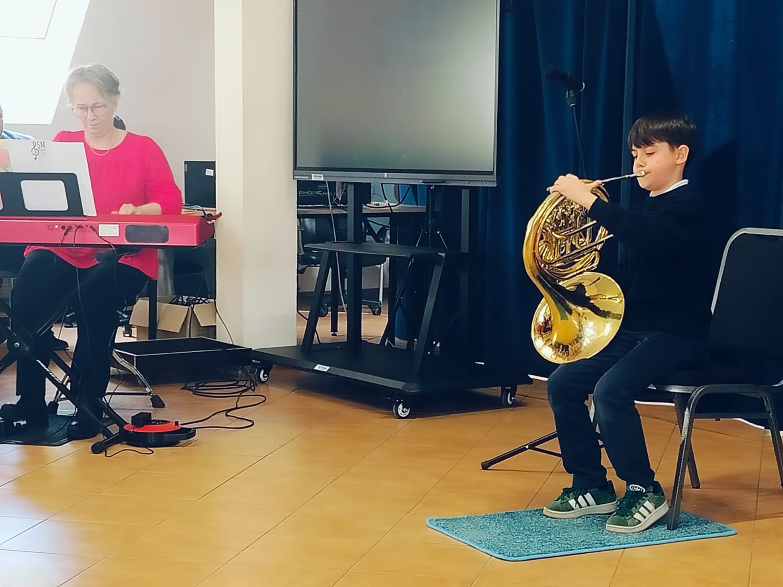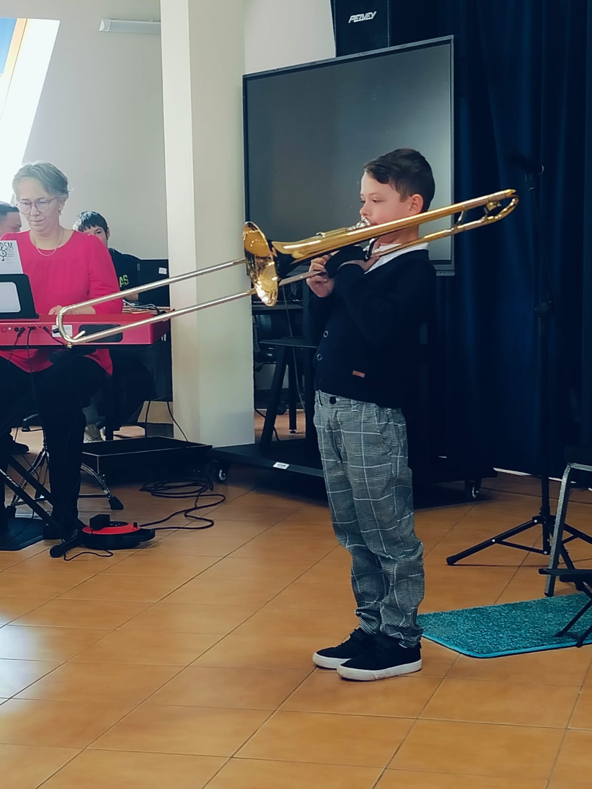 9 kwietnia 2026r. nasi młodzi muzycy zachęcali swoją piękną grą do zapisów do naszej szkoły uczniów Szkoły Podstawowej w Babiaku oraz Szkoły Podstawowej w Korzeczniku. Nasza publiczność z wielkim zaciekawieniem słuchała wykonań instrumentalnych i rozwiązywała zagadki muzyczne. Wspólnie z uczniami muzykowała p. Maja Gralińska oraz p. Grzegorz Kołodziejczak. Koncerty zorganizowała i poprowadziła p. Katarzyna Drapińska.