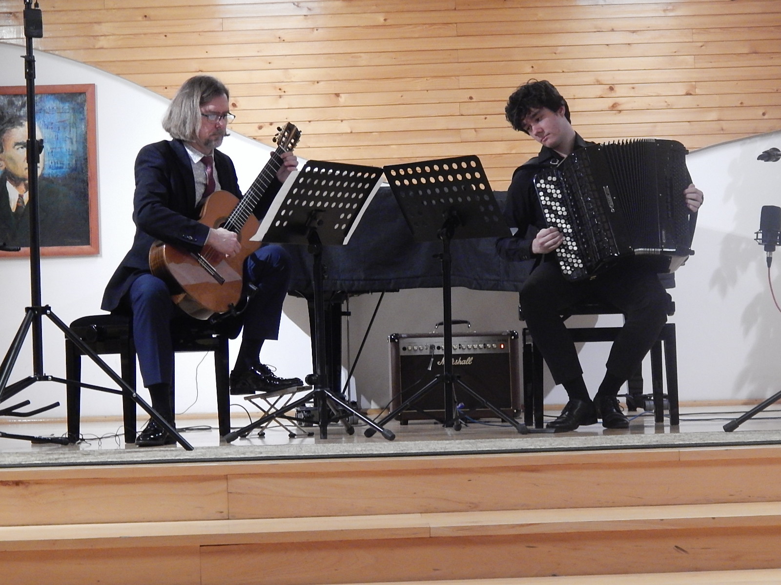 Dnia 27 marca 2024 odbył się w naszej szkole koncert „Z głębokości wołamy do Ciebie” Pasyjny Recital Kameralny. Wystąpili: Eryk Legoń -akordeon, uczeń I roku w klasie akordeonu u prof. Janne Rattya na Uniwersytecie Kunst Uni Graz w Austrii oraz Marcin Klaczyński – gitara, nauczyciel PSM I stopnia w Kole, który był inicjatorem tego wydarzenia.