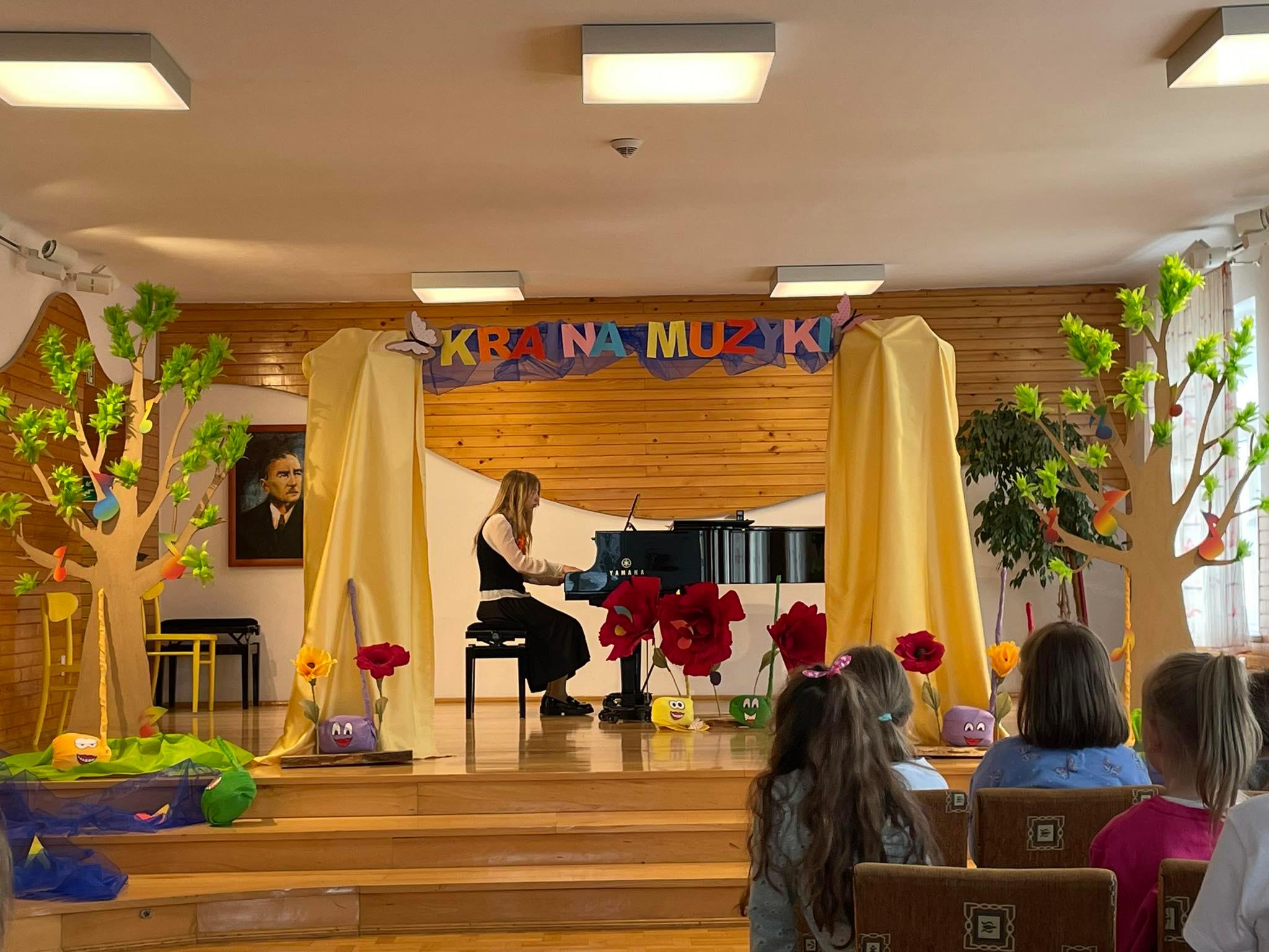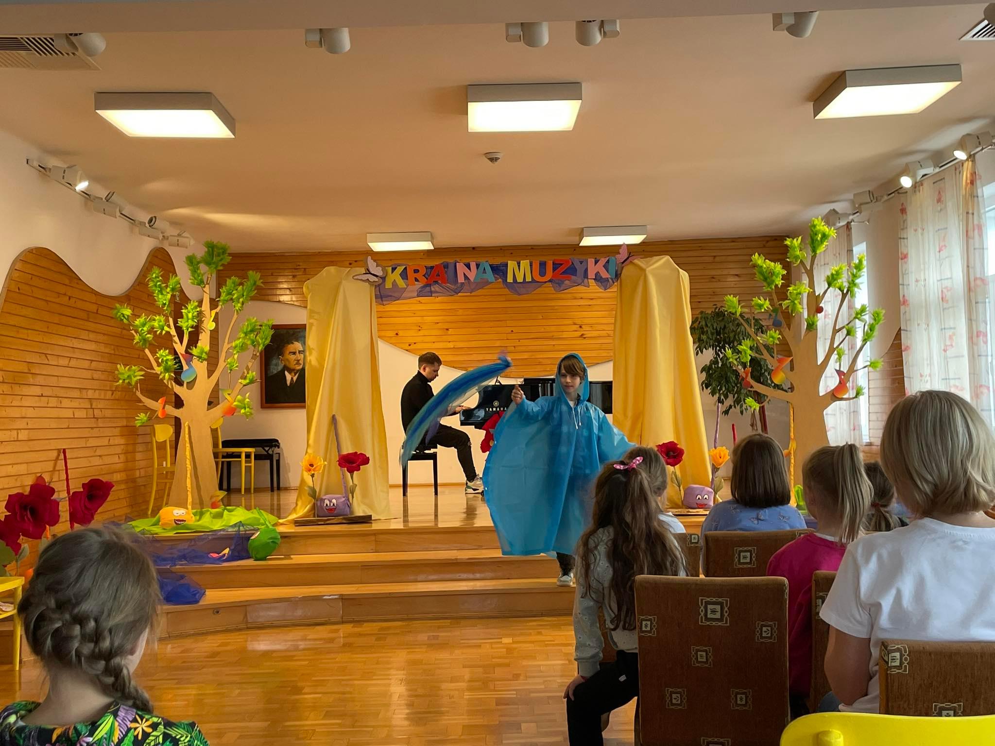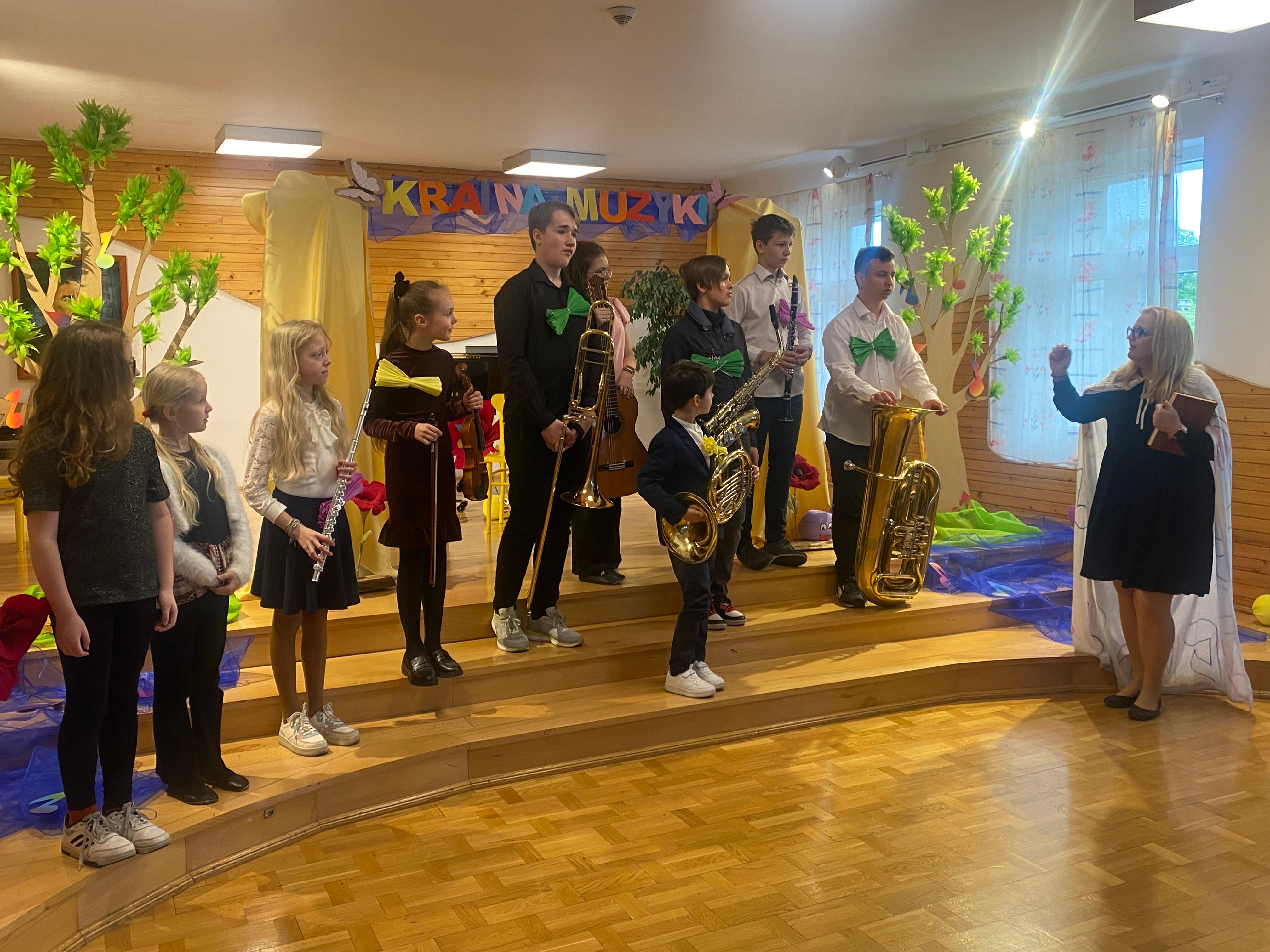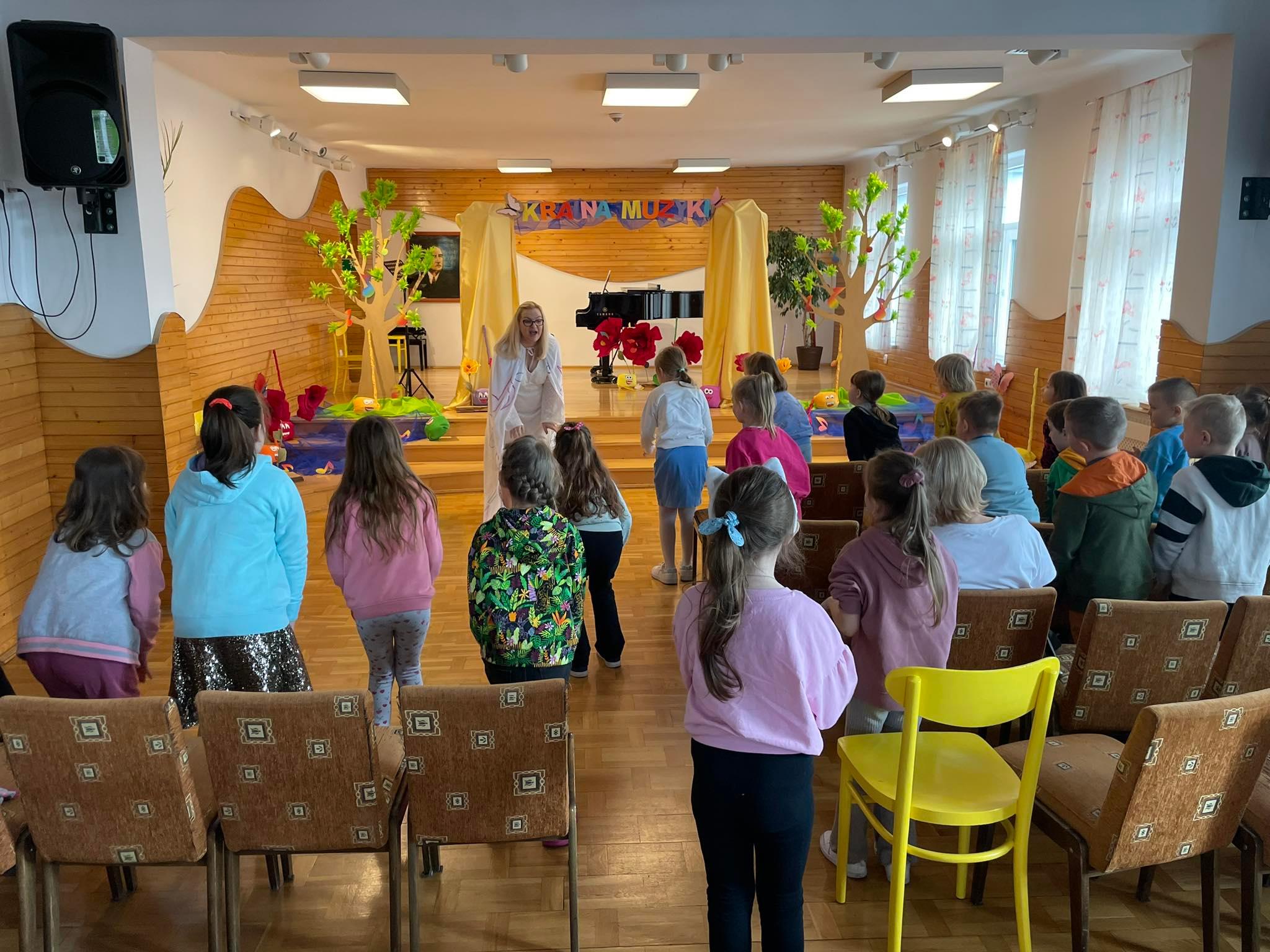 16, 17 i 18 kwietnia 2024 roku gościliśmy w naszej szkole 17 grup przedszkolnych z naszego powiatu, w sumie ponad 400 dzieci. Nasi uczniowie wraz z nauczycielami przedstawili interaktywną bajkę muzyczną "W Krainie Muzyki", podczas której przedszkolaki śpiewały, pomagały czarować, rozwiązywać muzyczne zagadki oraz poznały wszystkie nasze instrumenty. Następnie zapoznały się również z bogatym instrumentarium perkusyjnym naszej szkoły. Mamy nadzieję, że po tej wizycie rozbudziliśmy u naszych gości zamiłowanie do muzyki.