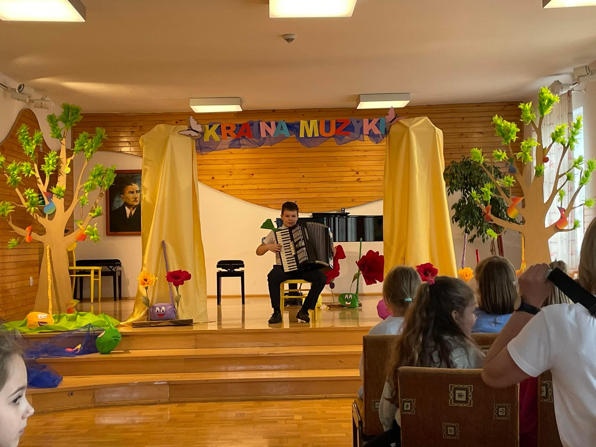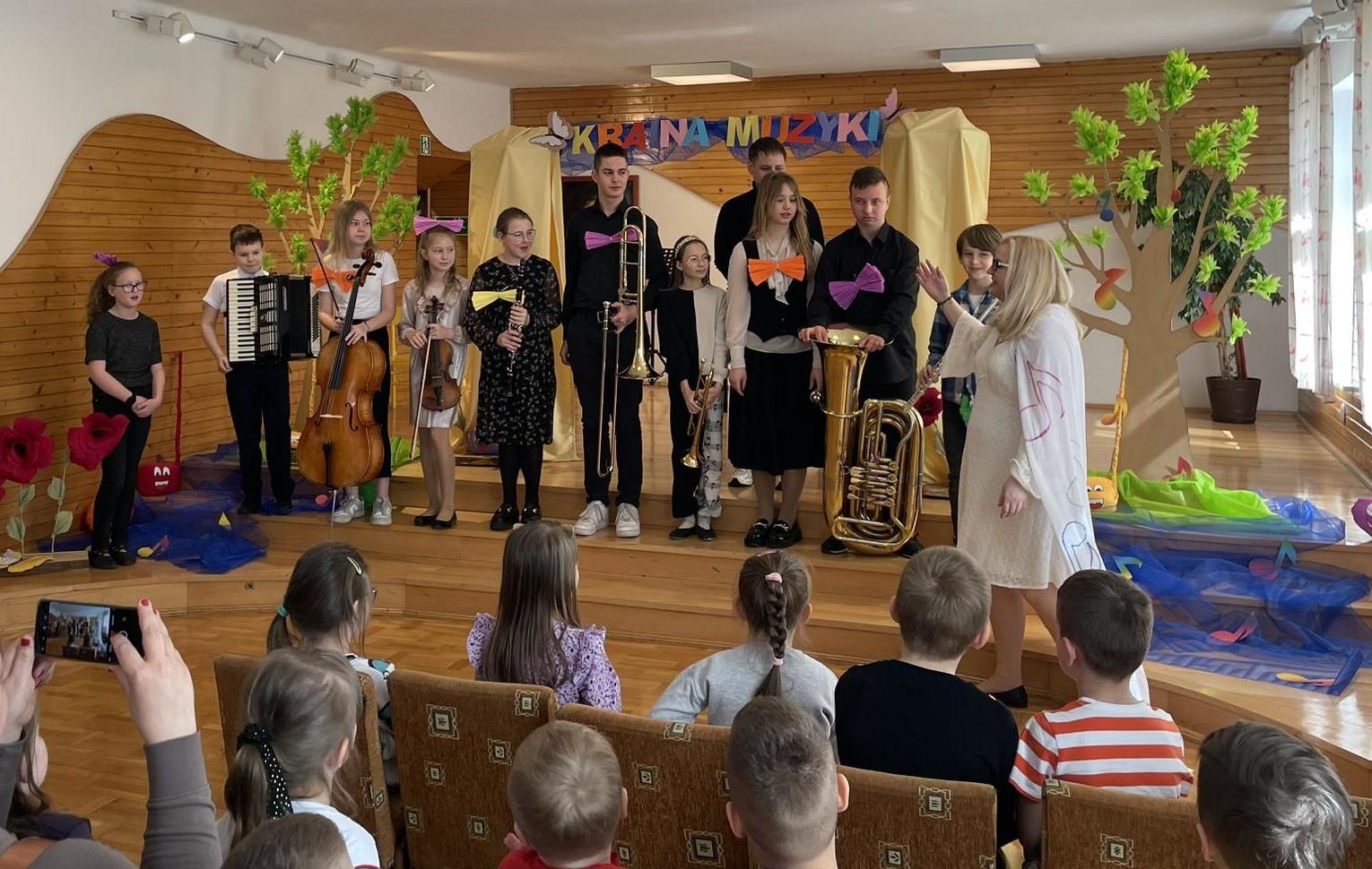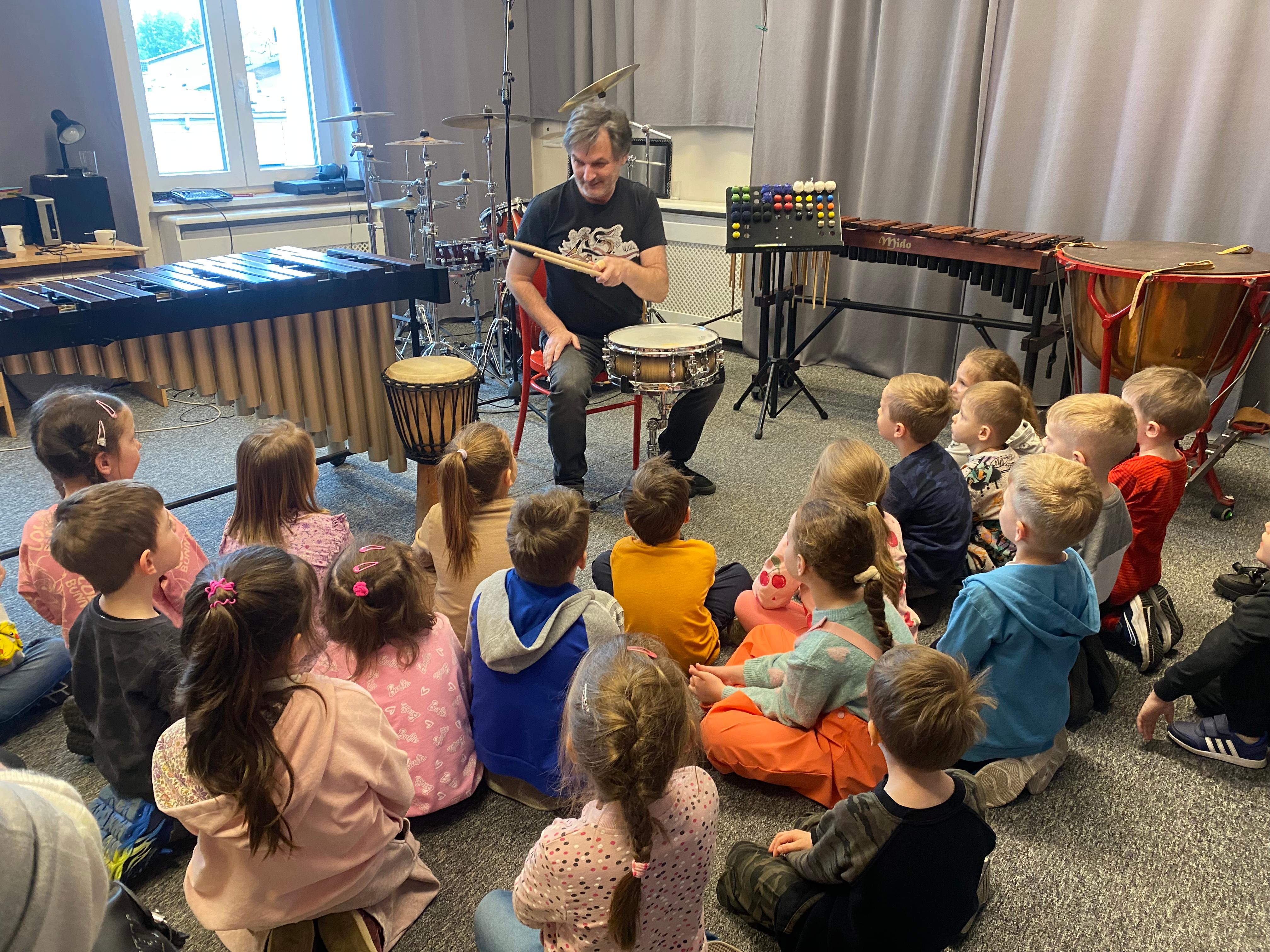 16, 17 i 18 kwietnia 2024 roku gościliśmy w naszej szkole 17 grup przedszkolnych z naszego powiatu, w sumie ponad 400 dzieci. Nasi uczniowie wraz z nauczycielami przedstawili interaktywną bajkę muzyczną "W Krainie Muzyki", podczas której przedszkolaki śpiewały, pomagały czarować, rozwiązywać muzyczne zagadki oraz poznały wszystkie nasze instrumenty. Następnie zapoznały się również z bogatym instrumentarium perkusyjnym naszej szkoły. Mamy nadzieję, że po tej wizycie rozbudziliśmy u naszych gości zamiłowanie do muzyki.