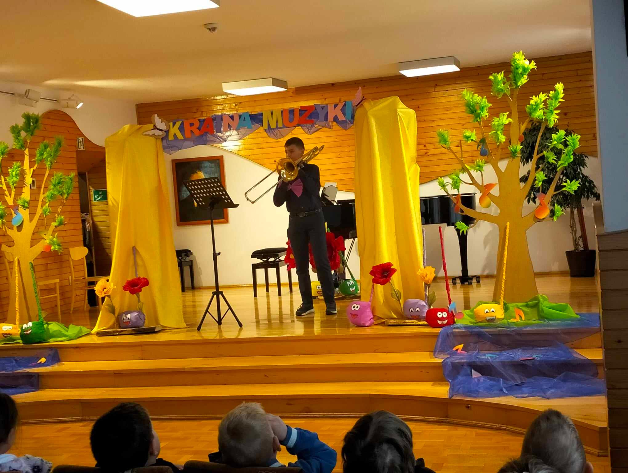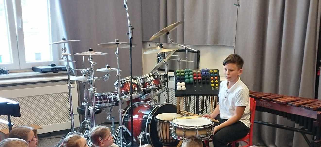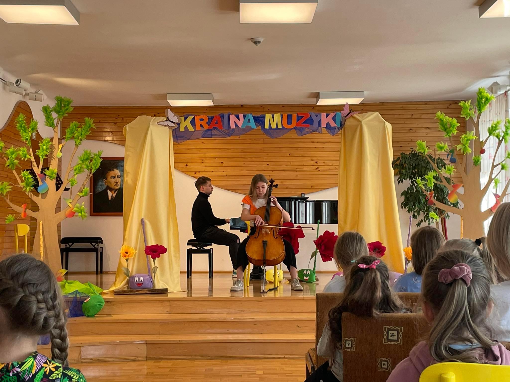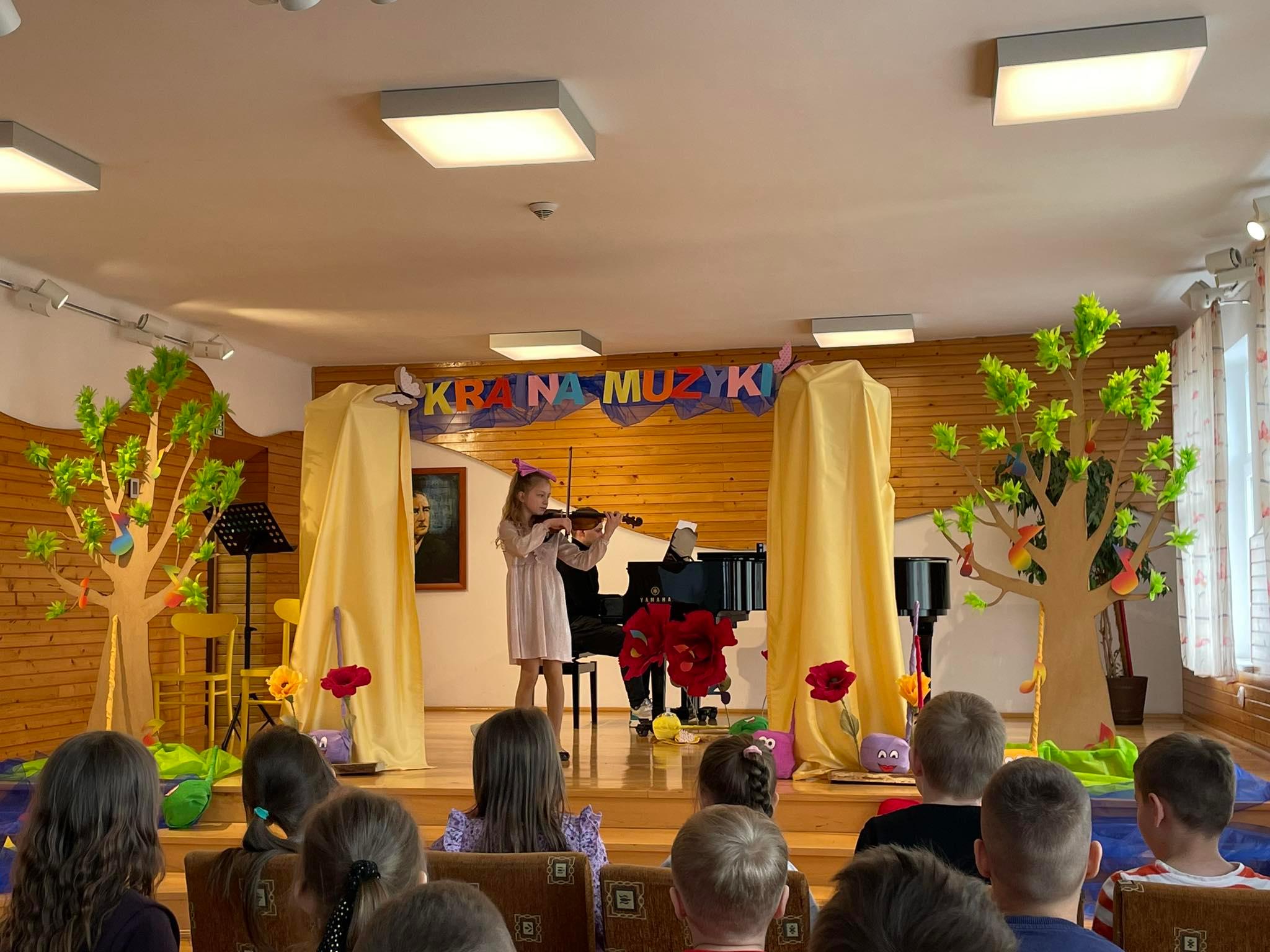 16, 17 i 18 kwietnia 2024 roku gościliśmy w naszej szkole 17 grup przedszkolnych z naszego powiatu, w sumie ponad 400 dzieci. Nasi uczniowie wraz z nauczycielami przedstawili interaktywną bajkę muzyczną "W Krainie Muzyki", podczas której przedszkolaki śpiewały, pomagały czarować, rozwiązywać muzyczne zagadki oraz poznały wszystkie nasze instrumenty. Następnie zapoznały się również z bogatym instrumentarium perkusyjnym naszej szkoły. Mamy nadzieję, że po tej wizycie rozbudziliśmy u naszych gości zamiłowanie do muzyki.