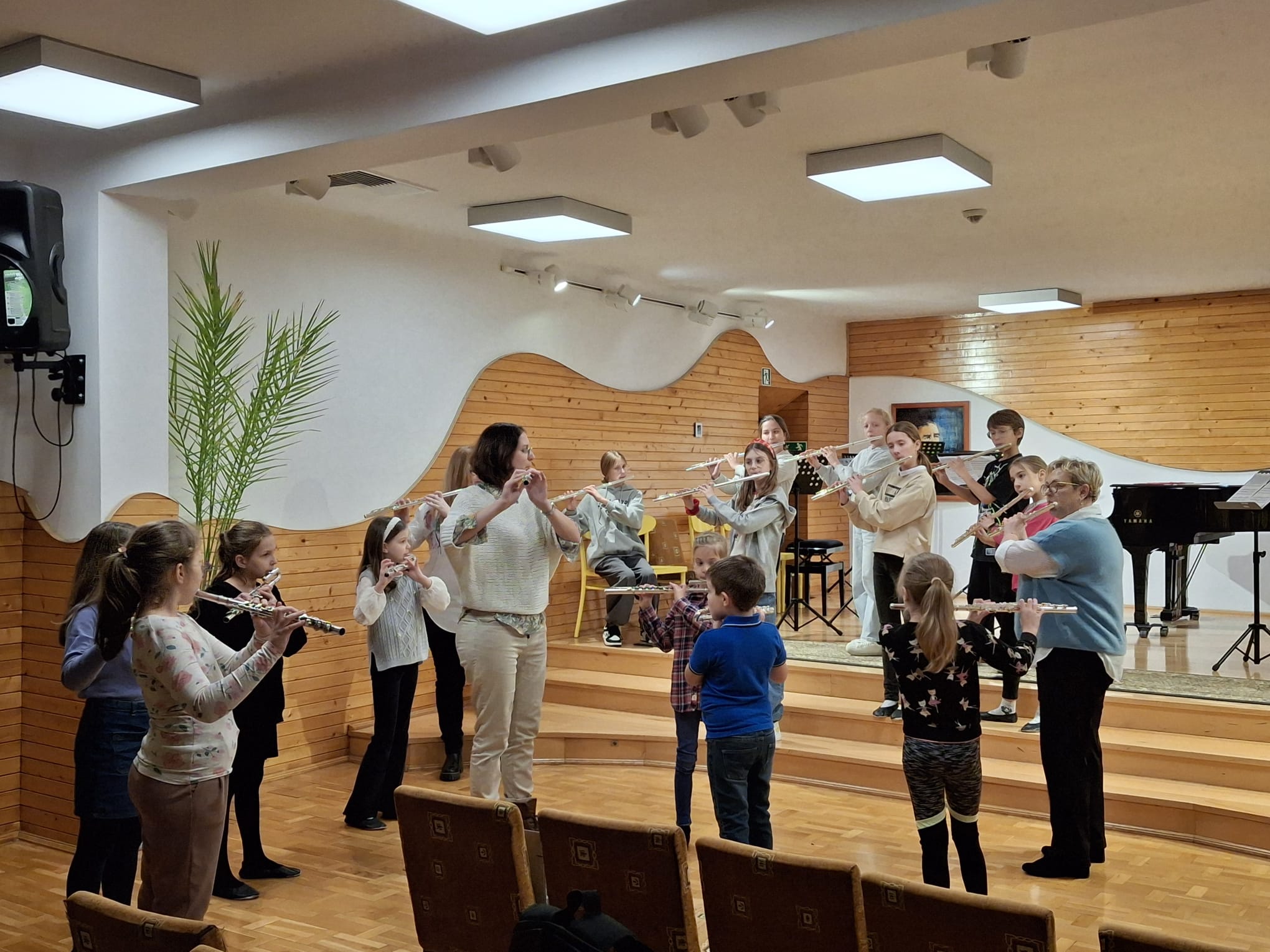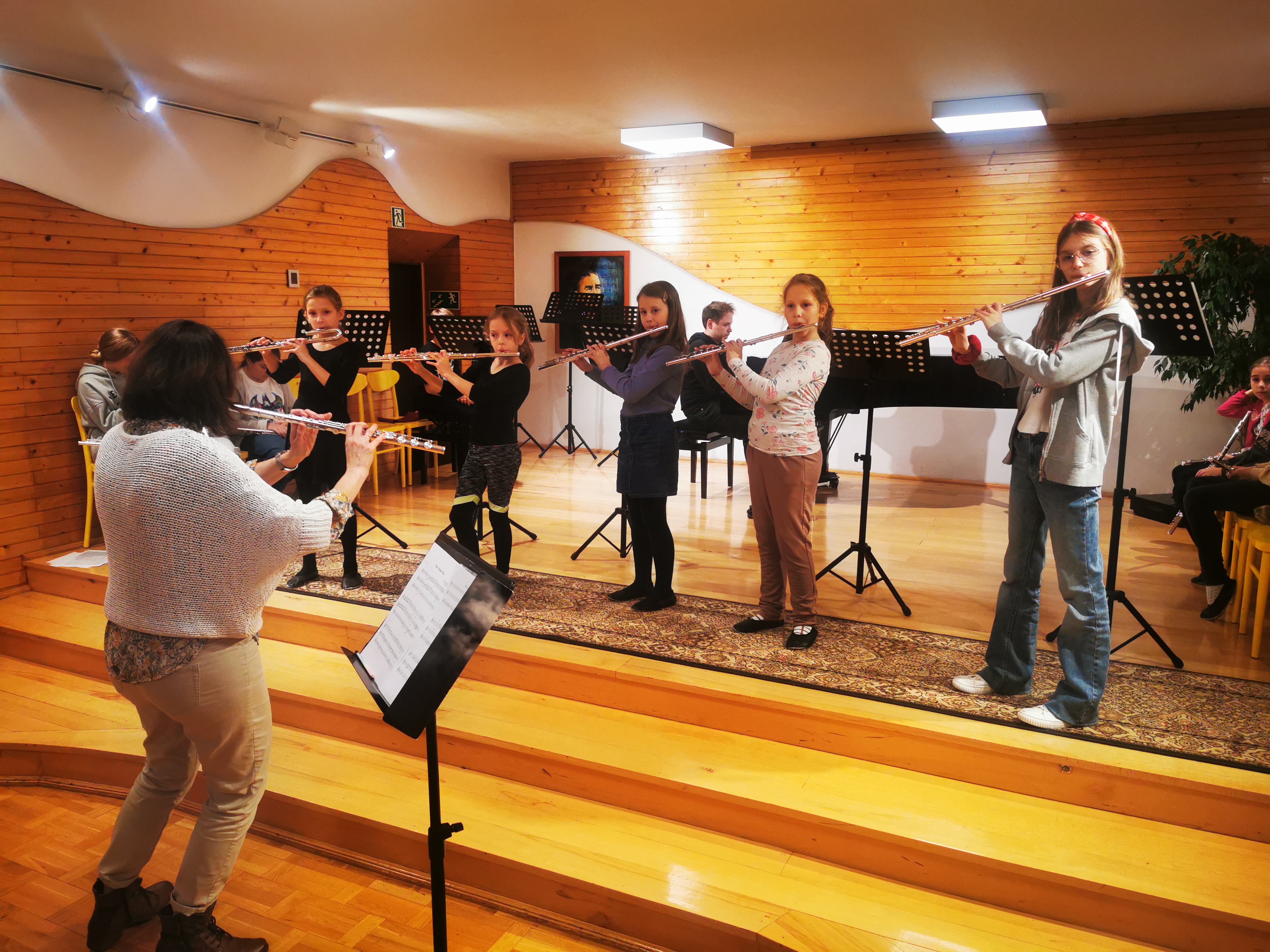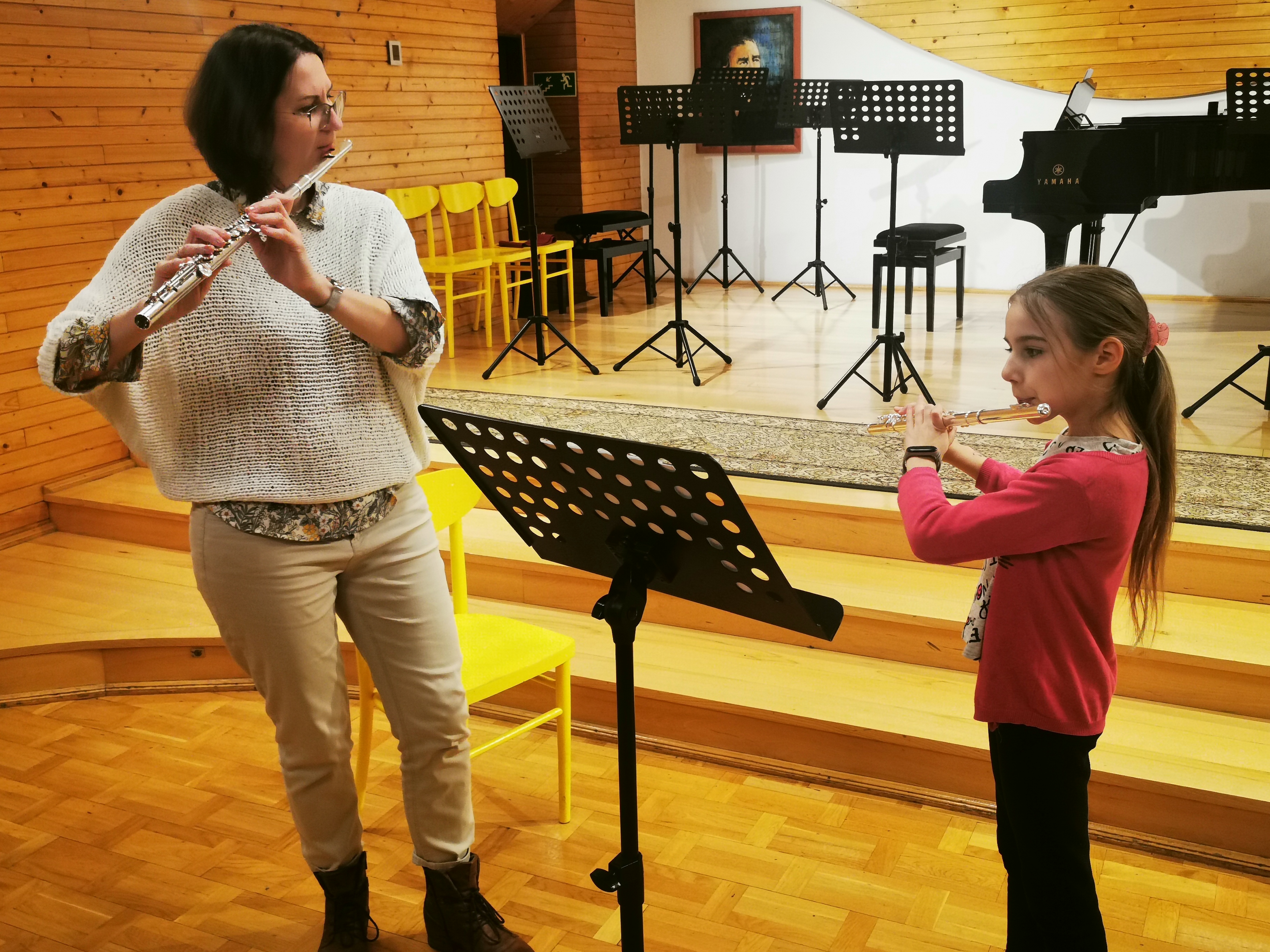 19 listopada nasi młodzi fleciści wraz ze swoimi nauczycielkami mieli przyjemność uczestniczyć w wyjątkowych warsztatach poprowadzonych przez Panią Zuzannę Borowiecką. Warsztaty zrealizowane były z wykorzystaniem elementów metody Suzuki. Obejmowały lekcje indywidualne, fletową rozgrzewkę oraz uczestnictwo w wyjątkowej orkiestrze fletowej, która zaprezentowała efekty swojej pracy z towarzyszeniem fortepianu podczas koncertu dla społeczności szkolnej. Pani Zuzanna Borowiecka poprowadziła również wykład dla uczniów, rodziców i nauczycieli naszej szkoły na temat "Suzuki-metoda języka ojczystego", dzieląc się z nami swoją wiedzą na temat filozofii oraz form zastosowania tej metody w szkole muzycznej.