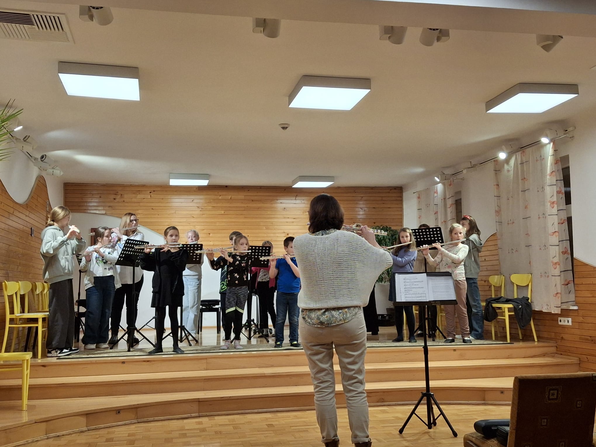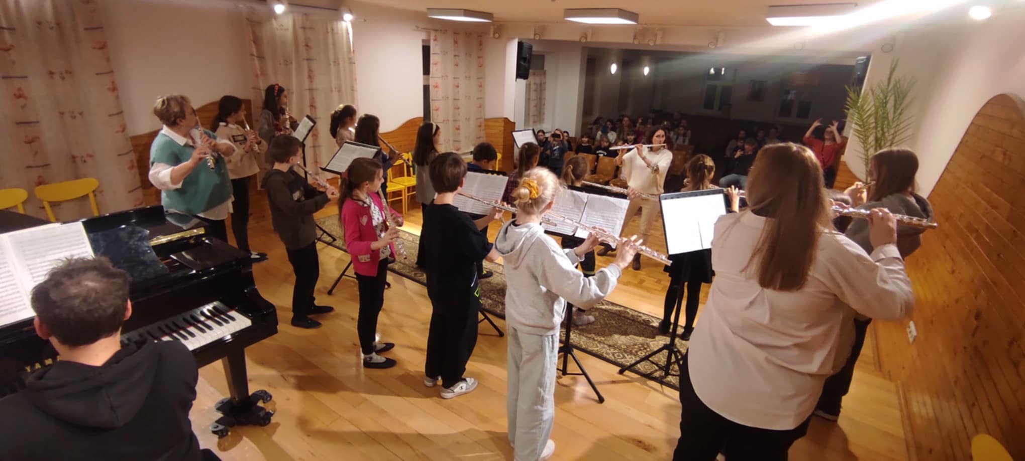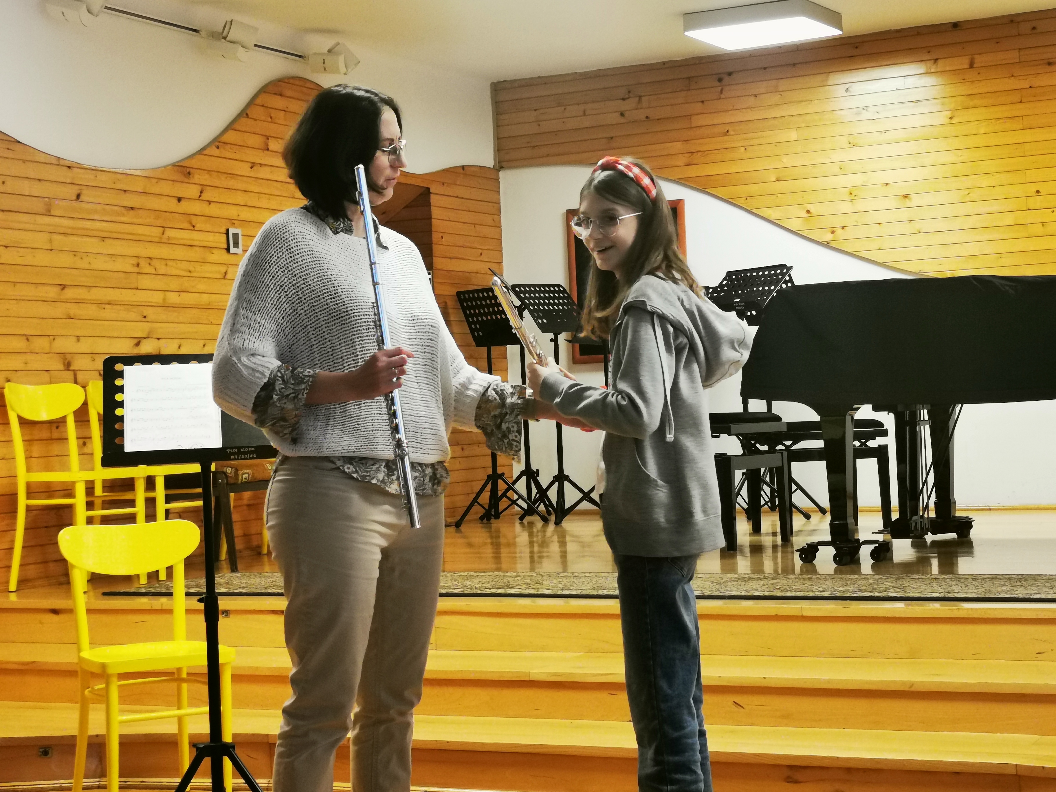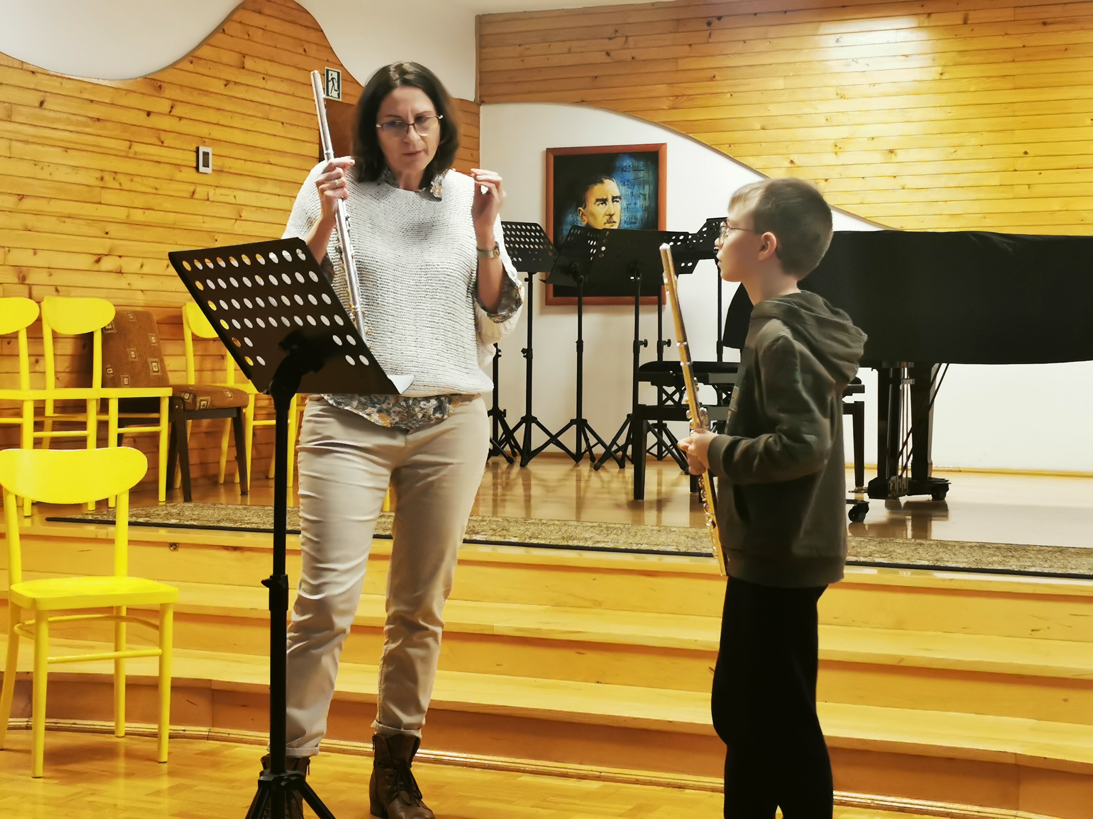 19 listopada nasi młodzi fleciści wraz ze swoimi nauczycielkami mieli przyjemność uczestniczyć w wyjątkowych warsztatach poprowadzonych przez Panią Zuzannę Borowiecką. Warsztaty zrealizowane były z wykorzystaniem elementów metody Suzuki. Obejmowały lekcje indywidualne, fletową rozgrzewkę oraz uczestnictwo w wyjątkowej orkiestrze fletowej, która zaprezentowała efekty swojej pracy z towarzyszeniem fortepianu podczas koncertu dla społeczności szkolnej. Pani Zuzanna Borowiecka poprowadziła również wykład dla uczniów, rodziców i nauczycieli naszej szkoły na temat "Suzuki-metoda języka ojczystego", dzieląc się z nami swoją wiedzą na temat filozofii oraz form zastosowania tej metody w szkole muzycznej.
