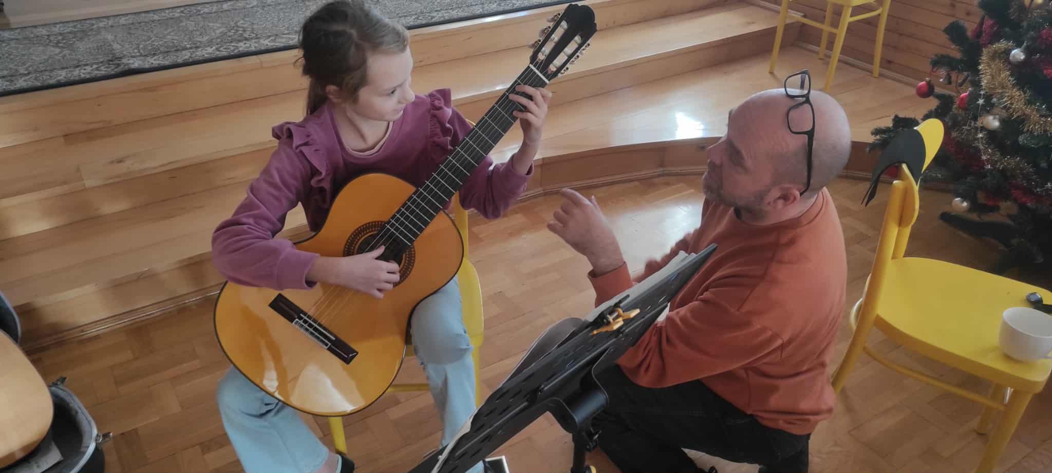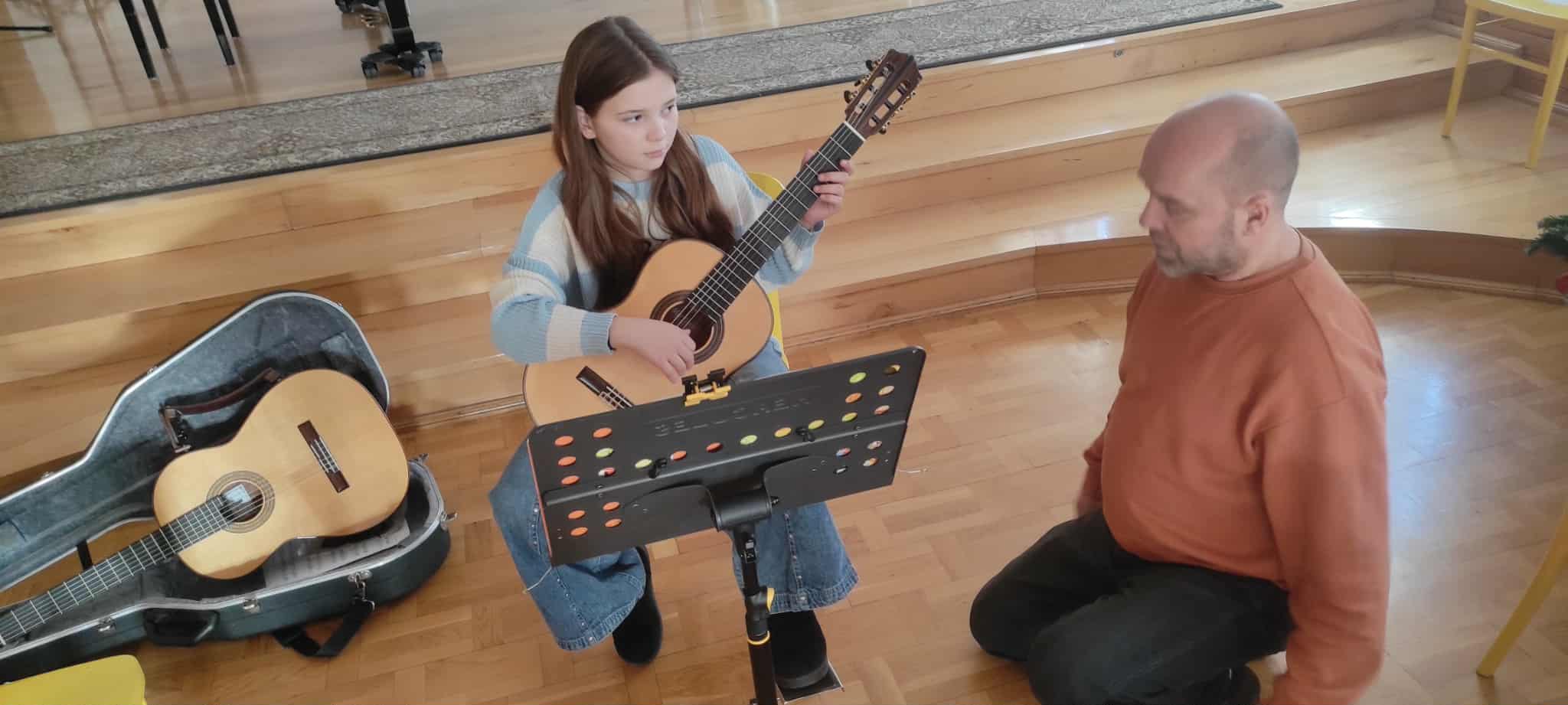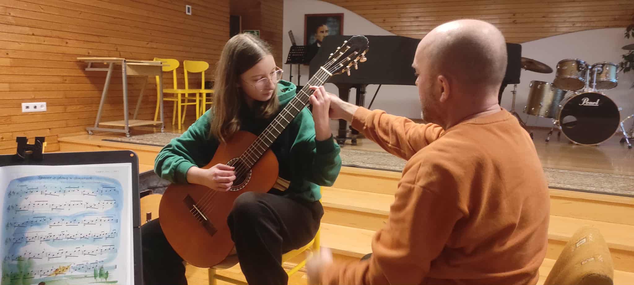11 grudnia uczniowie klasy gitary p. Marcina Klaczyńskiego rozwijali swoje umiejętności w trakcie warsztatów, które poprowadził dr Robert Horna, wykładowca Akademii Muzycznej w Gdańsku. Następnie wysłuchaliśmy wykładu poprowadzonego przez naszego gościa na temat "Dlaczego gramy gamy i co z tego mamy?", który był niezwykłym wprowadzeniem do kształtowania umiejętności improwizacji. Uczniowie, ich rodzice oraz nauczyciele wysłuchali go z wielkim zaciekawieniem.
