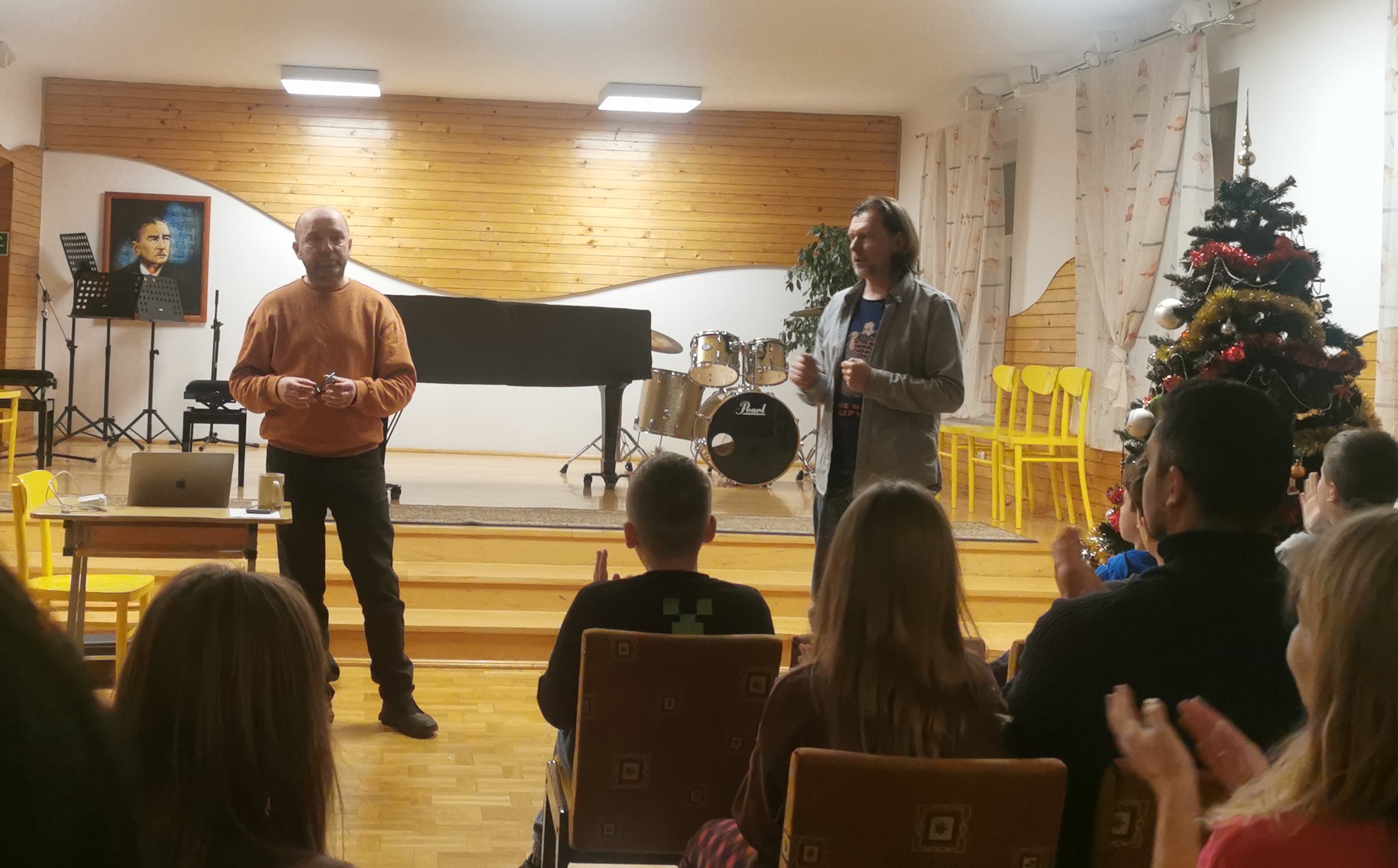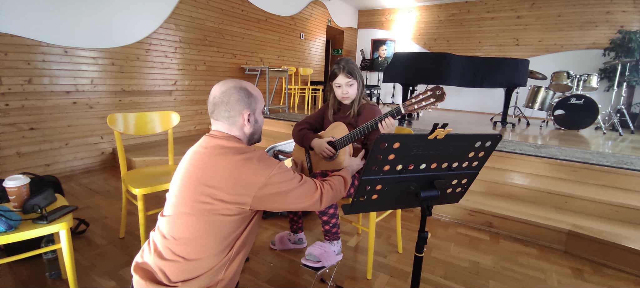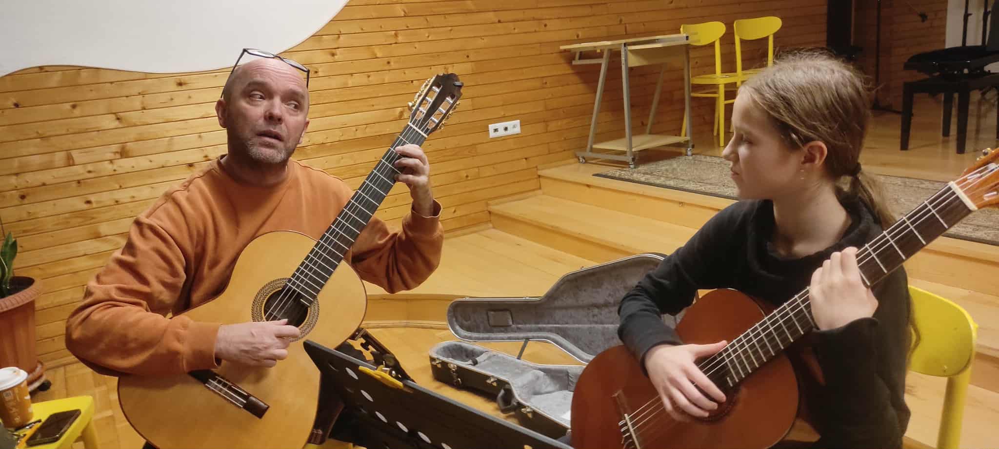 11 grudnia uczniowie klasy gitary p. Marcina Klaczyńskiego rozwijali swoje umiejętności w trakcie warsztatów, które poprowadził dr Robert Horna, wykładowca Akademii Muzycznej w Gdańsku. Następnie wysłuchaliśmy wykładu poprowadzonego przez naszego gościa na temat "Dlaczego gramy gamy i co z tego mamy?", który był niezwykłym wprowadzeniem do kształtowania umiejętności improwizacji. Uczniowie, ich rodzice oraz nauczyciele wysłuchali go z wielkim zaciekawieniem.