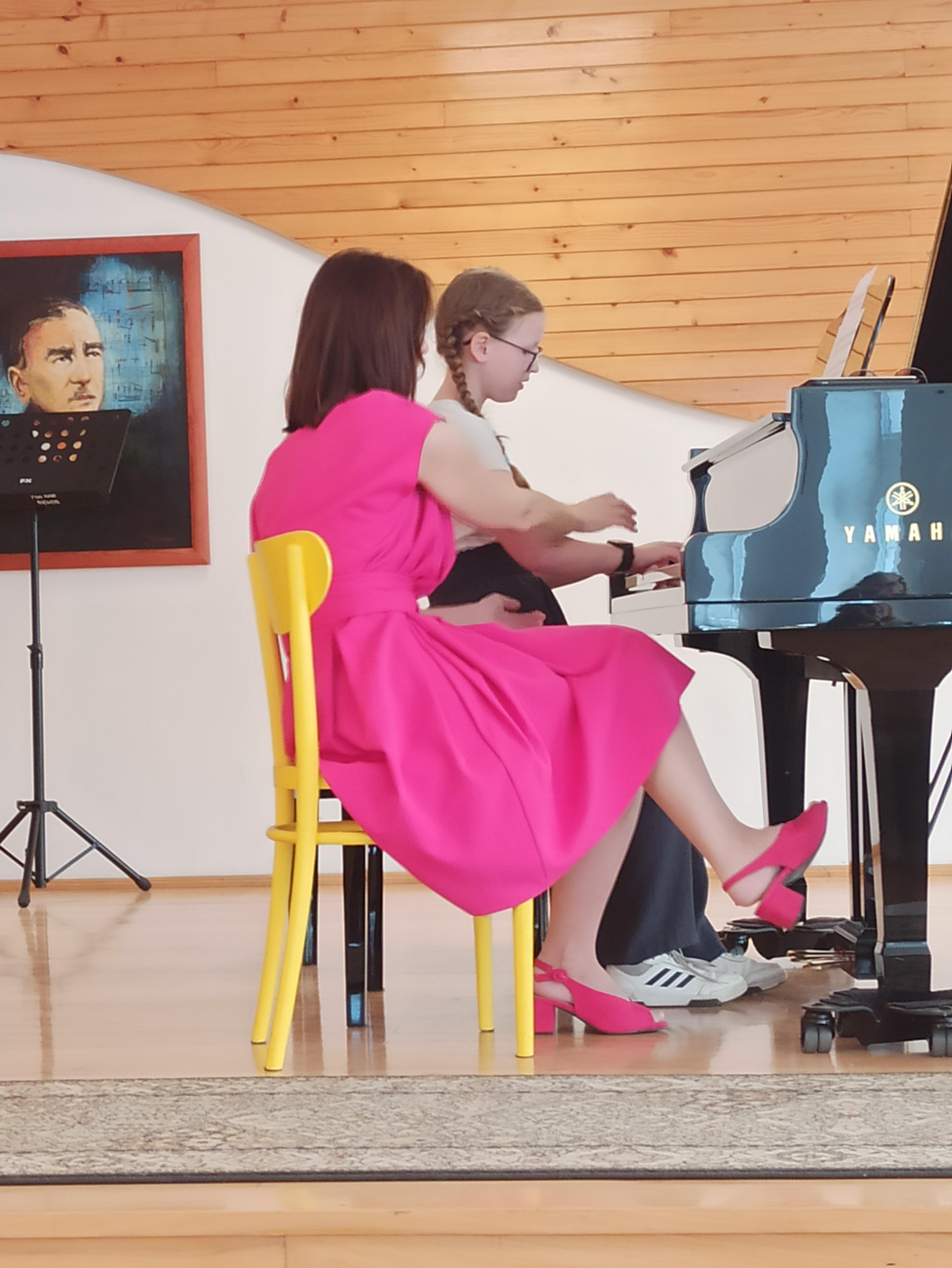 W dniu 17 maja 2024r. odbyły się w naszej szkole Warsztaty pianistyczne poprowadzone przez p. dr Agatę Górską-Kołodziejską, pianistkę i pedagog z Akademii Muzycznej w Łodzi. Z zaciekawieniem obserwowaliśmy niezwykle żywiołowe i pełne fantastycznych wskazówek lekcje, które Pani doktor prowadziła z naszymi uczniami. Po części praktycznej wysłuchaliśmy dwóch ciekawych wykładów: dla nauczycieli :„Chopinowska technika wykonawcza” oraz dla uczniów: ”Śladami Pana Chopina”. Czas spędzony na warsztatach był bardzo owocny, mobilizujący do dalszej pracy i poznawania sztuki pianistycznej.