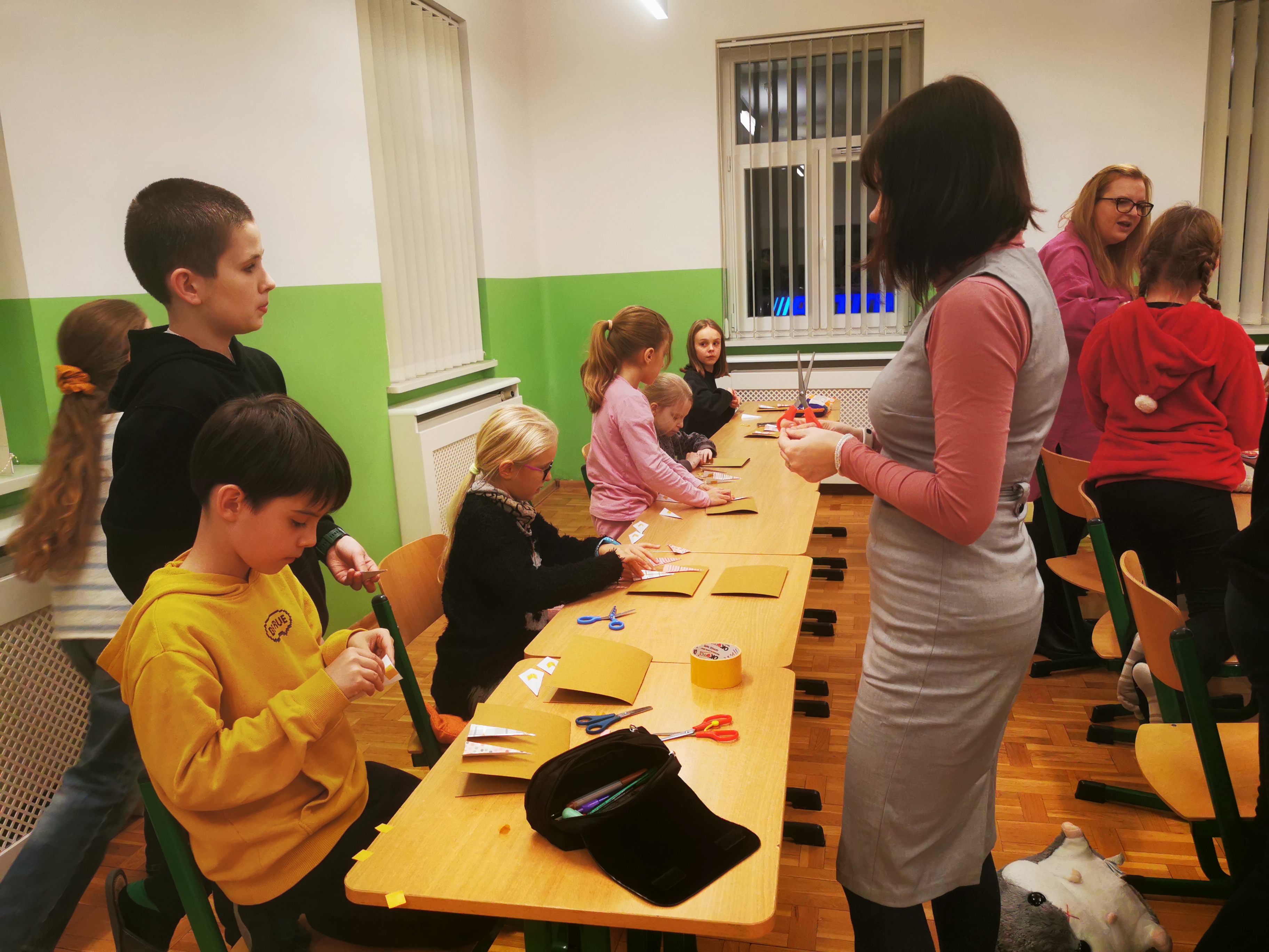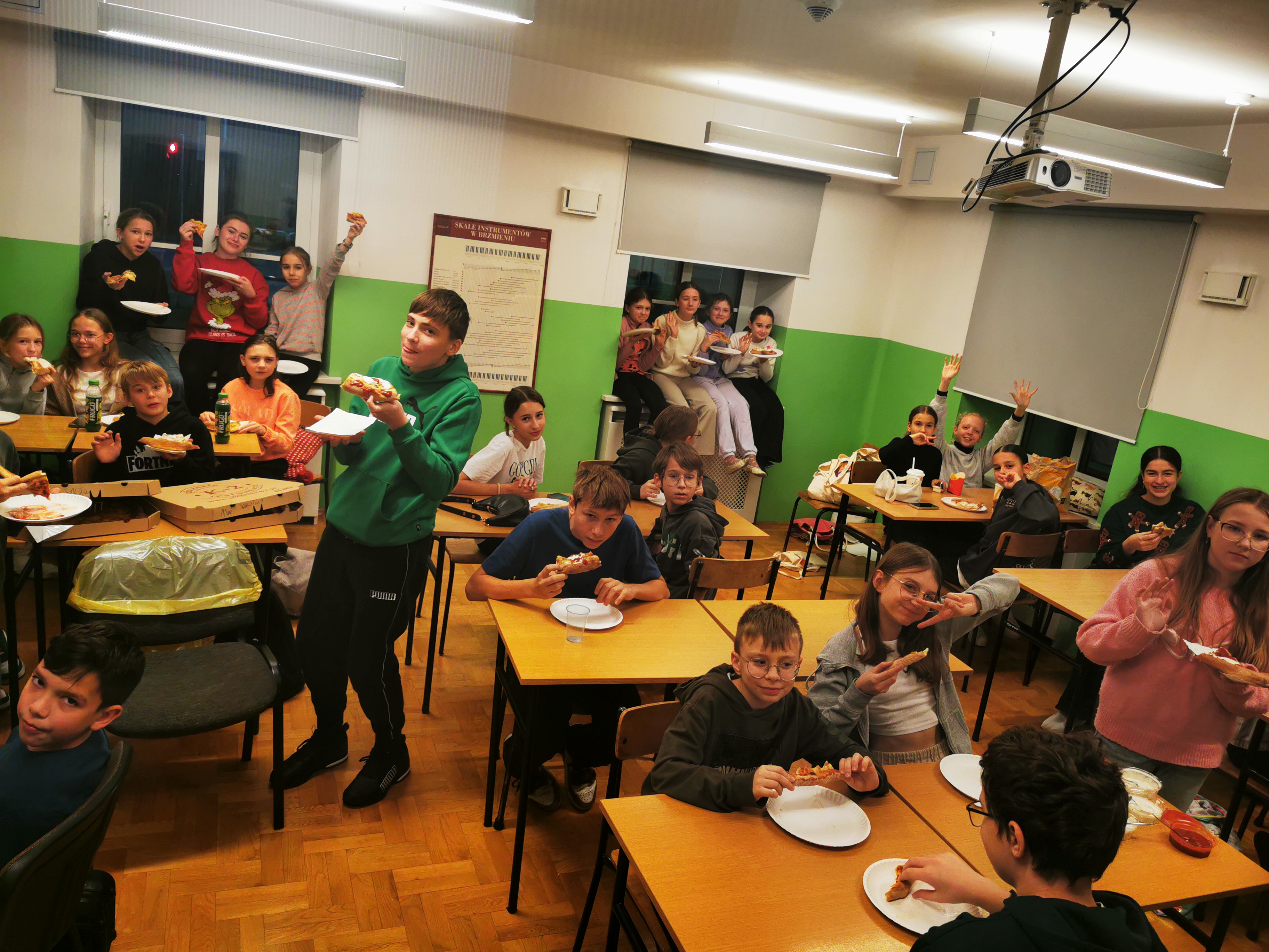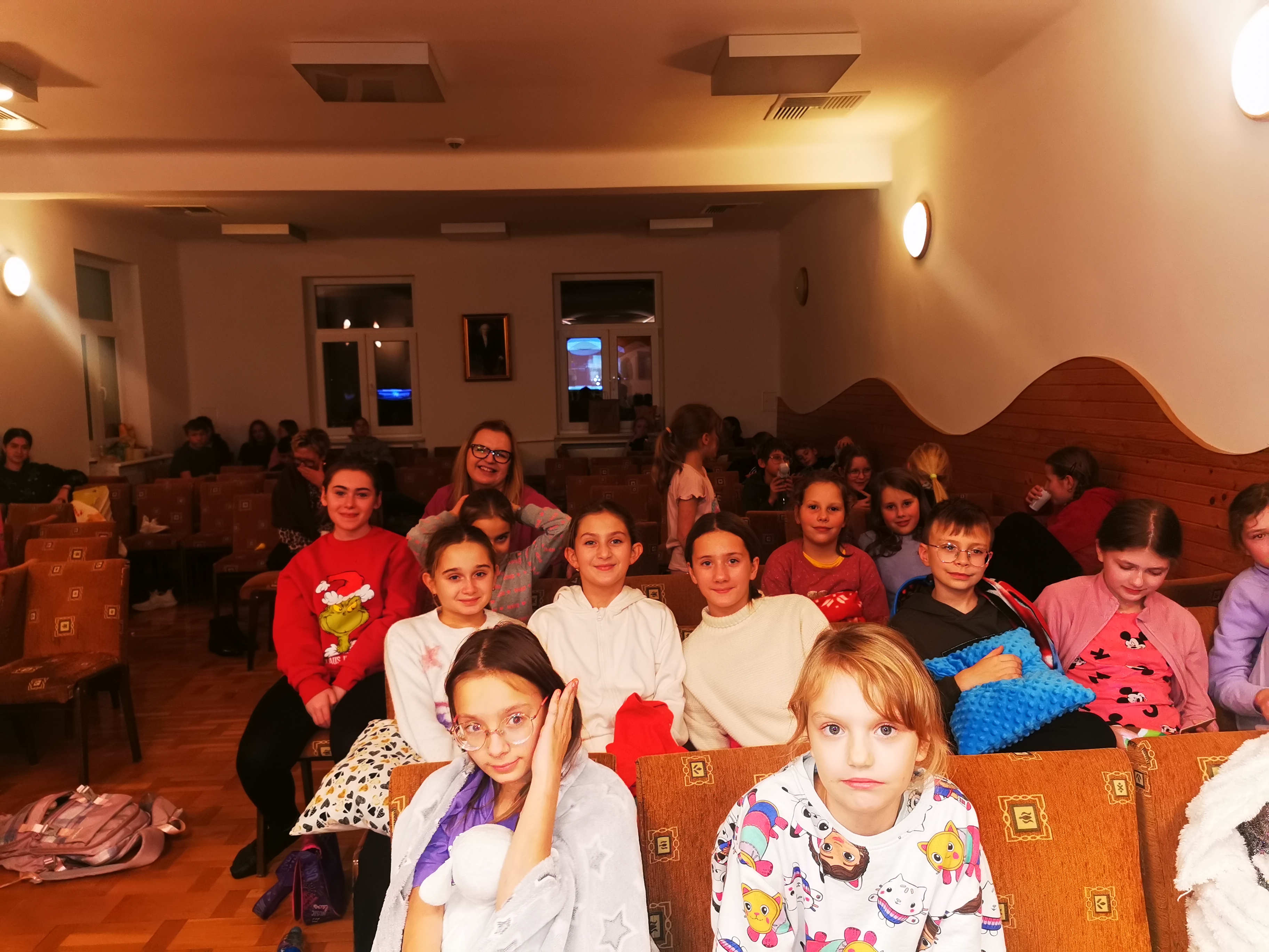 22 listopada w naszej szkole już po raz drugi odbył się Wieczór filmowy. Wydarzenie to zainicjowane zostało przez Samorząd Uczniowski, a koordynowane przez opiekuna SU p. Katarzynę Drapińską. Na początku uczniowie pod opieką naszych nauczycieli wykonali kartki i ozdoby świąteczne. Po pysznym posiłku wszyscy spotkaliśmy się na auli, gdzie obejrzeliśmy w atmosferze kinowej filmy pełne zróżnicowanych emocji, a także wprowadzające nas w atmosferę zbliżających się Świąt. Wieczór filmowy był dla wszystkich uczestników doskonałym czasem na integrację naszej społeczności szkolnej.