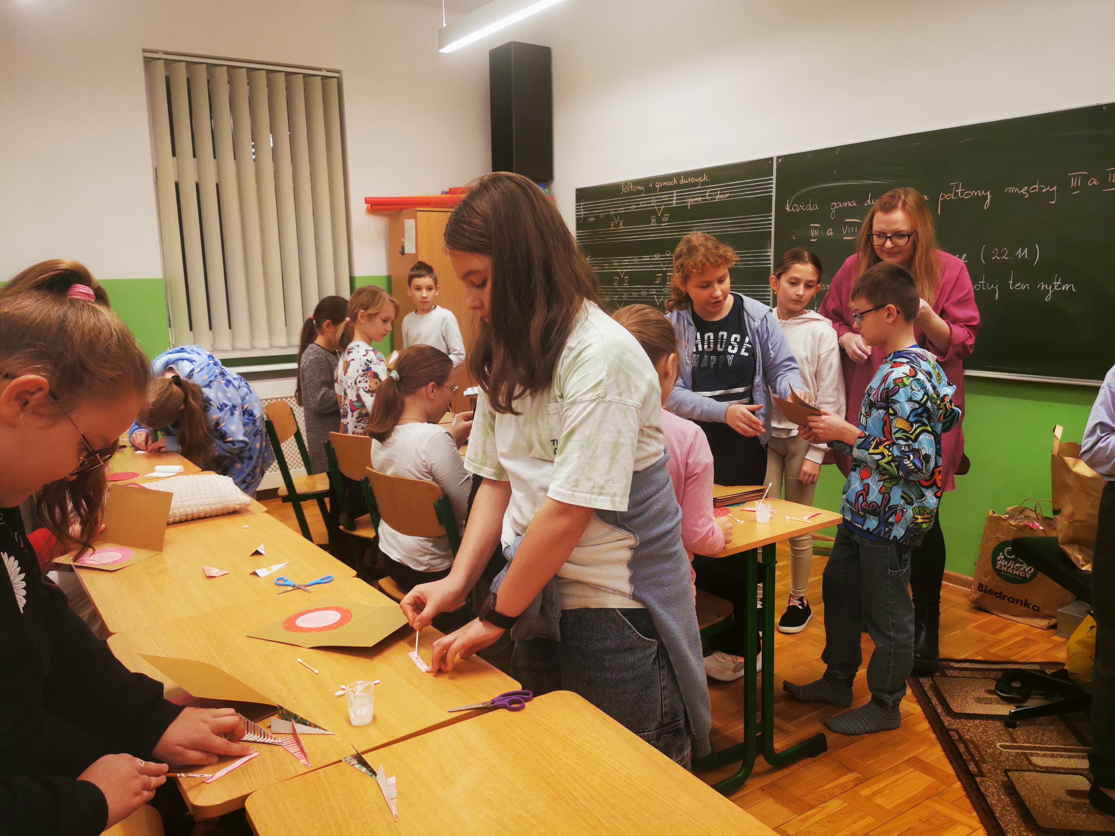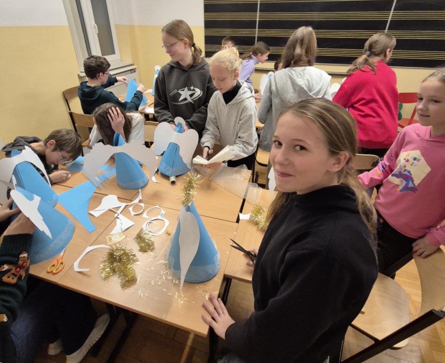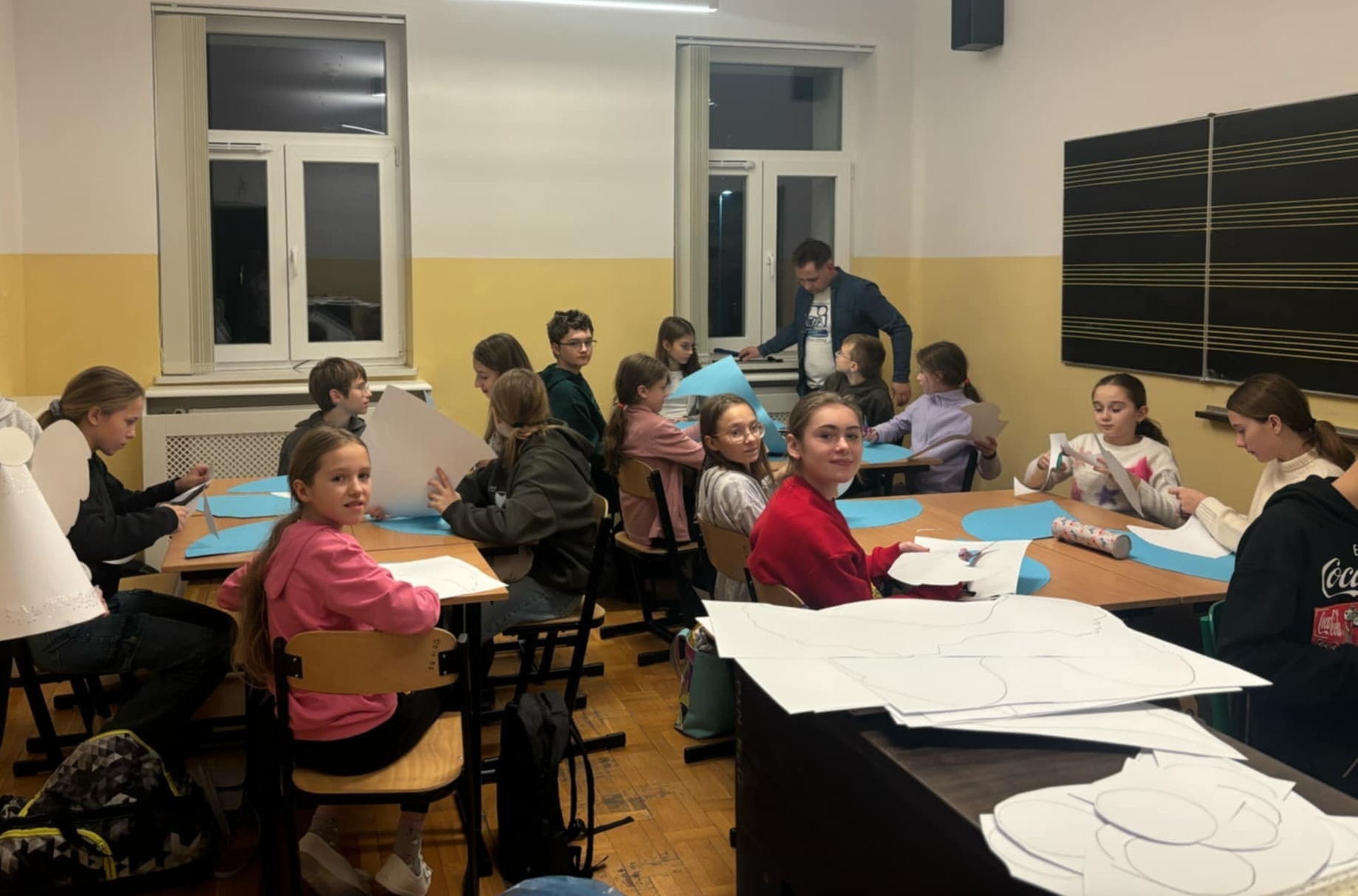 22 listopada w naszej szkole już po raz drugi odbył się Wieczór filmowy. Wydarzenie to zainicjowane zostało przez Samorząd Uczniowski, a koordynowane przez opiekuna SU p. Katarzynę Drapińską. Na początku uczniowie pod opieką naszych nauczycieli wykonali kartki i ozdoby świąteczne. Po pysznym posiłku wszyscy spotkaliśmy się na auli, gdzie obejrzeliśmy w atmosferze kinowej filmy pełne zróżnicowanych emocji, a także wprowadzające nas w atmosferę zbliżających się Świąt. Wieczór filmowy był dla wszystkich uczestników doskonałym czasem na integrację naszej społeczności szkolnej.