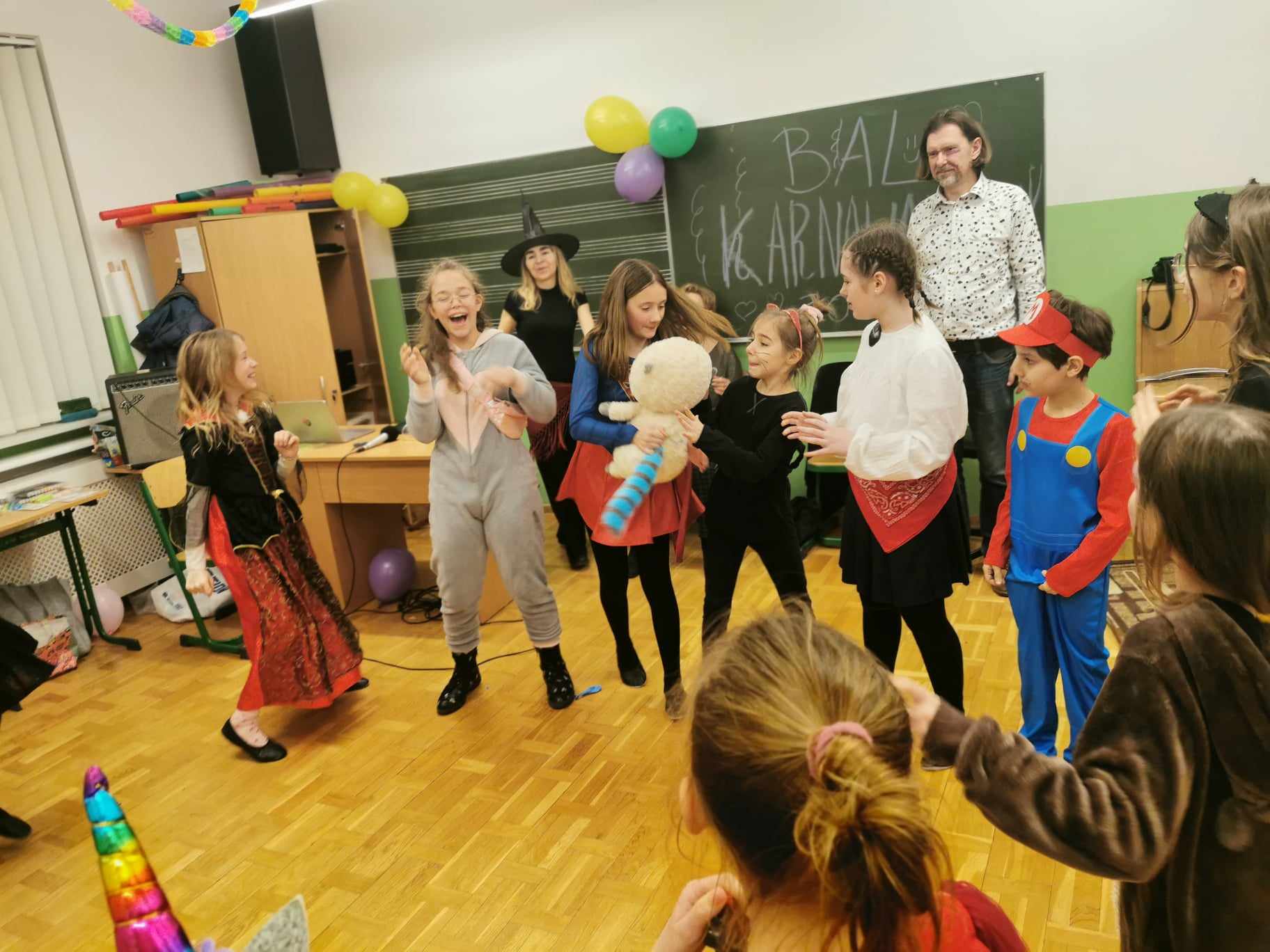 7 lutego w naszej szkole był dniem wyjątkowej "Zabawy Karnawałowej". Nasi uczniowie wzięli udział w licznych tańcach, zabawach, konkursach. Uczniowie przebrali się w swoje wymarzone postaci z bajek, filmów, idoli. Rada Rodziców przygotowała przepyszne gofry i hot-dogi. Nie zabrakło również pierwszej wspólnej nauki tańca poprowadzonej przez p. Monikę Jancy-Borowiak, a następnie wykonania go przez uczniów, rodziców i nauczycieli. Dziękujemy za niesamowitą wspólną zabawę!!!