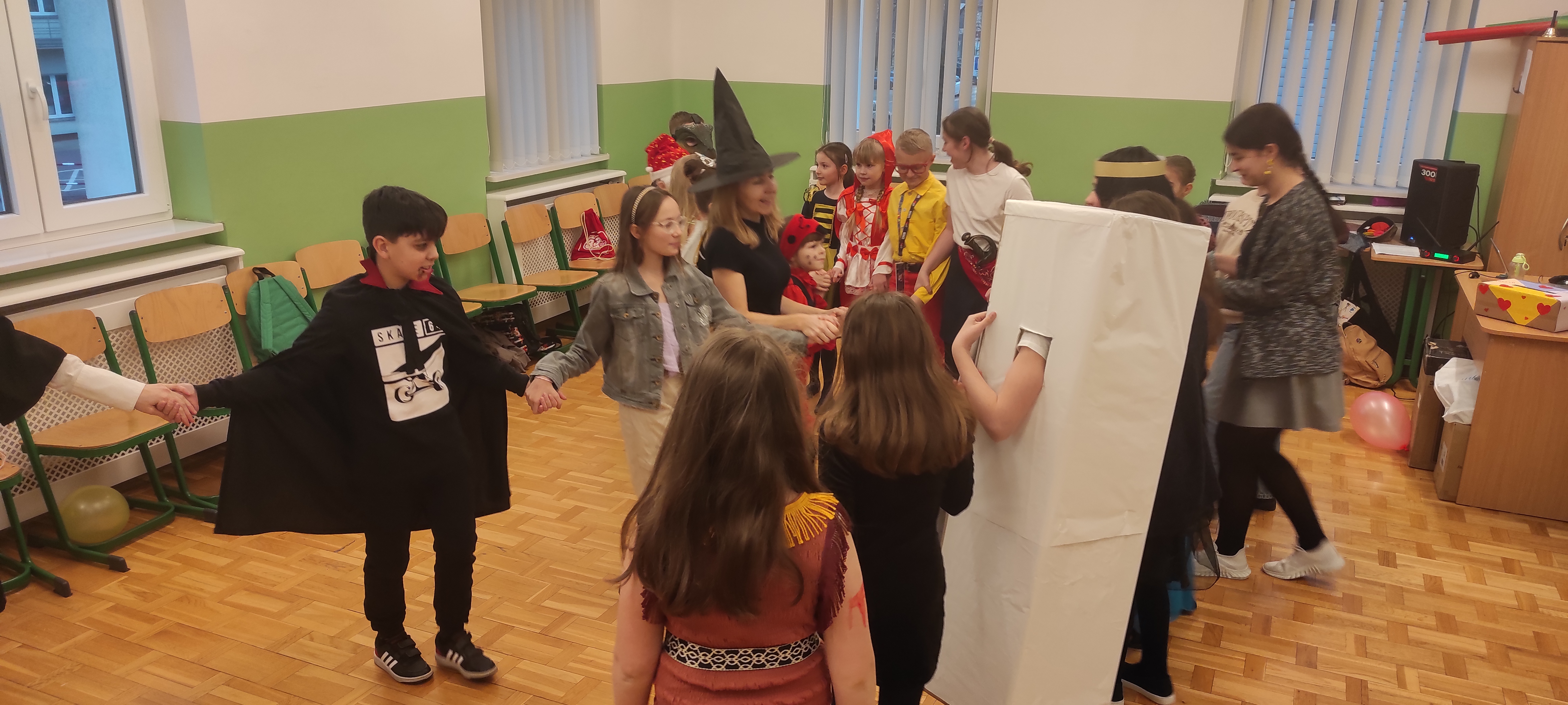 poniżej znajduje się galeria zdjęć przedstawiająca uczniów i nauczycieli podczas wspólnej zabawy