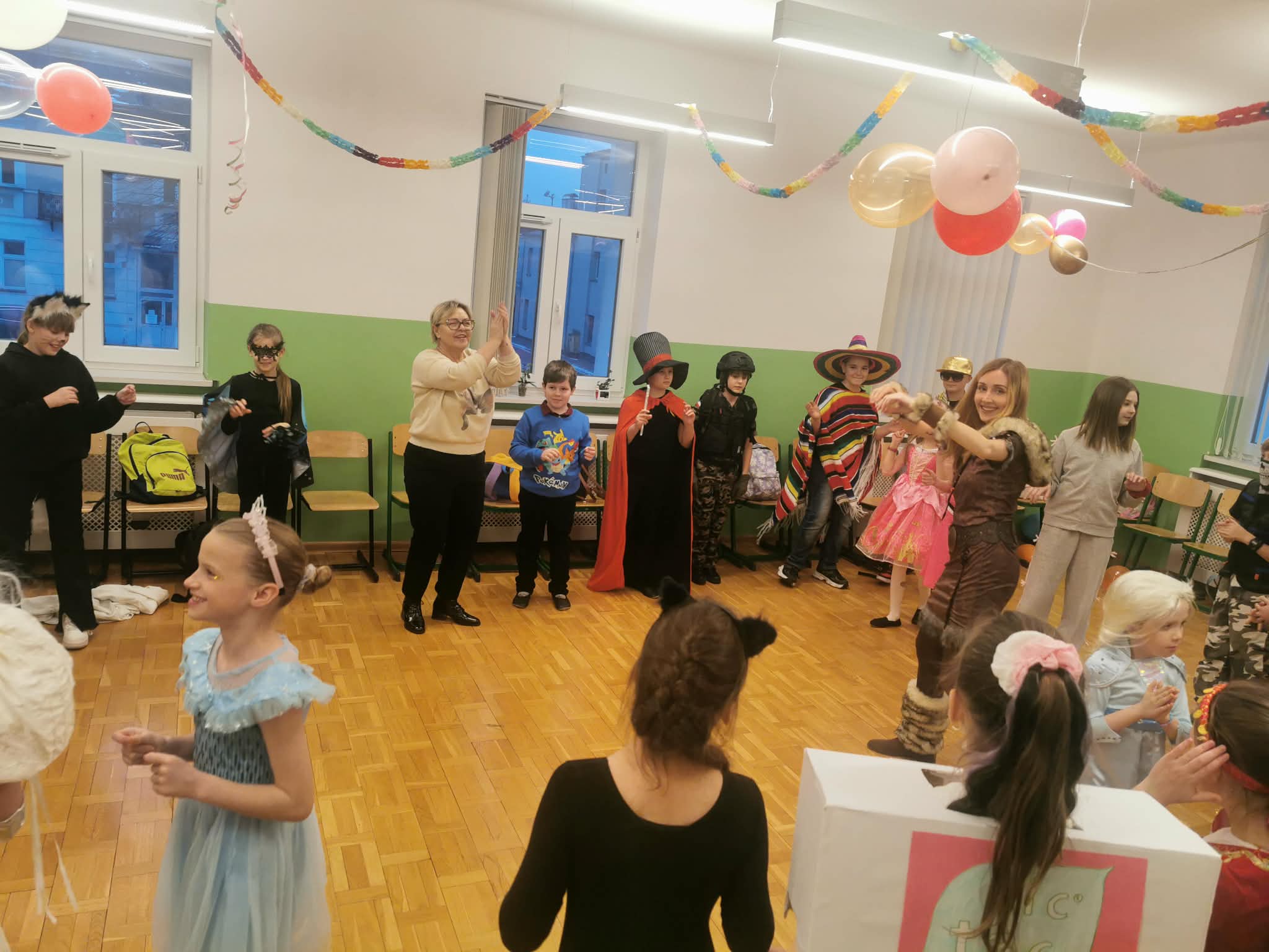 10 lutego odbyła się w naszej szkole w "Zabawa Karnawałowa". Pojawiły się tajemnicze postacie bajkowe, bohaterowie oraz przeróżni interesujący goście. Nasi uczniowie wzięli udział w licznych tańcach, zabawach, konkursach. Rada Rodziców przygotowała przepyszne gofry i hot-dogi. Nie zabrakło również wspólnej nauki tańca poprowadzonej przez p. Monikę Jancy-Borowiak, a następnie wykonania go przez uczniów, rodziców i nauczycieli. Wydarzenie to poprowadziła z wielką energią p. Lidia Ryś. Dziękujemy za niesamowitą wspólną zabawę.