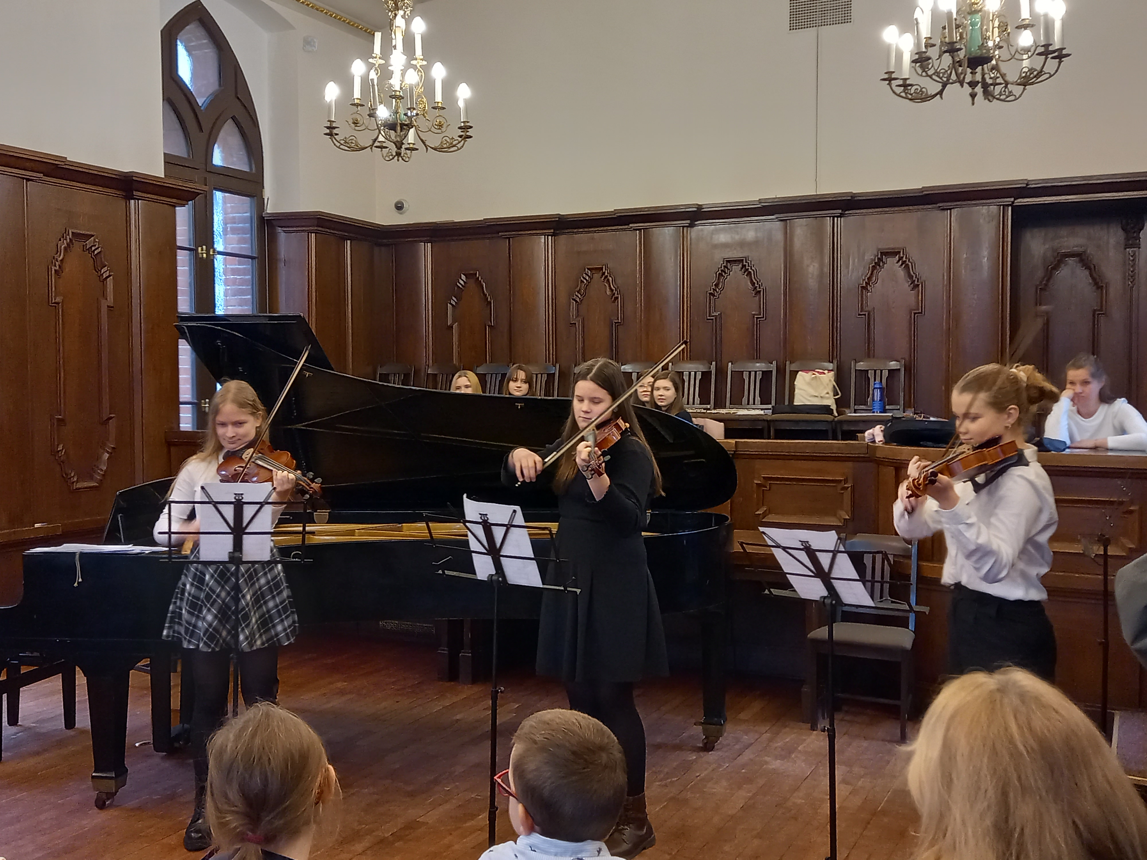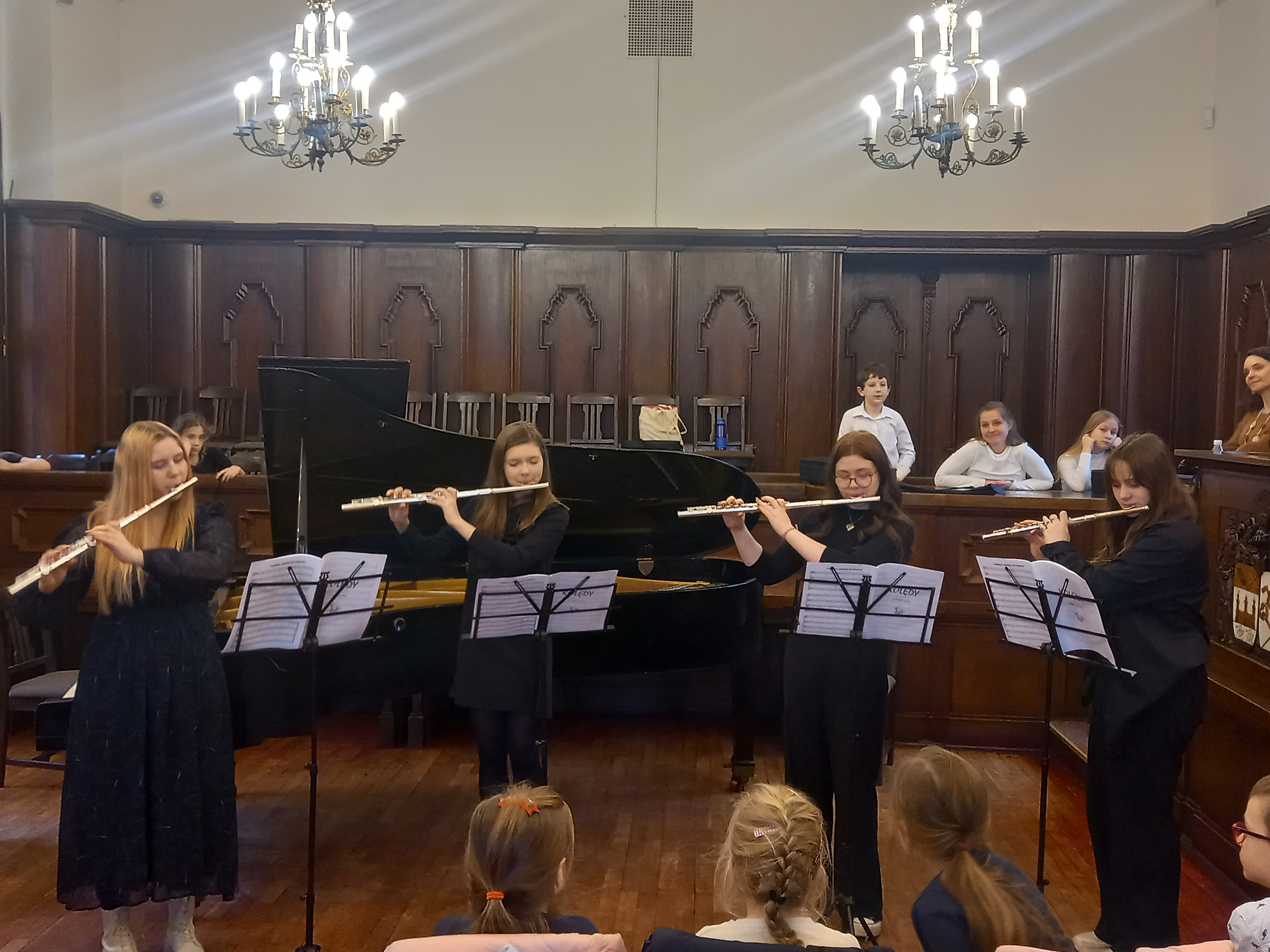 W koncercie kolędowym udział wzięli uczniowie i nauczyciele Państwowej Szkoły Muzycznej I stopnia w Kołobrzegu. Zaprezentowano tradycyjne kolędy i pastorałki w wersji instrumentalnej solo, z akompaniamentem i w zespołach. Publiczność koncertową stanowili uczniowie kołobrzeskich szkół podstawowych. Takiej publiczności mogą nam pozazdrościć filharmonicy - dzieci żywiołowo reagowały na prezentowane utwory, a także spontanicznie włączały się do wspólnego muzykowania. Koncert zakończyło krótkie wspólne kolędowanie przy akompaniamencie fortepianu na 4 ręce - grały Panie Anna Leszczyńska i Małgorzata Otwinowska-Paprocka, które przygotowały i poprowadziły całe wydarzenie.