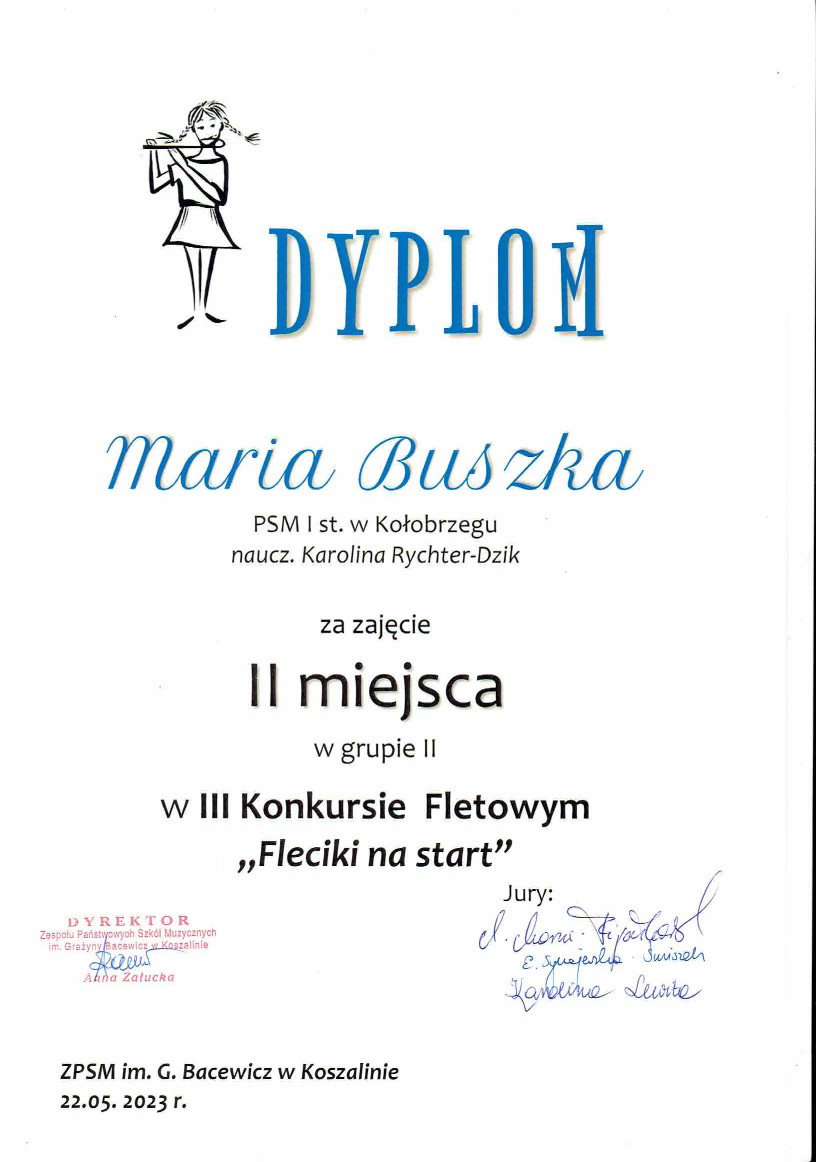 W dniu 22 maja 2023 r. w Zespole Państwowych Szkół Muzycznych im. Grażyny Bacewicz w Koszalinie odbył się III Konkurs Fletowy "Fleciki na start".