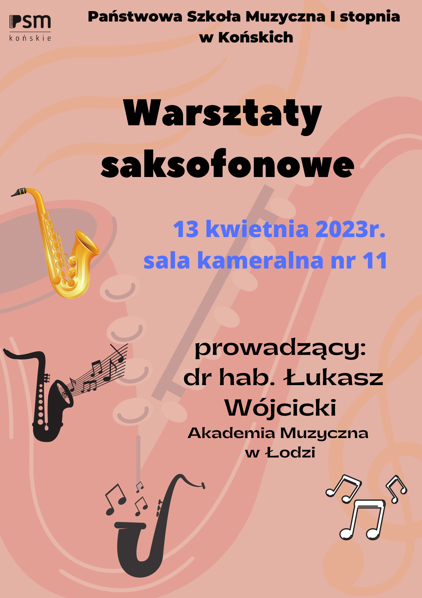 13 kwietnia 2023r. w sali nr 11 odbędą się w naszej szkole warsztaty saksofonowe, które poprowadzi