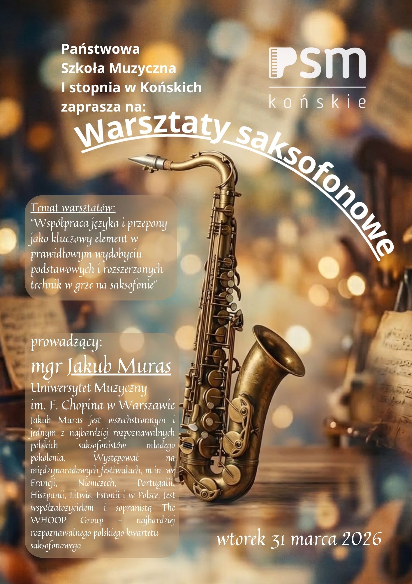 Warsztaty saksofonowe z mgr Jakubem Murasem-31.03.2026r.