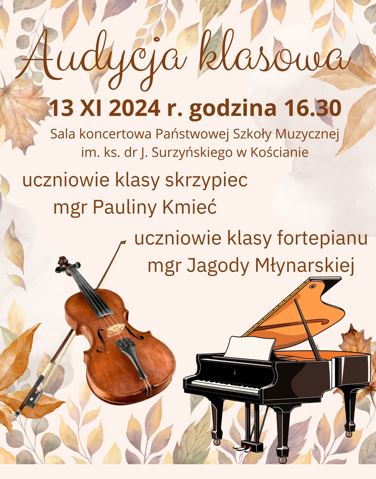 Audycja muzyczna klasy skrzypiec pani Pauliny Kmieć i klasy fortepianu pani Jagody Młynarskiej 🎹🎻 w środę 13 listopada o godz. 16:30. Zapraszamy