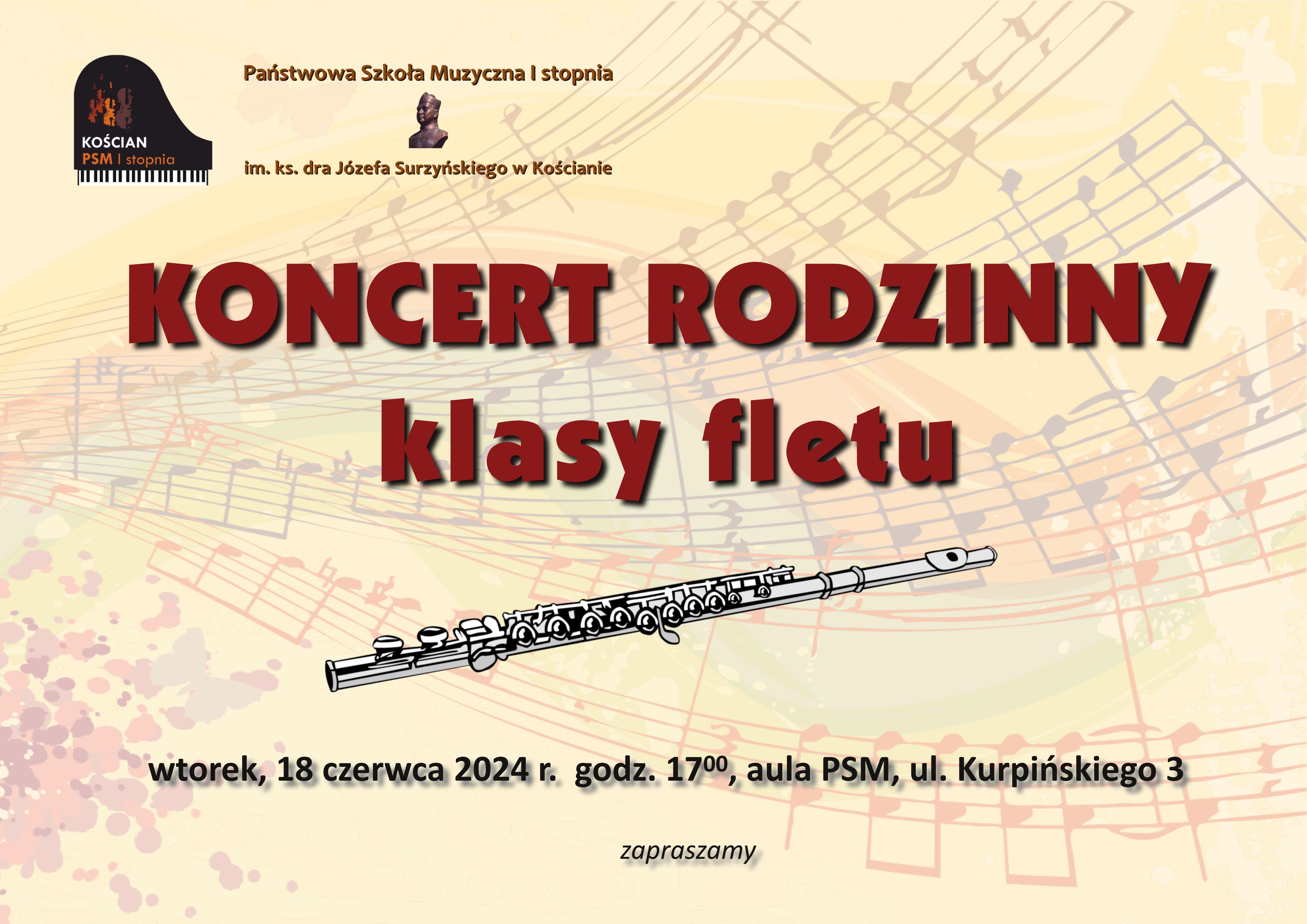 Zapraszamy na Koncert rodzinny klasy fletu, który odbędzie się we wtorek 18 czerwca 2024 r. o godz. 17:00 w auli PSM.
