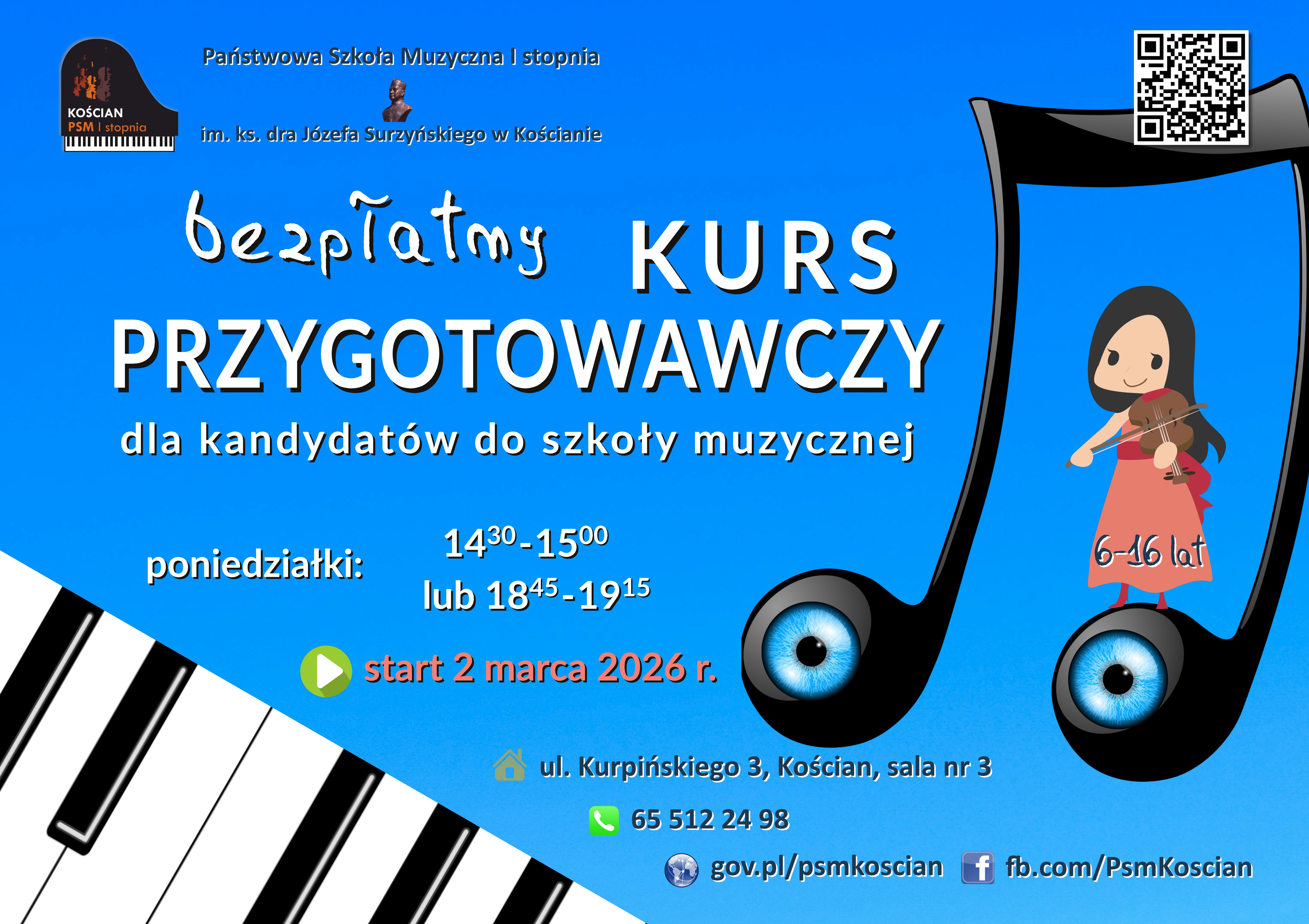 Dzieci i młodzież w wieku od 6 do 16 lat zainteresowane nauką w szkole muzycznej zapraszamy na bezpłatny Kurs Przygotowawczy.