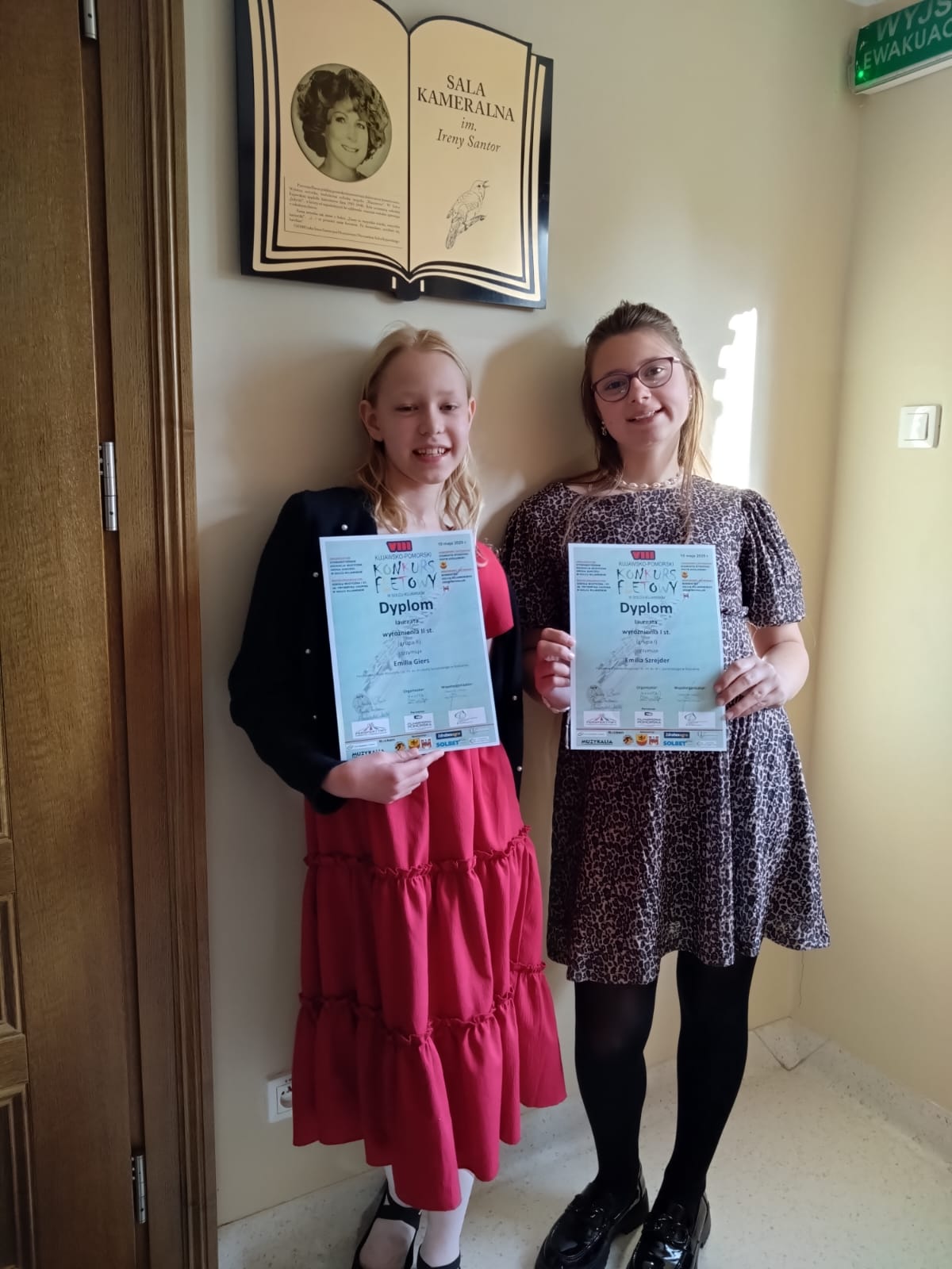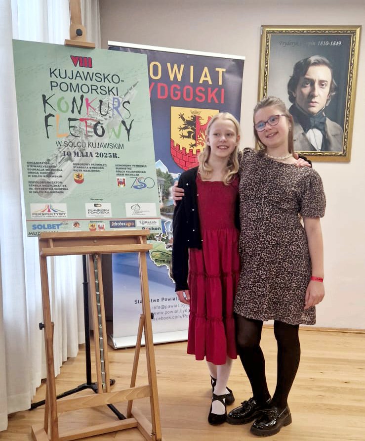 Emilia Szrejder i Emilia Giers z klasy fletu Agnieszki Panas zdobyły wyróżnienia VIII Kujawsko- Pomorskiego Konkursu Fletowego, który odbył się 10 maja 2025 r. w Solcu Kujawskim. Uczennicom akompaniowała Adrianna Zielińska. Gratulujemy sukcesów.