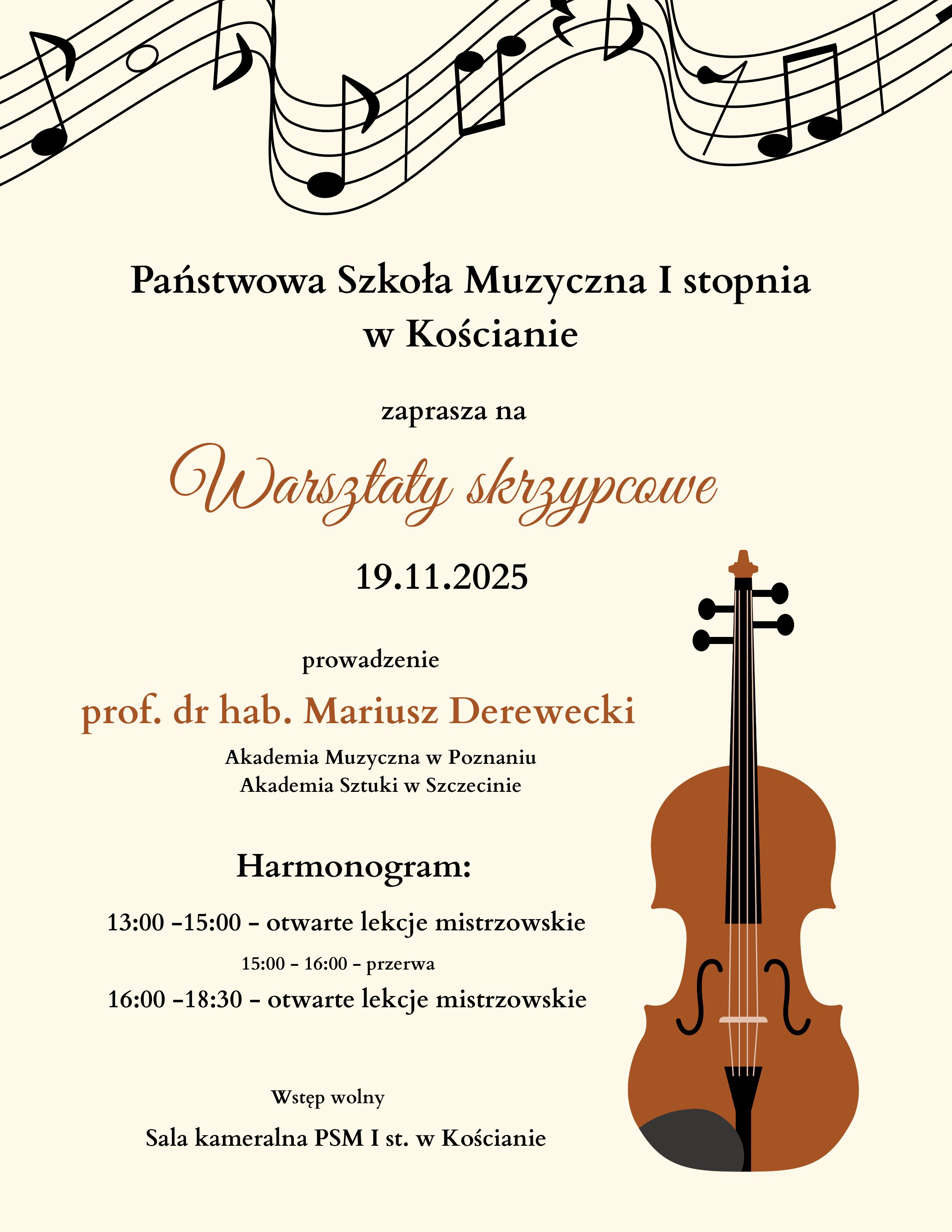 Warsztaty skrzypcowe odbędą się w auli PSM w środę 19 listopada.