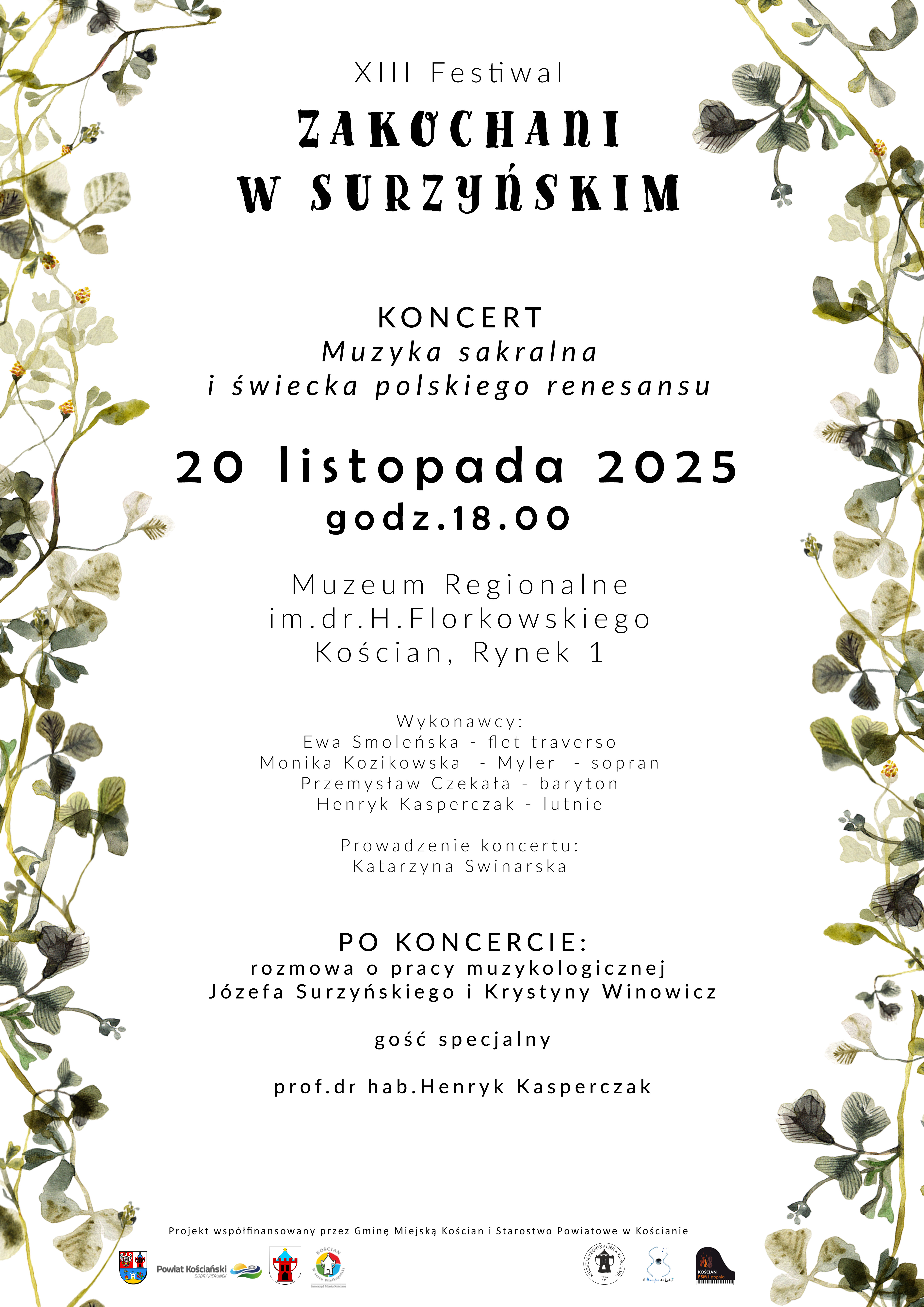W związku z XIII Festiwalem „Zakochani w Surzyńskim”, który odbędzie się w dniu 20 listopada 2025 r. (czwartek) w godz. 17:00 do 19:00.