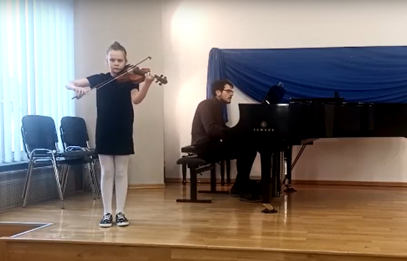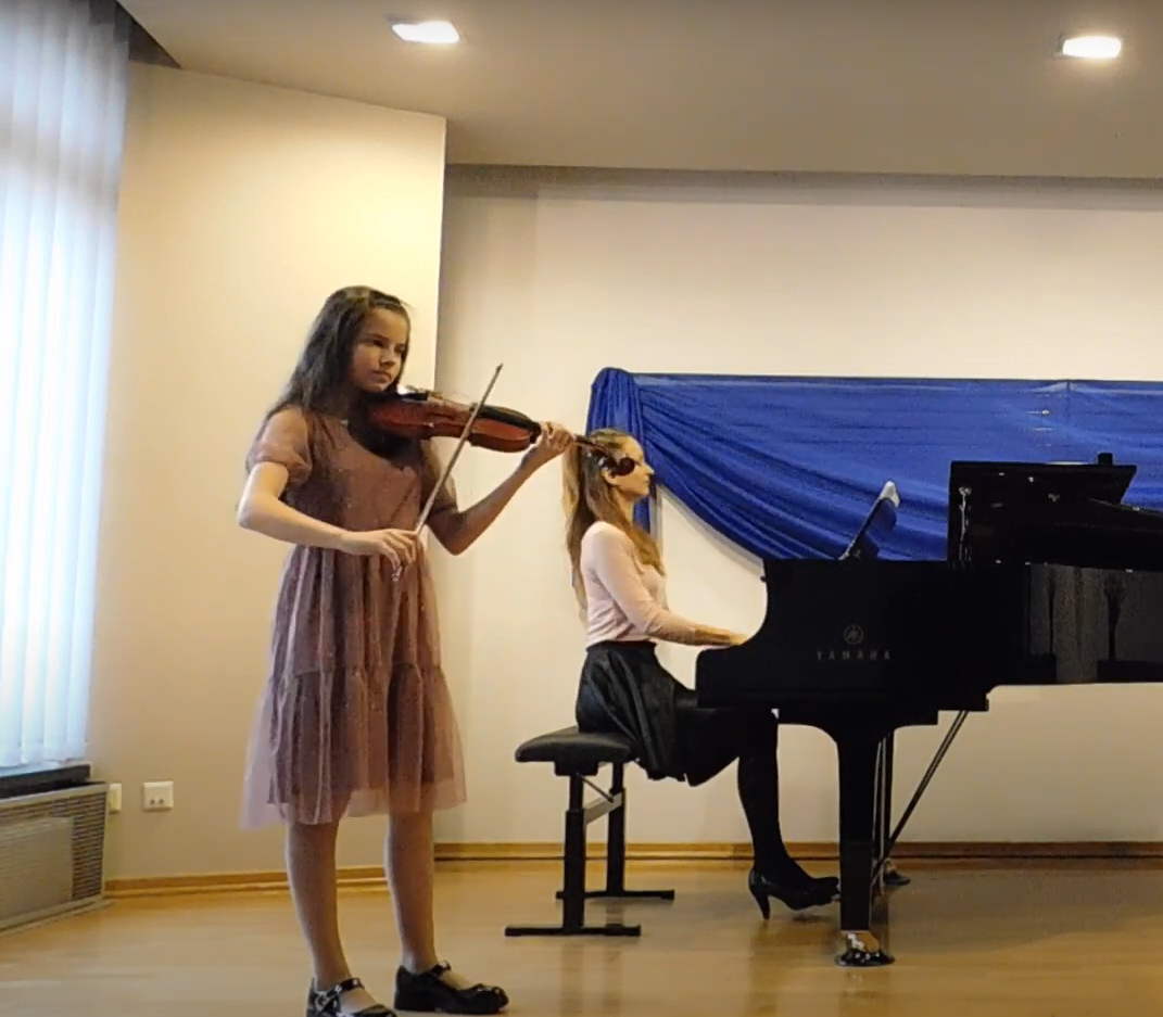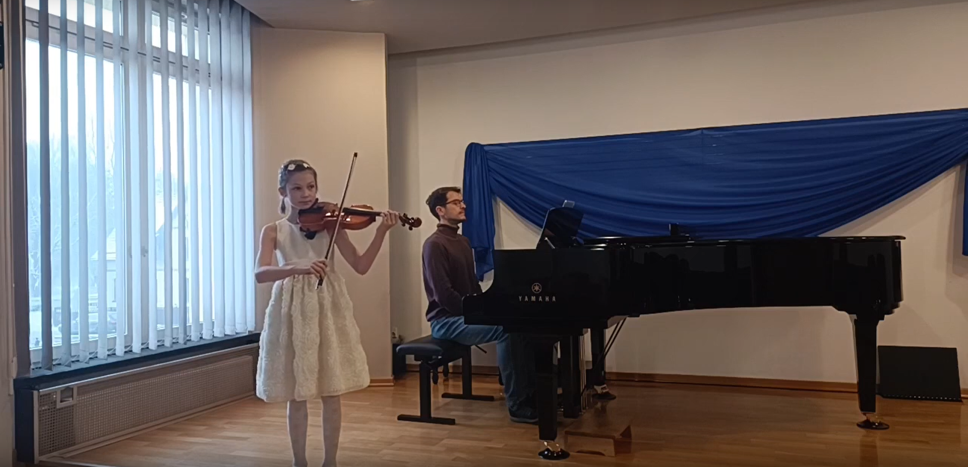 - uczennica klasy skrzypiec Pani Beaty Makowskiej- Kaja Braczkowska, akompaniował Pan Arkadiusz Farkowski,