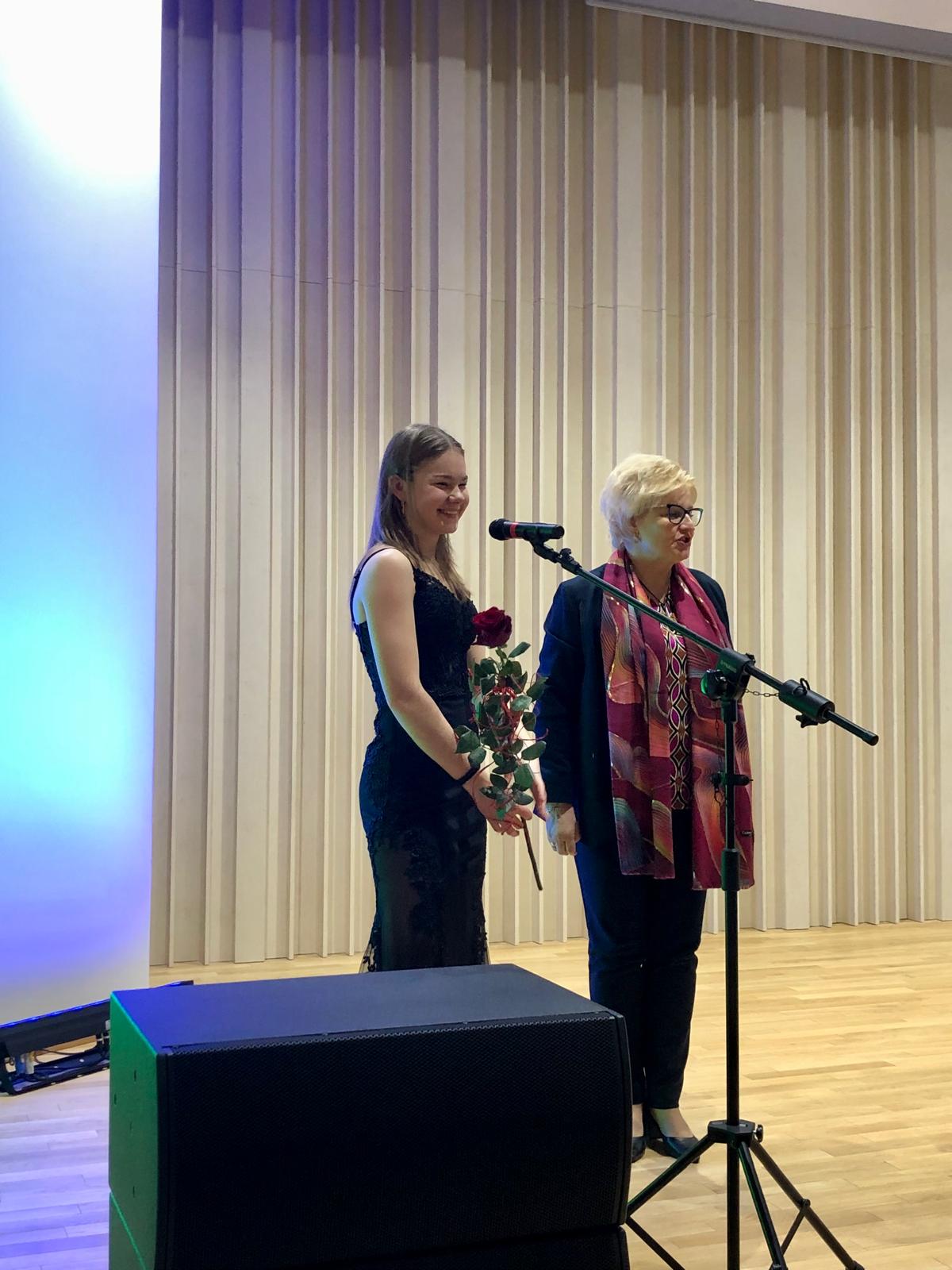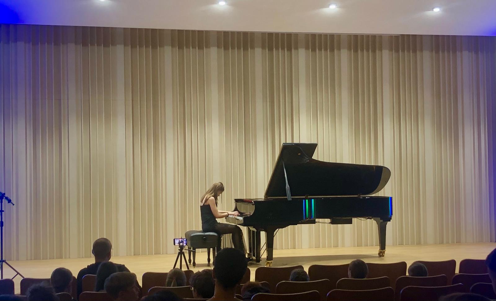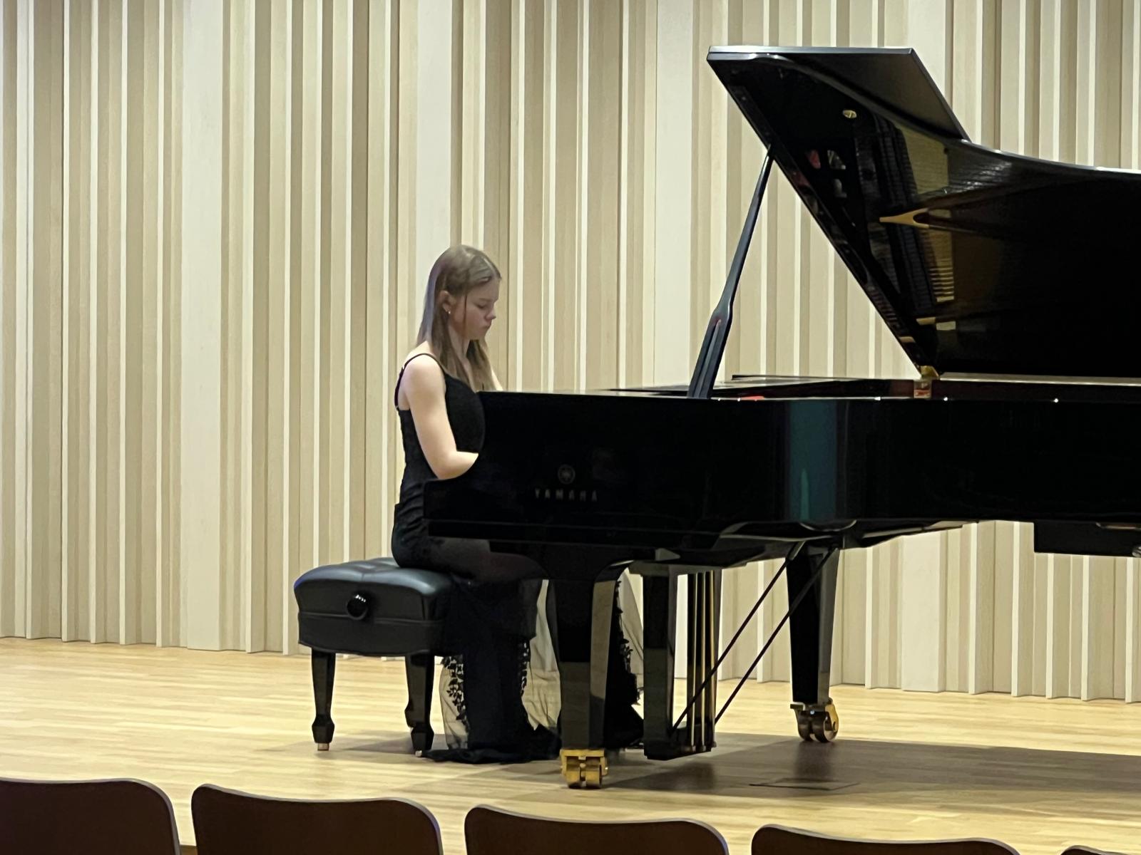 W dniu 3 lutego 2025 r. w sali koncertowej naszej szkoły zgromadzona publiczność wysłuchała koncertu fortepianowego. Gwiazdą wieczoru była Pani Maja Cierach, która jest uczennicą XI klasy Ogólnokształcącej Szkoły Muzycznej I i II stopnia im. Feliksa Nowowiejskiego w Gdańsku. Kształci się pod kierunkiem dr hab. Elżbiety Pasierowskiej. Program koncertu obejmował utwory wybitnych kompozytorów takich, jak: Domenico Scarlatti, Johann Sebastian Bach, Ferenc Liszt oraz Fryderyk Chopin. Artystka wydobyła wspaniałe dźwięki fortepianu, od delikatnych i eterycznych po potężne i pełne ekspresji. Serdecznie dziękujemy za wspaniały występ. Pasja i zaangażowanie były widoczne w każdym momencie koncertu. Zgromadzona publiczność przeżyła niezapomniane chwile, pełne emocji i artystycznej magii. Pani Mai jeszcze raz dziękujemy i życzymy wielu sukcesów w dalszej pracy artystycznej!