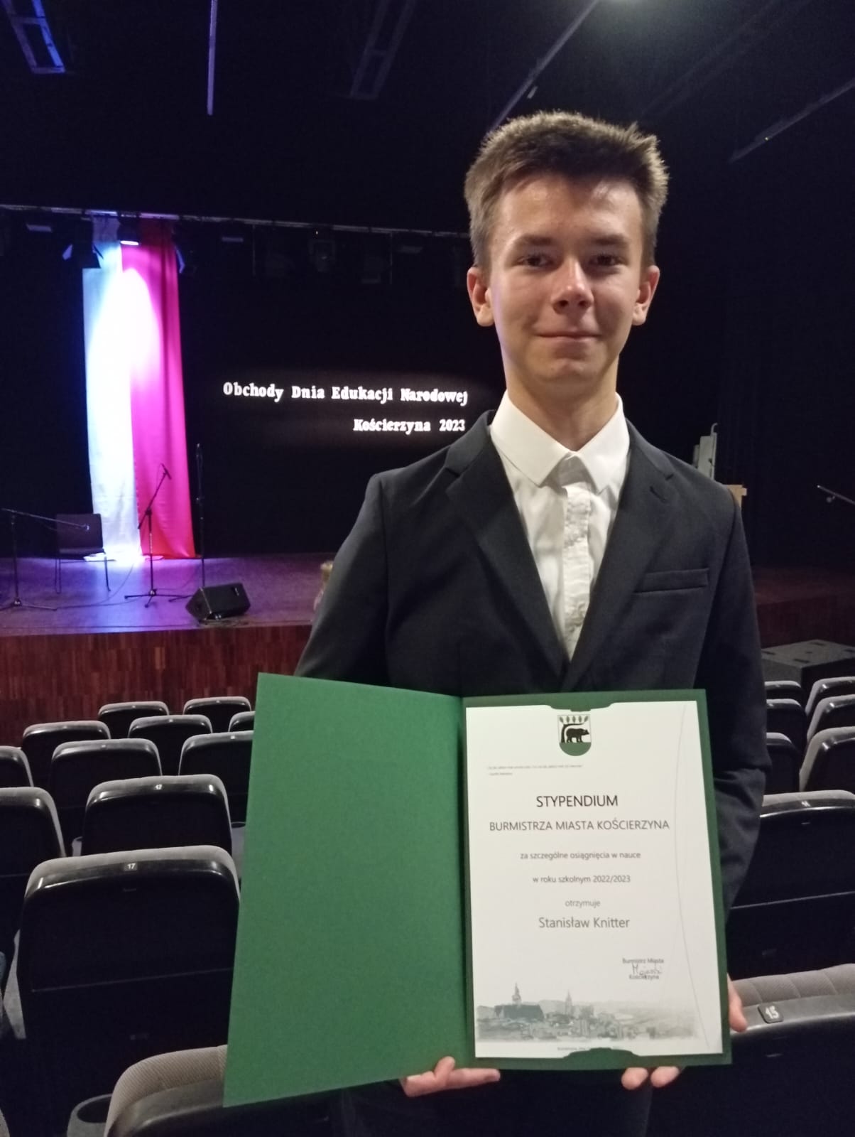 W dniu 13 października 2023 r. w sali im. Lubomira Szopińskiego podczas uroczystej sesji Rady Miasta Kościerzyna wręczono stypendia wyróżniającym się uczniom. Niezmiernie miło nam poinformować, że Stypendium Burmistrza Miasta Kościerzyna za szczególne osiągnięcia w nauce oraz udział i sukcesy w konkursach artystycznych w roku szkolnym 2022/2023, a także działalność na rzecz szkoły, środowiska lokalnego i miasta otrzymali nasi uczniowie: