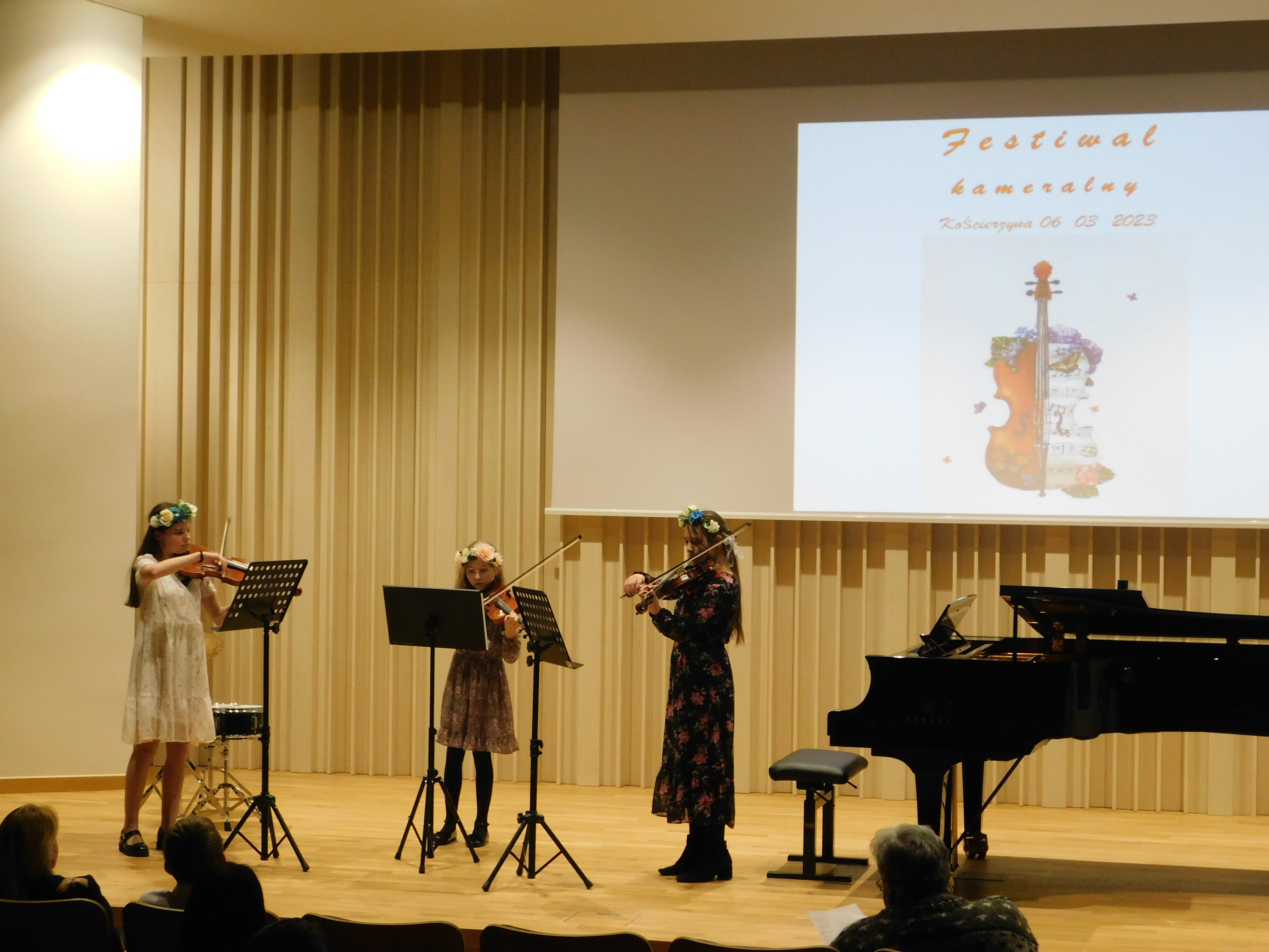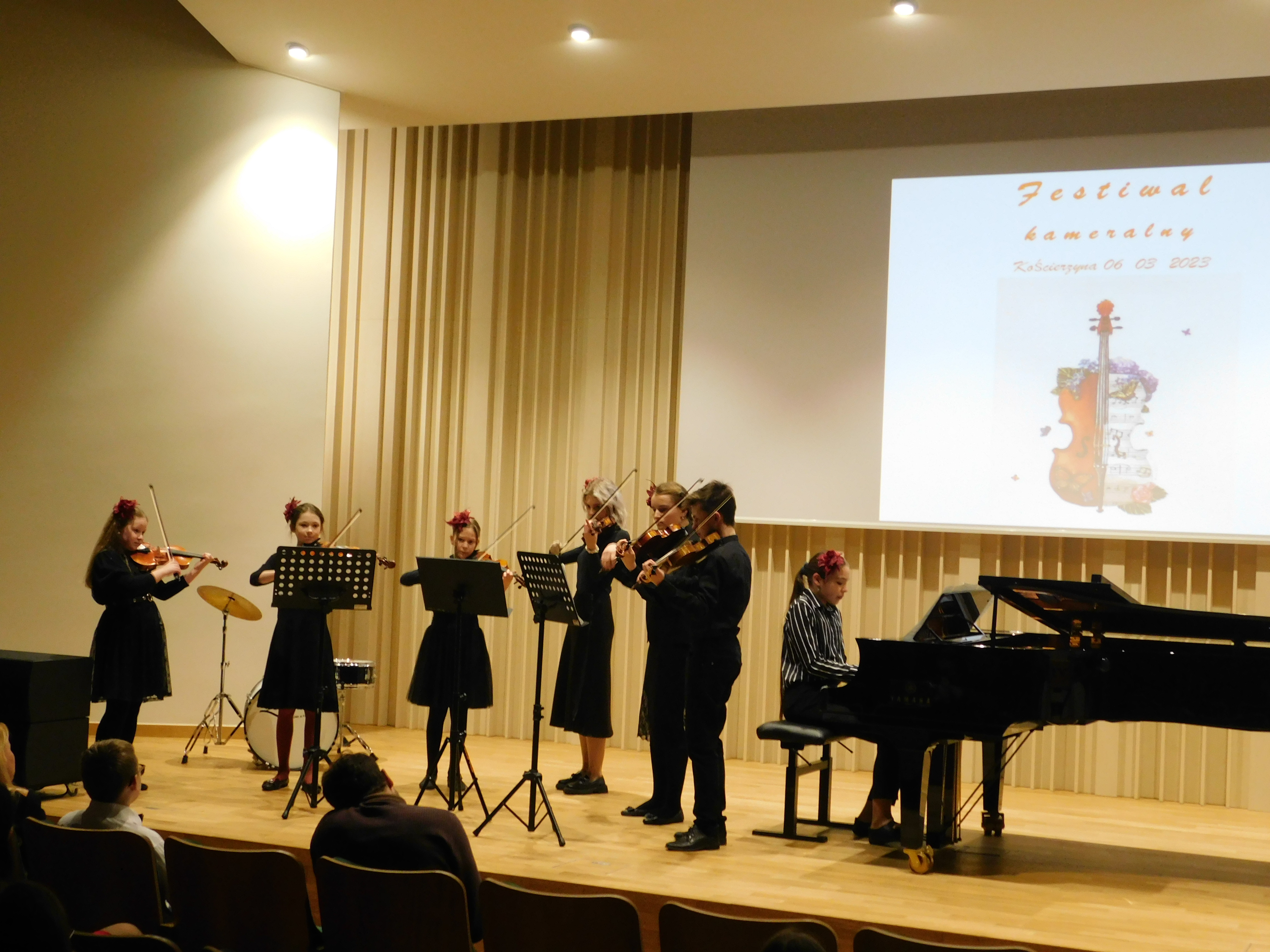 W dniu 06 marca 2023 r. odbył się w naszej szkole I Festiwal Muzyki Kameralnej. Zespoły kameralne złożone z uczniów naszej szkoły po raz pierwszy wystąpiły na nowej sali koncertowej. Przed publicznością zaprezentowały się: