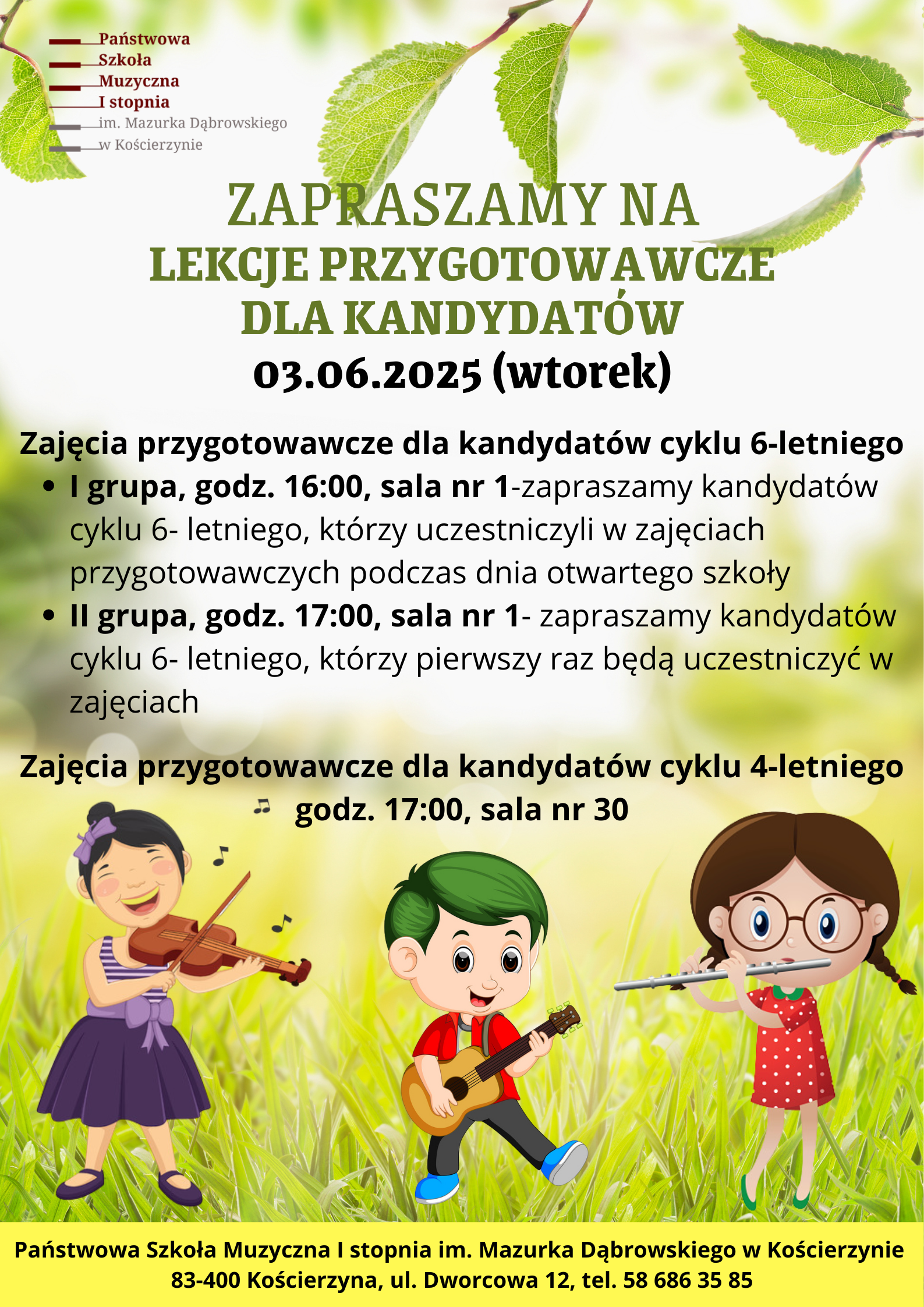 Państwowa Szkoła Muzyczna I stopnia im. Mazurka Dąbrowskiego w Kościerzynie co roku przeprowadza rekrutację kandydatów do klas pierwszych.