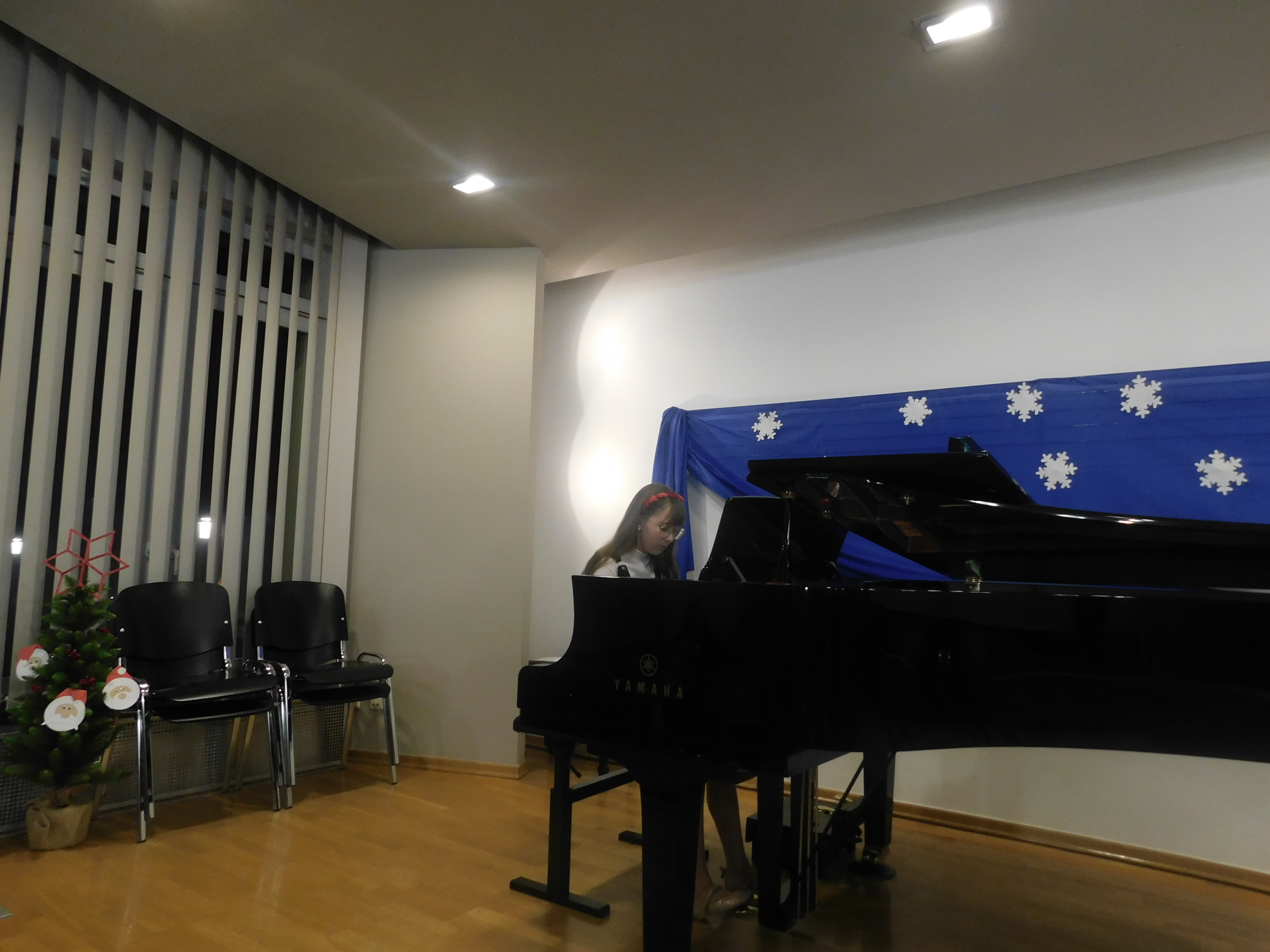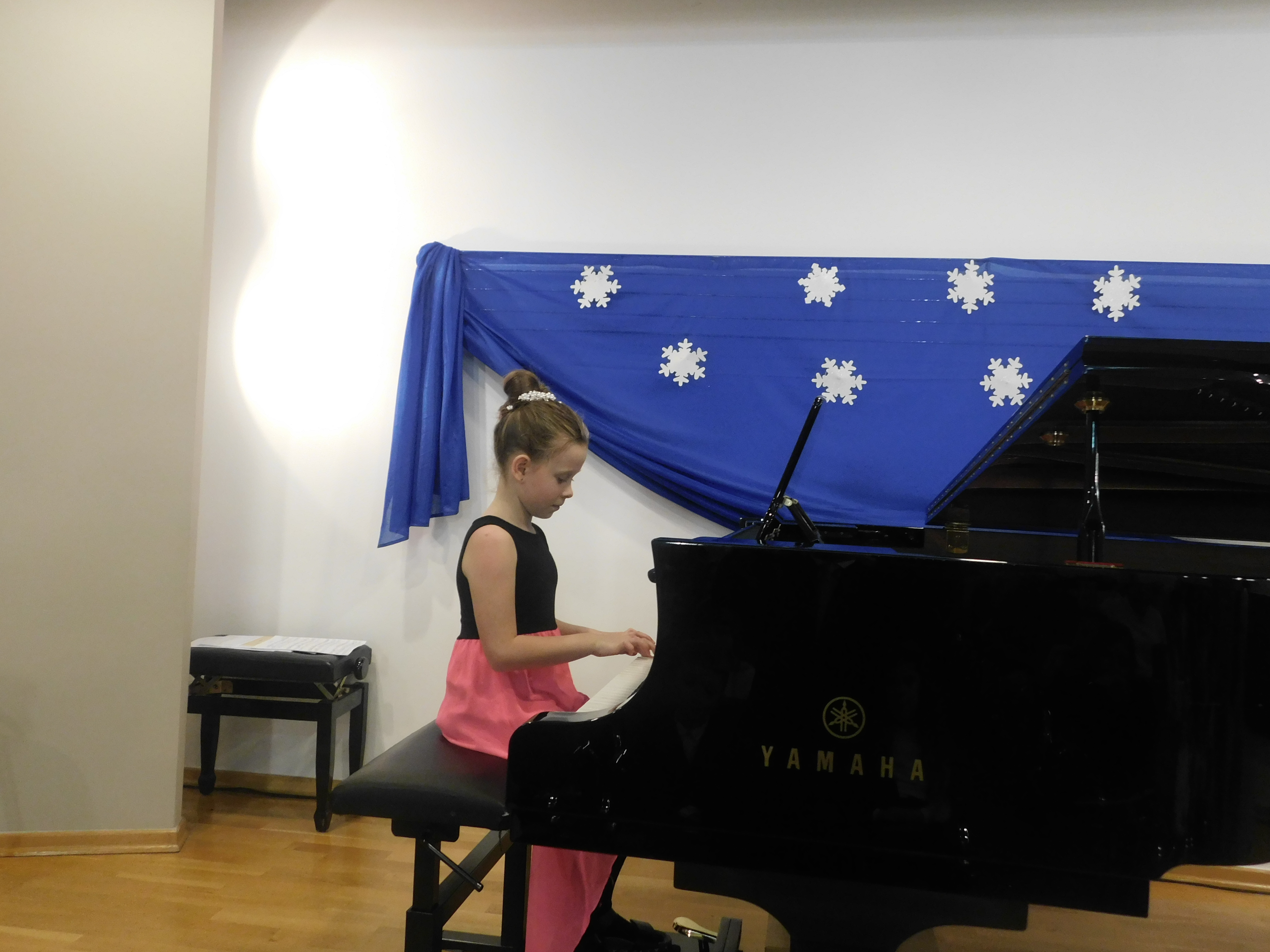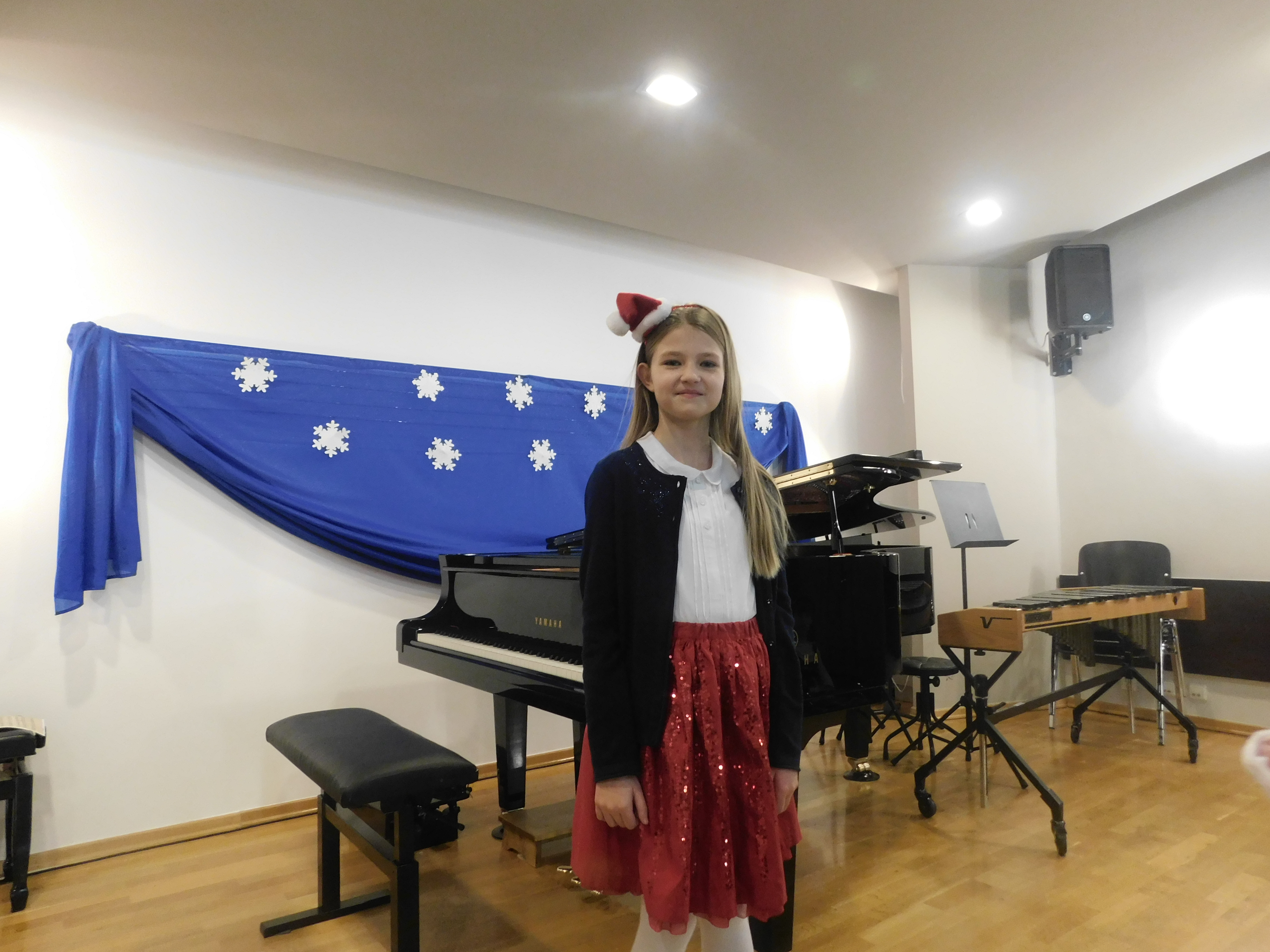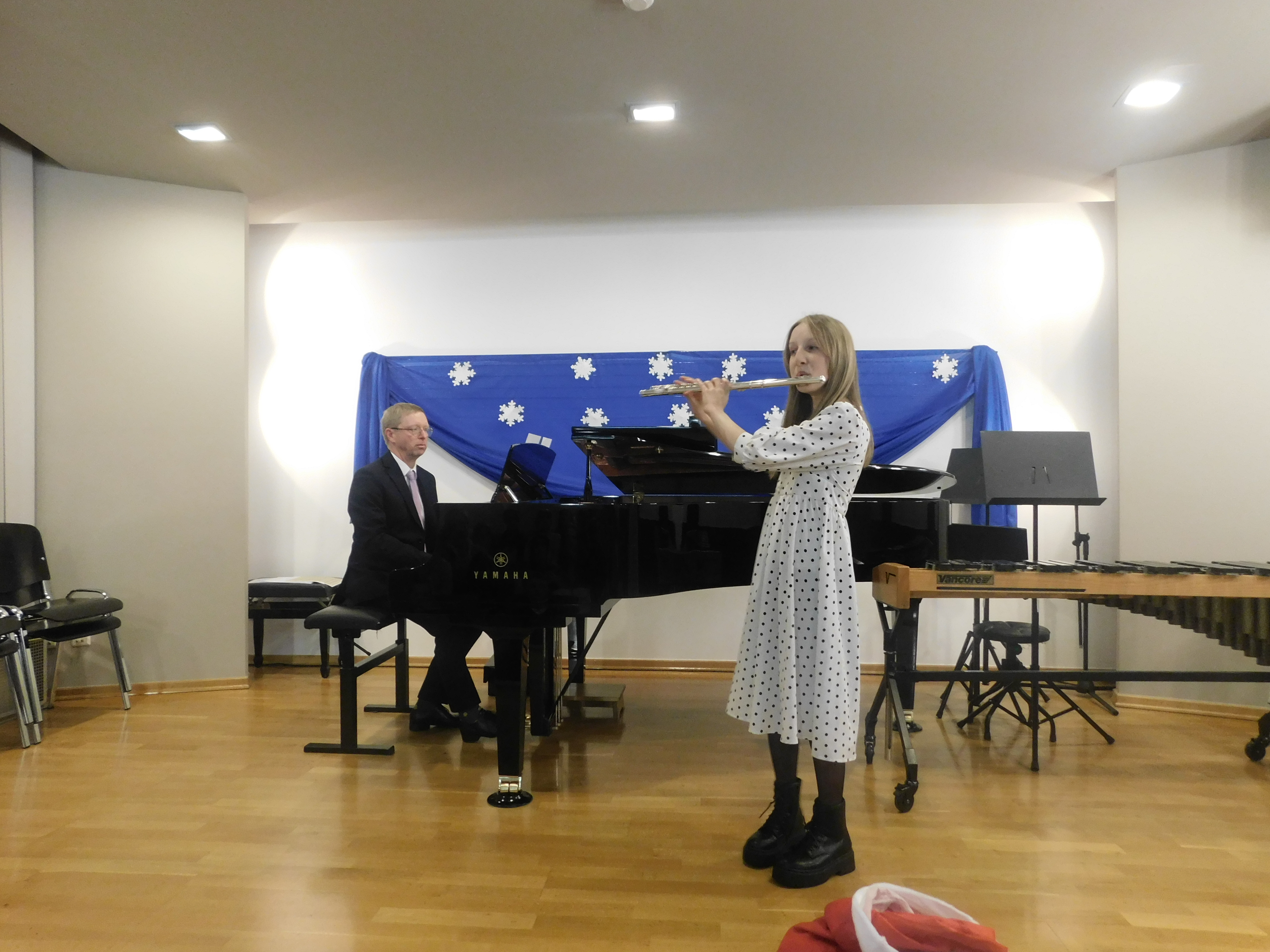 W dniu 11 grudnia 2023 r. w sali kameralnej naszej szkoły wystąpili uczniowie klasy fletu Pani Katarzyny Karczewskiej i klasy fortepianu Pana Zbigniewa Kąkola. Dla niektórych z nich był to pierwszy występ przed tak licznie zgromadzoną publicznością. Młodzi artyści poradzili sobie wyśmienicie. Flecistkom podczas występu przy fortepianie towarzyszył Pan Zbigniew Kąkol. Gościnnie wystąpił zespół przygotowany przez Panią Beatę Makowską w składzie: Aniela Jąkalska- skrzypce, Anastazja Jąkalska- perkusja, Emilia Jąkalska- fortepian, Magdalena Jąkalska- gitara. Wszystkim serdecznie gratulujemy!