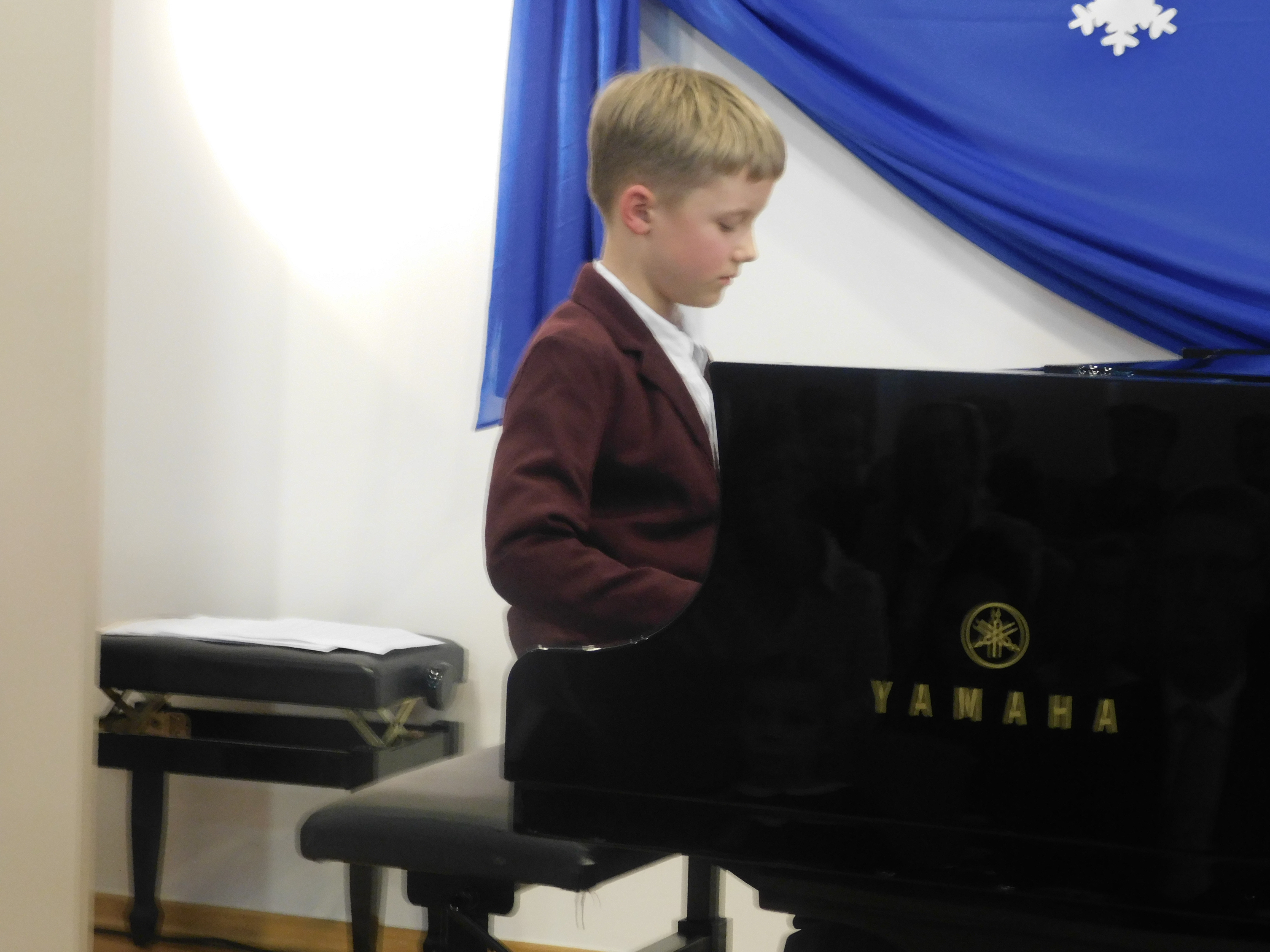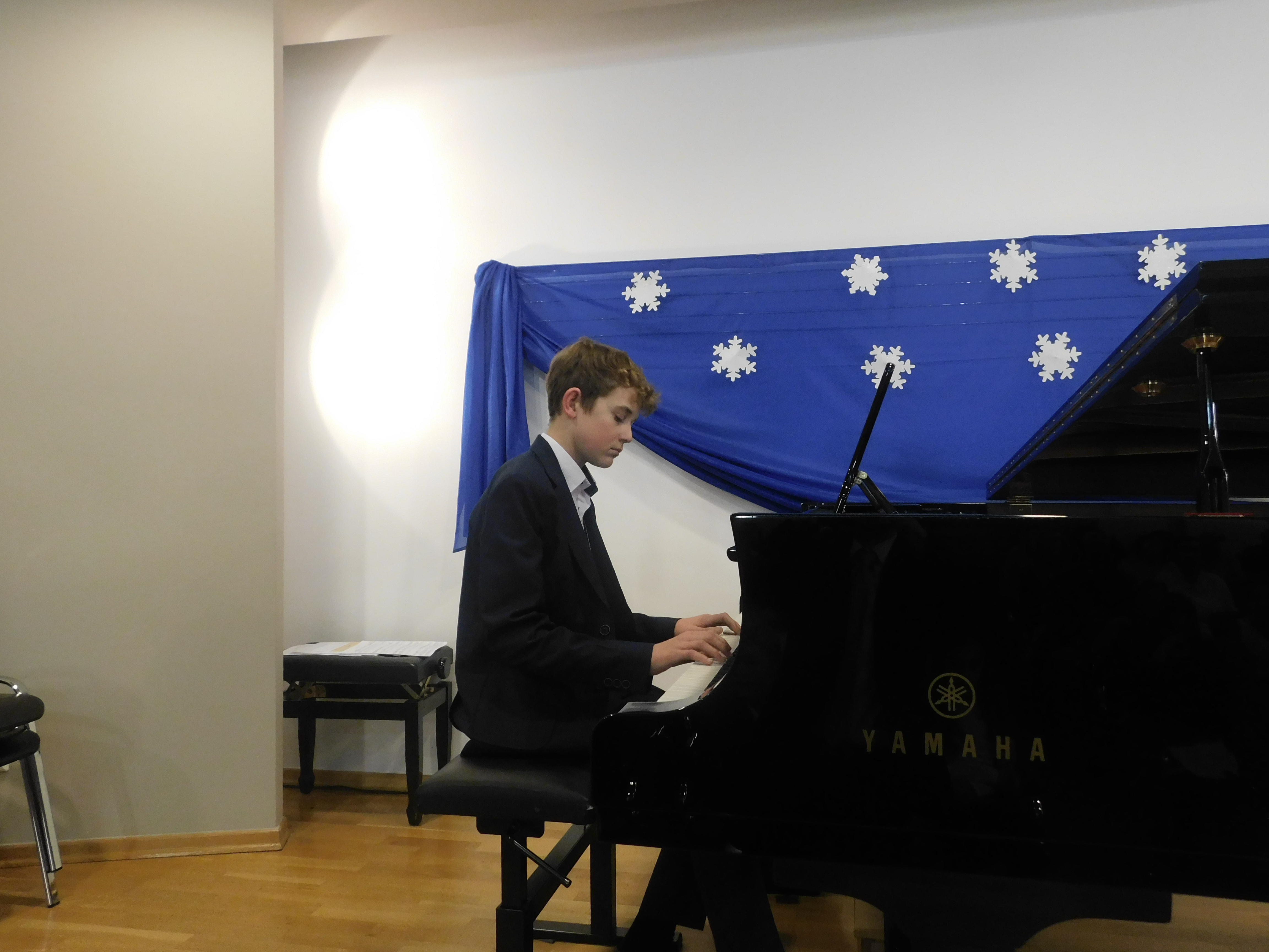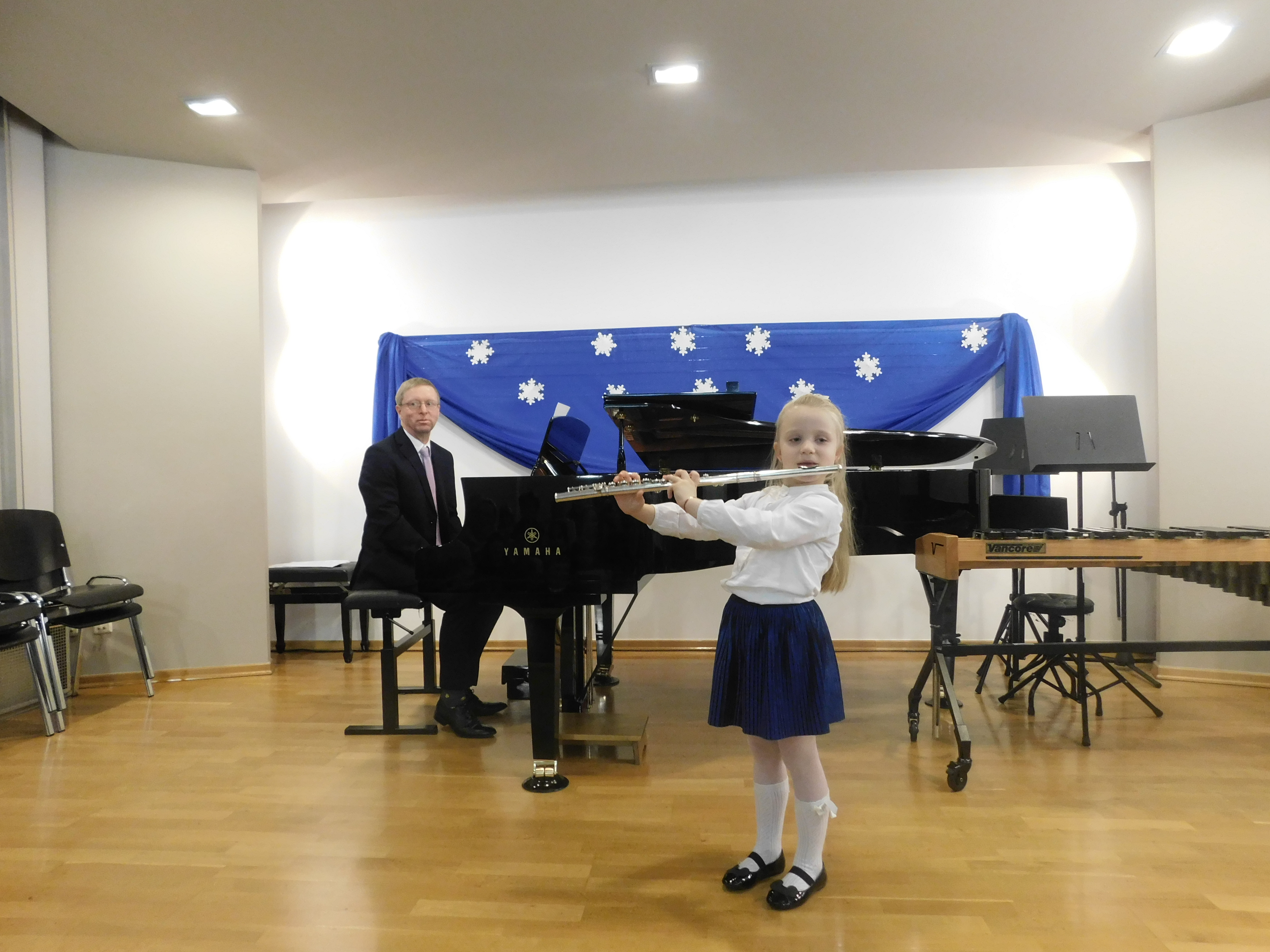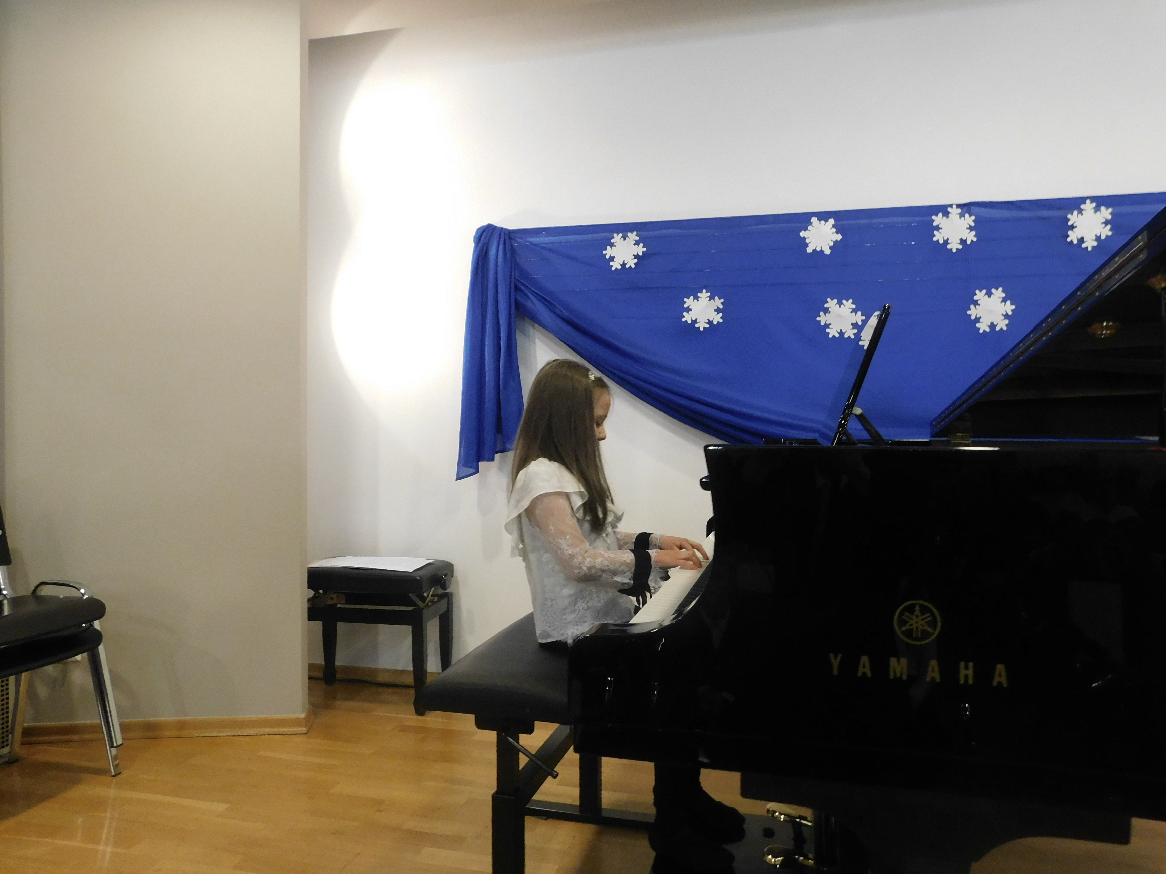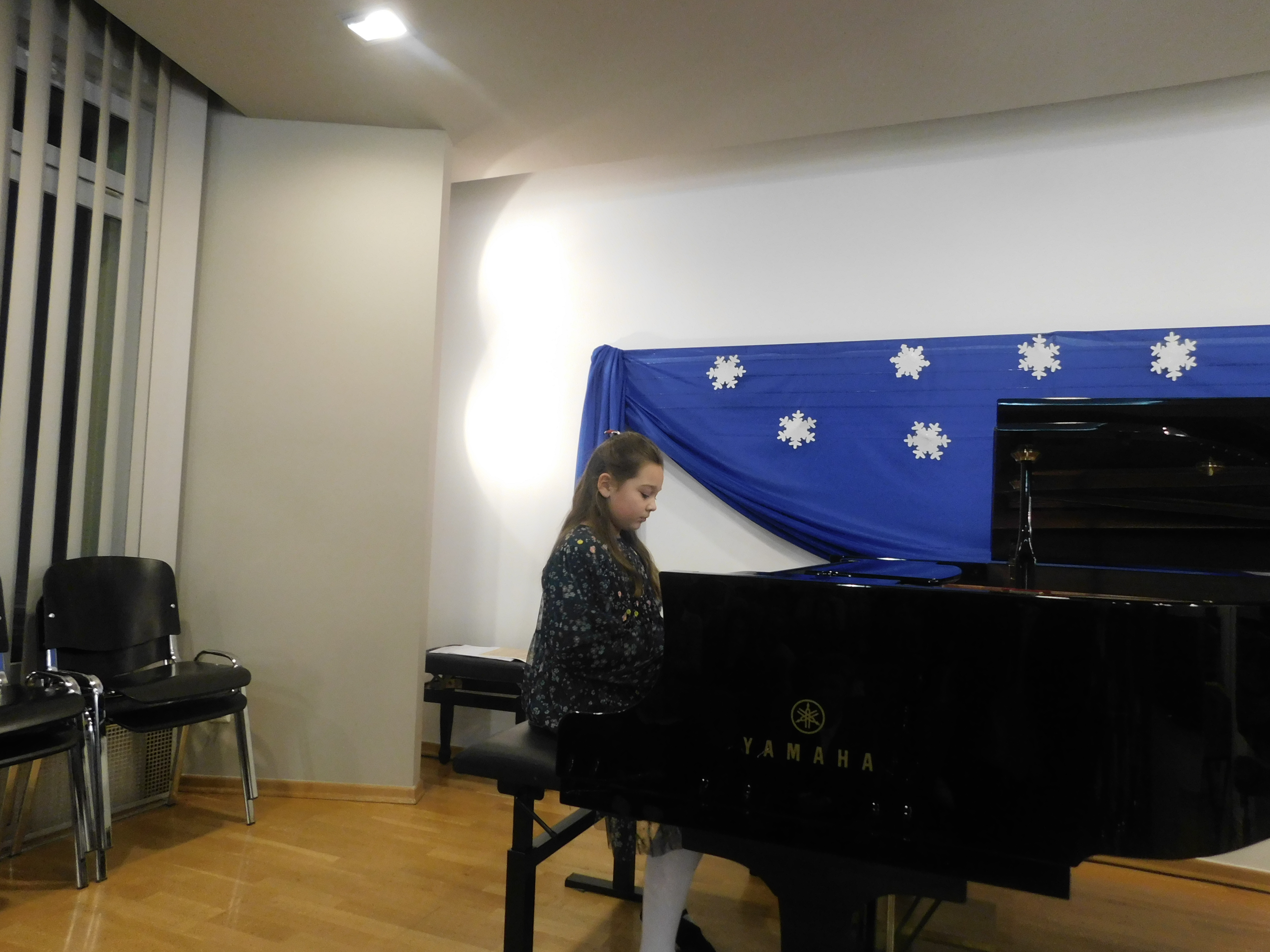 W dniu 11 grudnia 2023 r. w sali kameralnej naszej szkoły wystąpili uczniowie klasy fletu Pani Katarzyny Karczewskiej i klasy fortepianu Pana Zbigniewa Kąkola. Dla niektórych z nich był to pierwszy występ przed tak licznie zgromadzoną publicznością. Młodzi artyści poradzili sobie wyśmienicie. Flecistkom podczas występu przy fortepianie towarzyszył Pan Zbigniew Kąkol. Gościnnie wystąpił zespół przygotowany przez Panią Beatę Makowską w składzie: Aniela Jąkalska- skrzypce, Anastazja Jąkalska- perkusja, Emilia Jąkalska- fortepian, Magdalena Jąkalska- gitara. Wszystkim serdecznie gratulujemy!