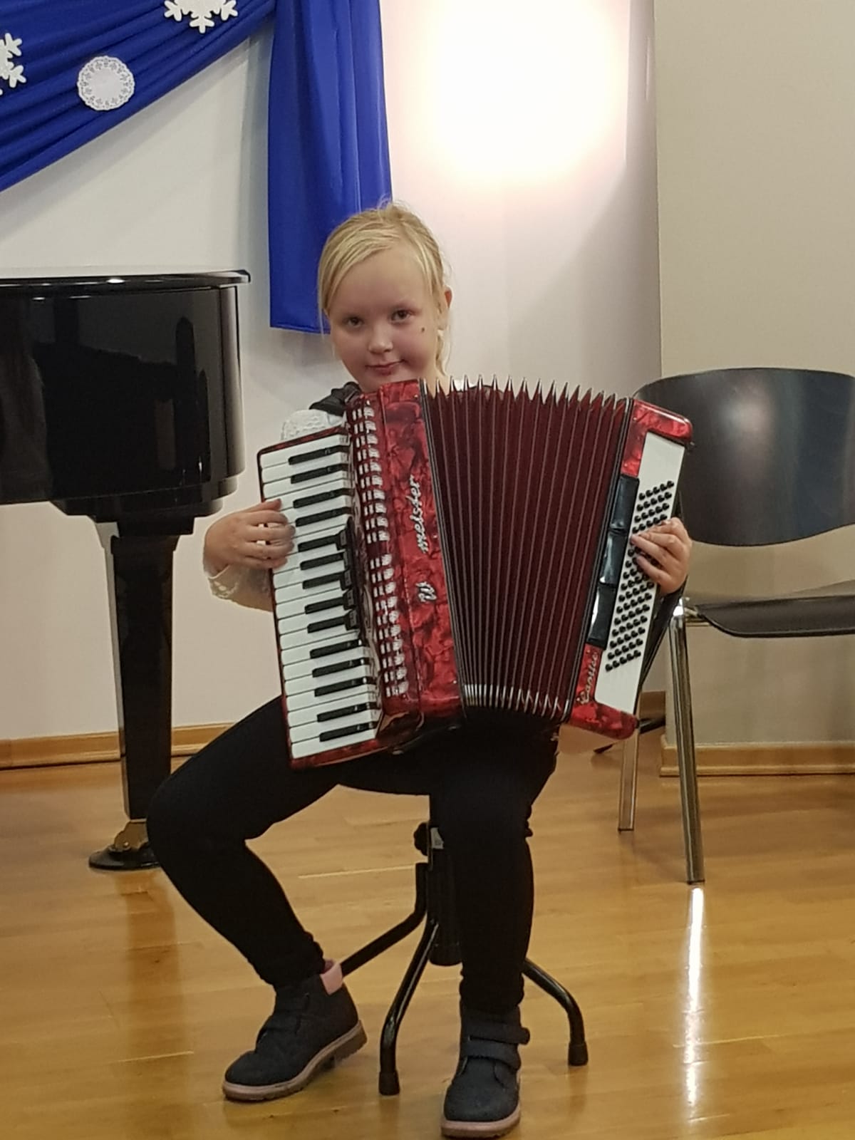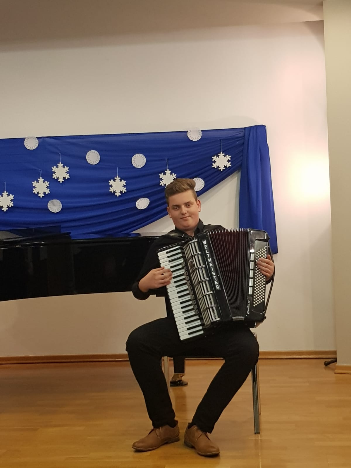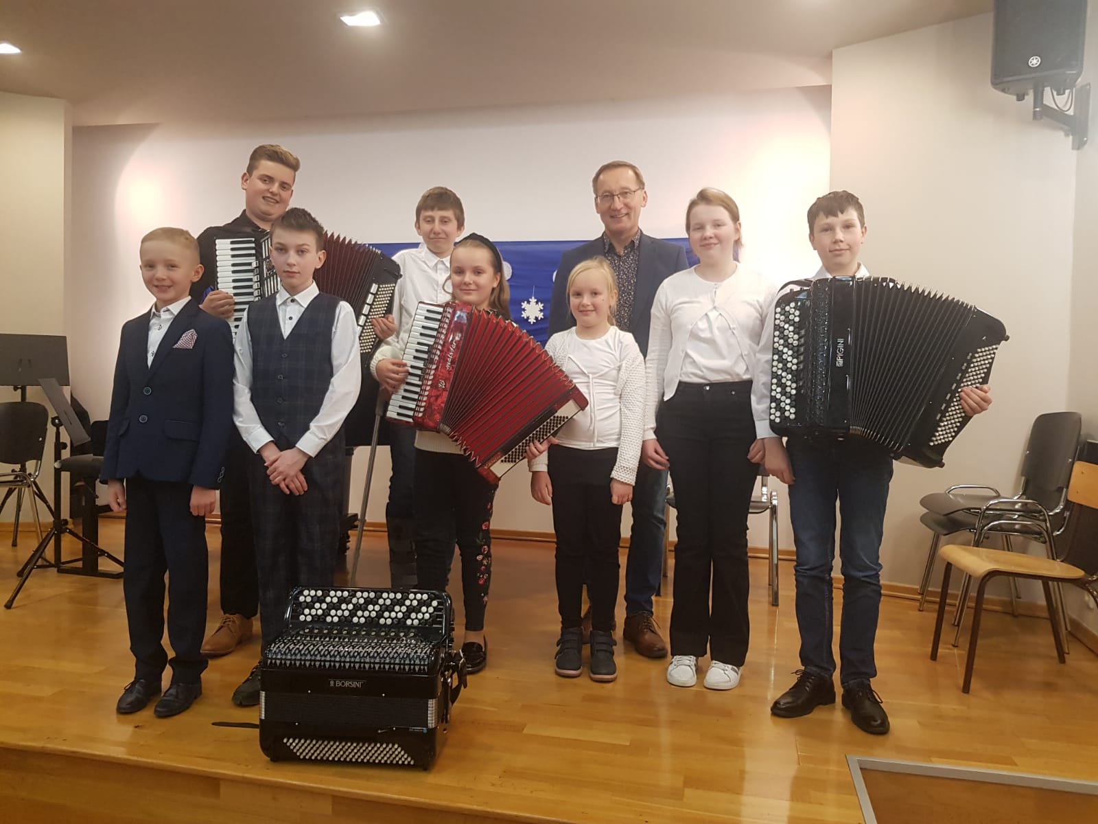 W dniu 08 grudnia 2022 r. odbył się koncert uczniów klasy akordeonu. Przed zgromadzoną publicznością wystąpili: Kamila Dorau, Kornelia Wojak, Alicja Przybyła, Sebastian Gill, Bartosz Kerlin, Artur Młyński, Arkadiusz Witulski i Mikołaj Drozdowski. Młodych artystów przygotował Pan Marek Gleinert. Zapraszamy do obejrzenia zdjęć z występu uczniów.