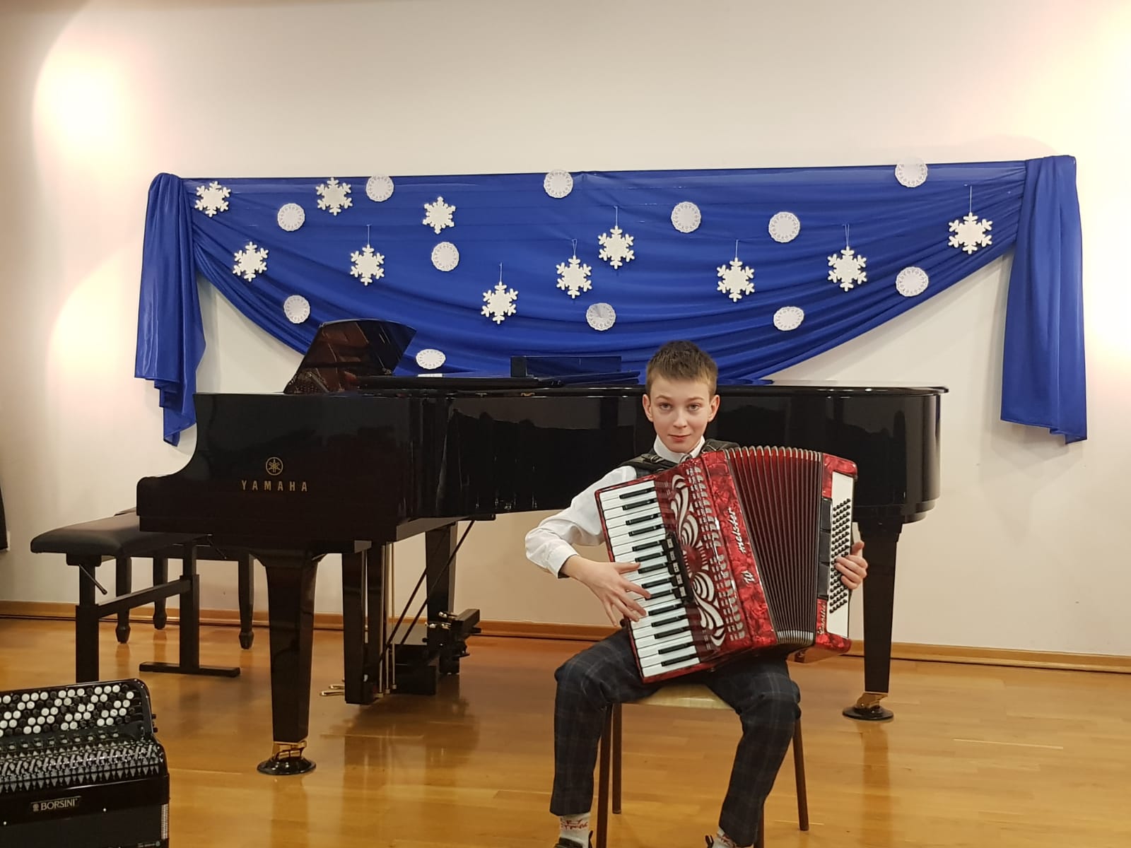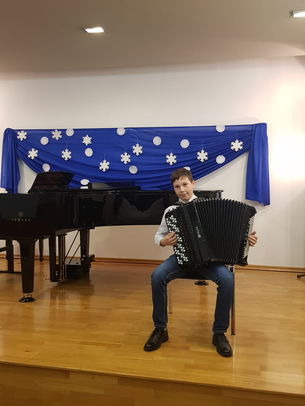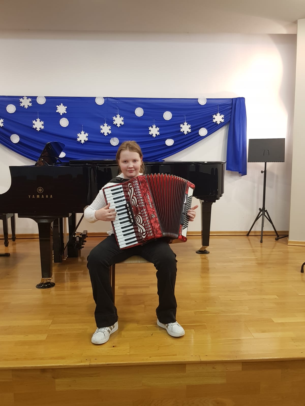 W dniu 08 grudnia 2022 r. odbył się koncert uczniów klasy akordeonu. Przed zgromadzoną publicznością wystąpili: Kamila Dorau, Kornelia Wojak, Alicja Przybyła, Sebastian Gill, Bartosz Kerlin, Artur Młyński, Arkadiusz Witulski i Mikołaj Drozdowski. Młodych artystów przygotował Pan Marek Gleinert. Zapraszamy do obejrzenia zdjęć z występu uczniów.