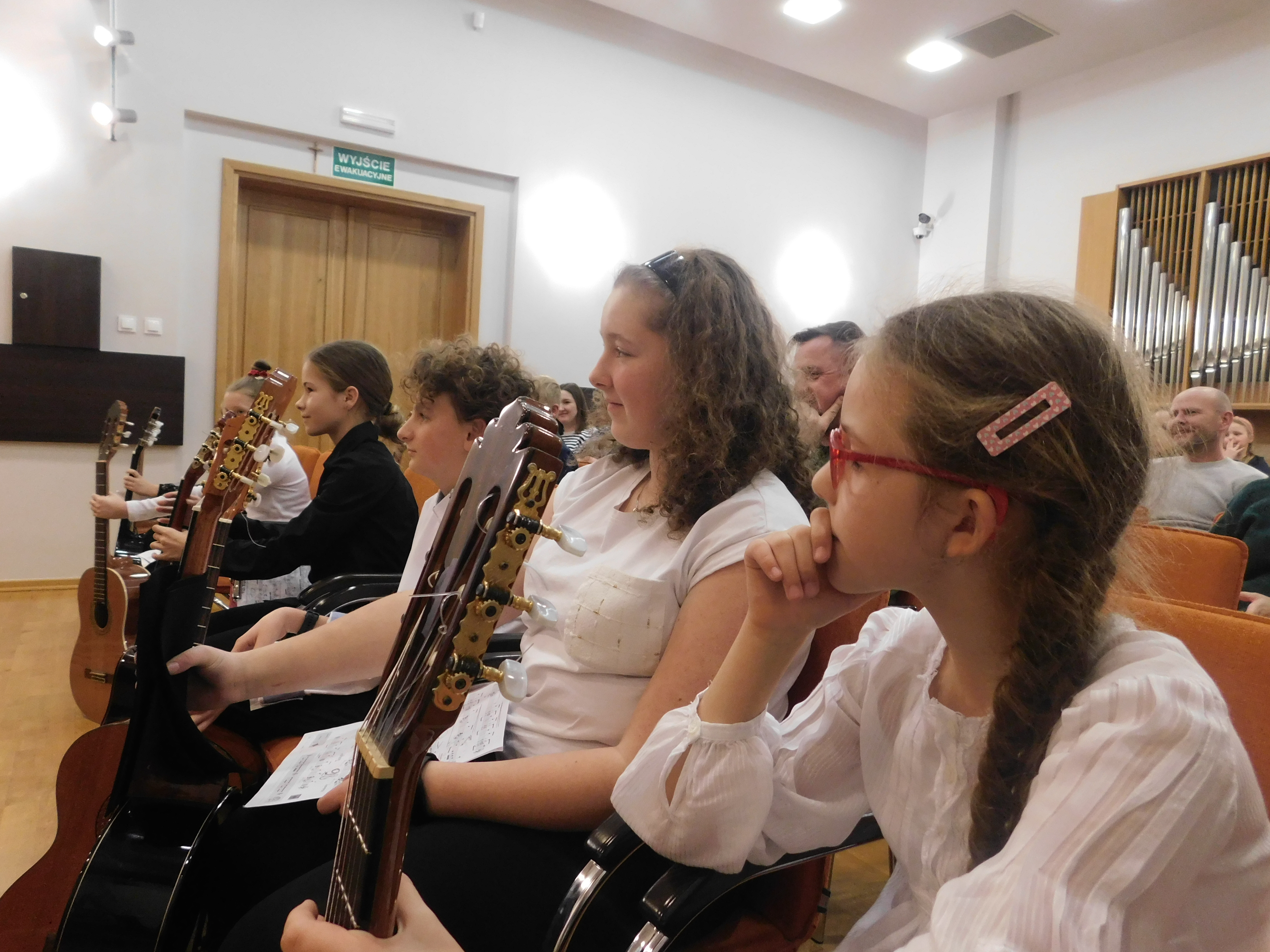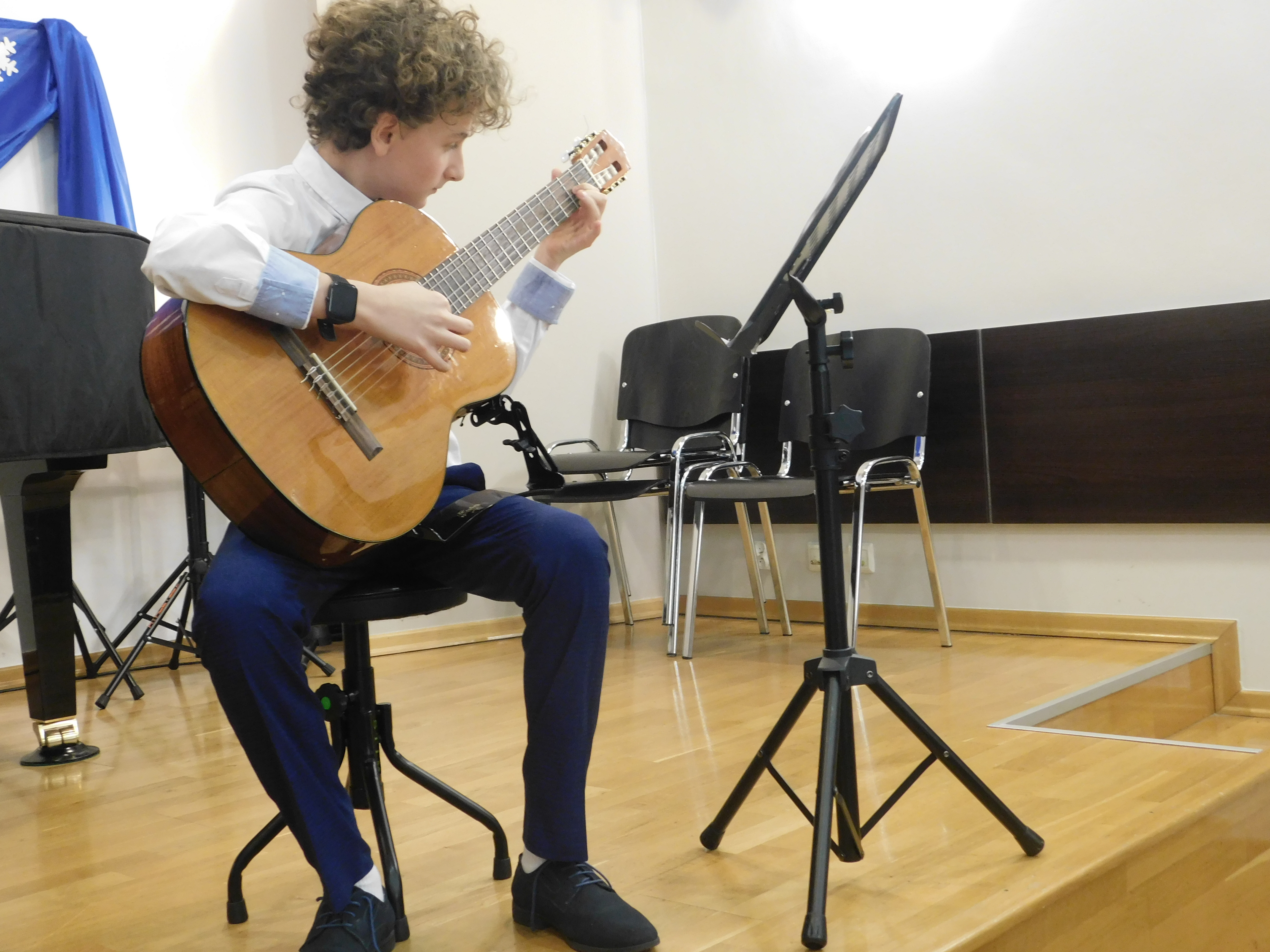 W bieżącym tygodniu w naszej szkole zapowiada się koncertowy maraton. Na miły początek w dniu 15 stycznia 2024 r. odbył się koncert, podczas którego wystąpili uczniowie klasy gitary. Młodych artystów przygotował Pan Tadeusz Wirzba. Podczas uroczystości panowała miła, rodzinna atmosfera. Uczniowie zostali nagrodzeni gromkimi brawami i słodkimi upominkami.