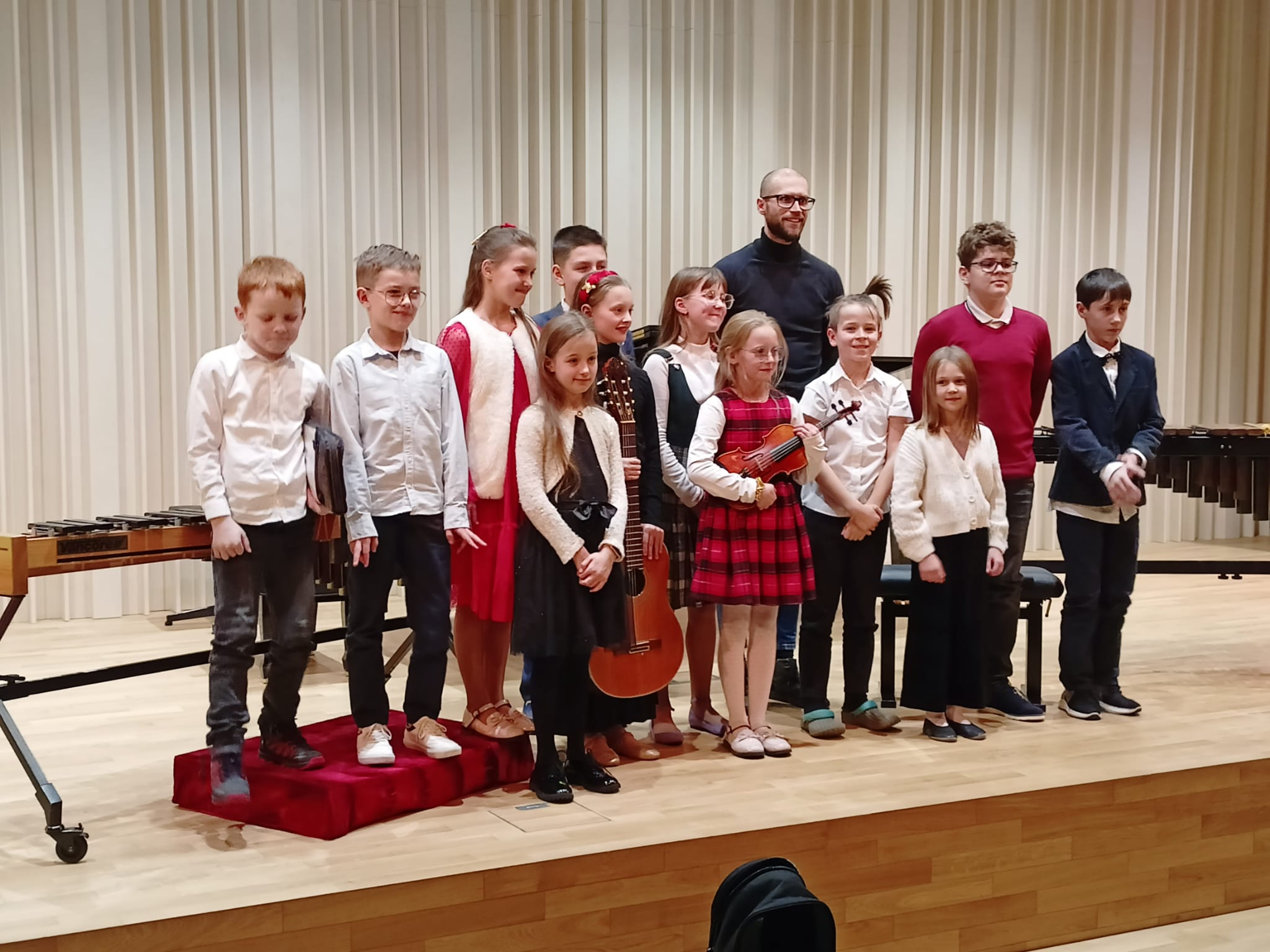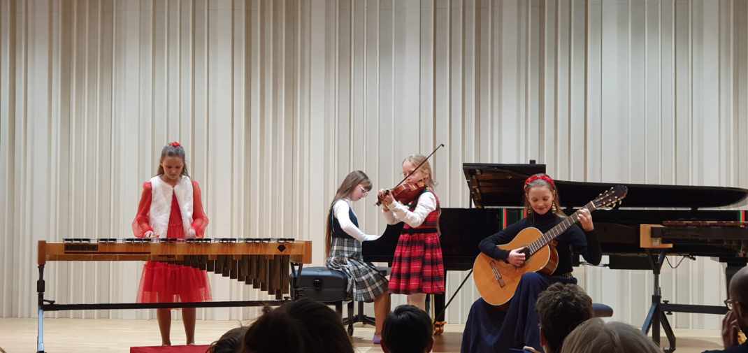 W poniedziałek 18 grudnia 2023 r. w sali koncertowej naszej szkoły wystąpili uczniowie klasy perkusji Pana Marka Czajki. Młodzi artyści poradzili sobie wyśmienicie i zostali nagrodzeni gromkimi brawami. O akompaniament zadbała Pani Klara Jachimczak. Gościnnie wystąpił zespół przygotowany przez Panią Beatę Makowską w składzie: Aniela Jąkalska- skrzypce, Anastazja Jąkalska- perkusja, Emilia Jąkalska- fortepian, Magdalena Jąkalska- gitara.