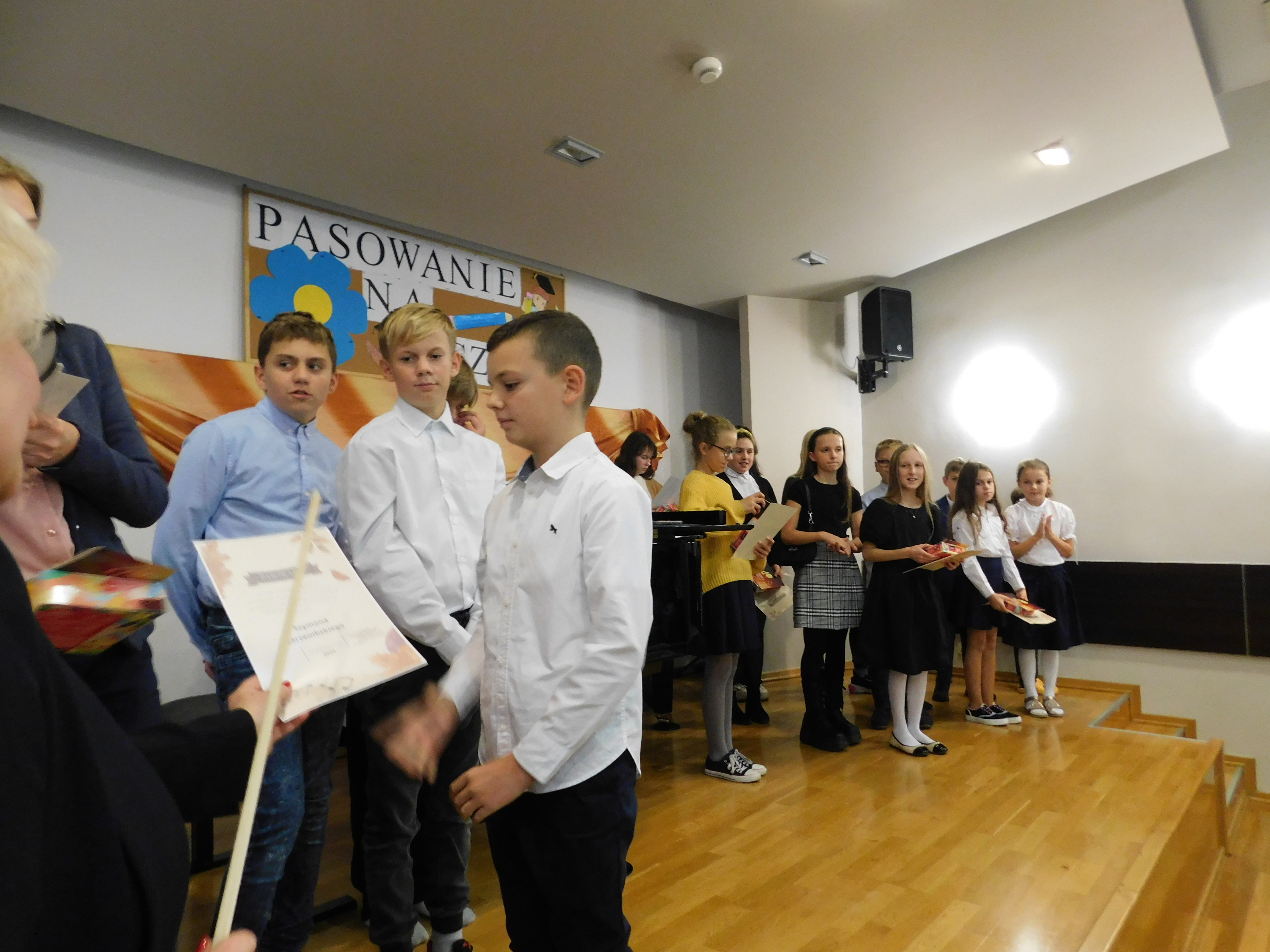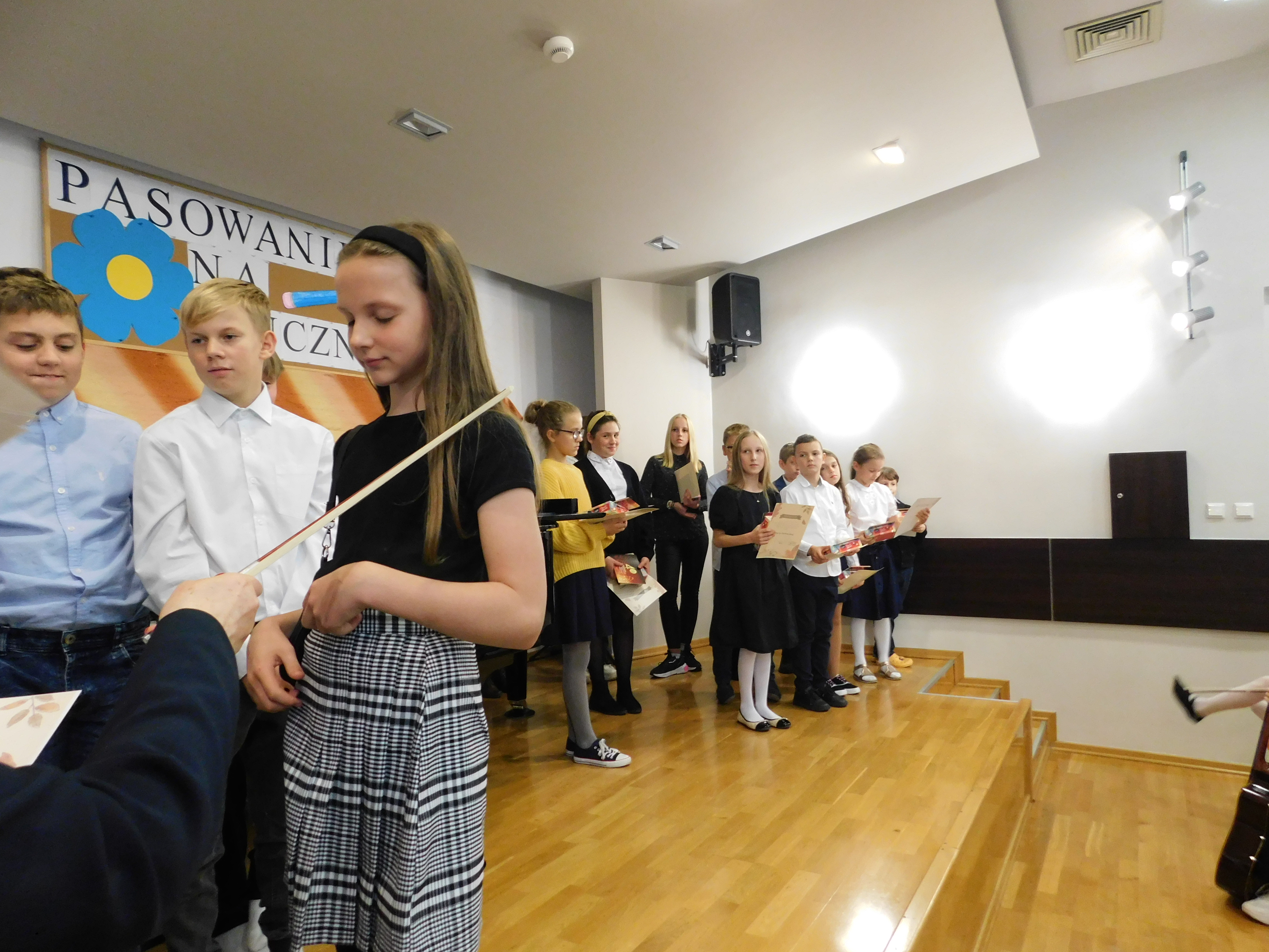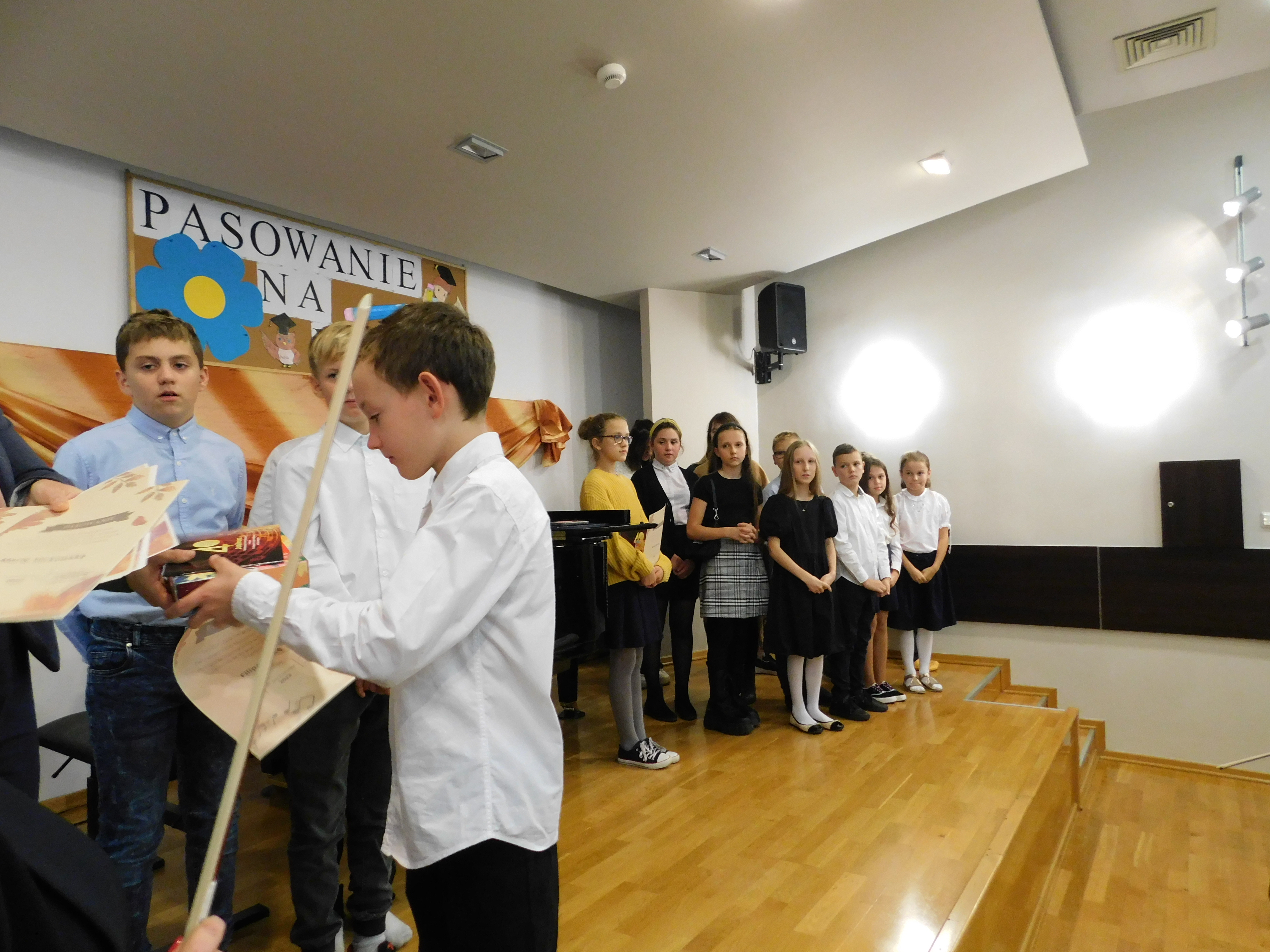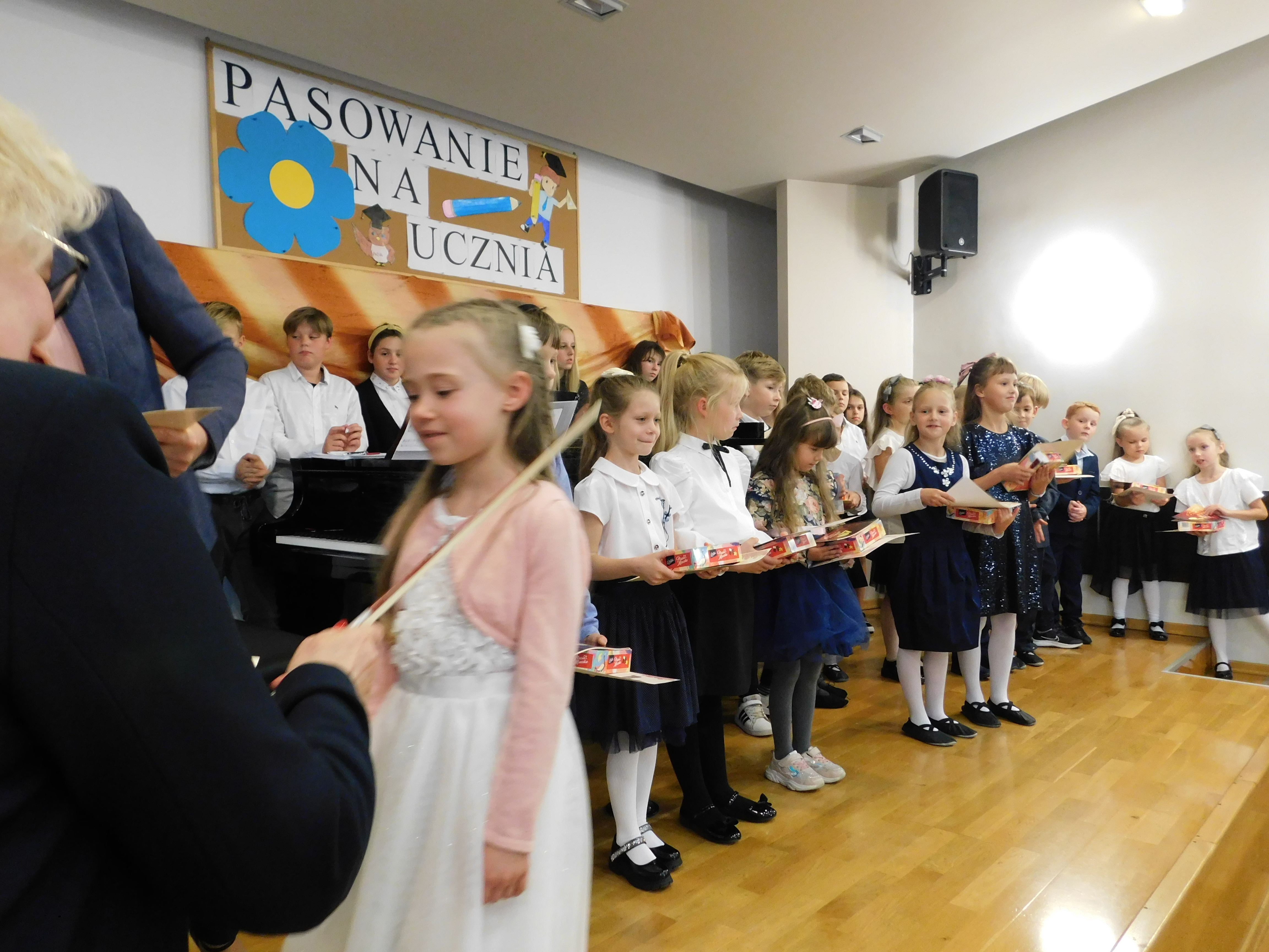 W dniu 11 października 2022 r. w naszej szkole odbył się koncert z okazji Dnia Edukacji Narodowej połączony z uroczystym ślubowaniem uczniów klas I. Ślubowanie pierwszoklasistów wzbudziło wiele emocji. Aktu pasowania smyczkiem dokonała dyrektor szkoły Pani Katarzyna Karczewska. Tym samym pierwszaki zostały włączone do społeczności uczniowskiej Państwowej Szkoły Muzycznej I stopnia im. Mazurka Dąbrowskiego w Kościerzynie. Uczniowie otrzymali pamiątkowe dyplomy i słodkie upominki.