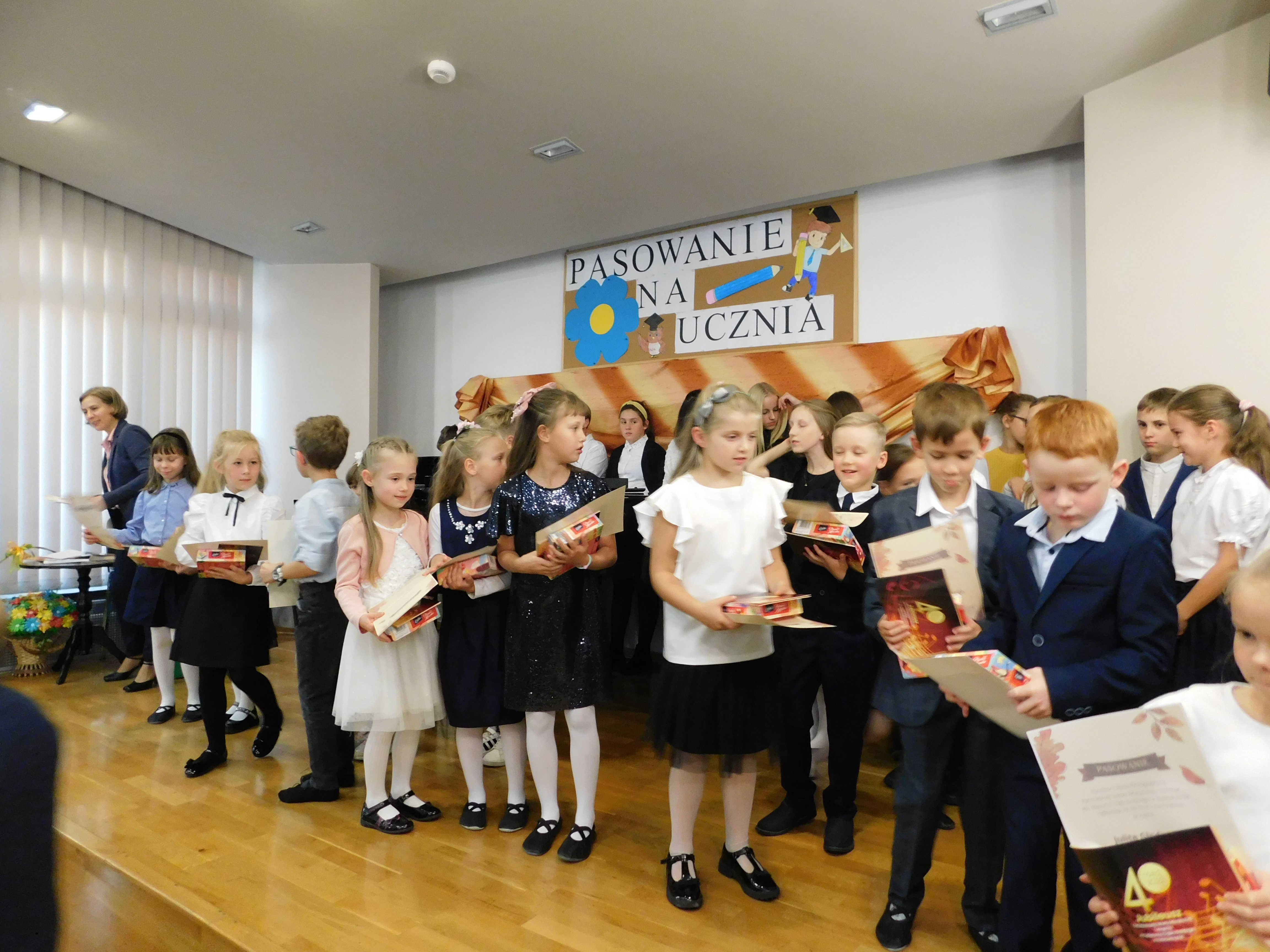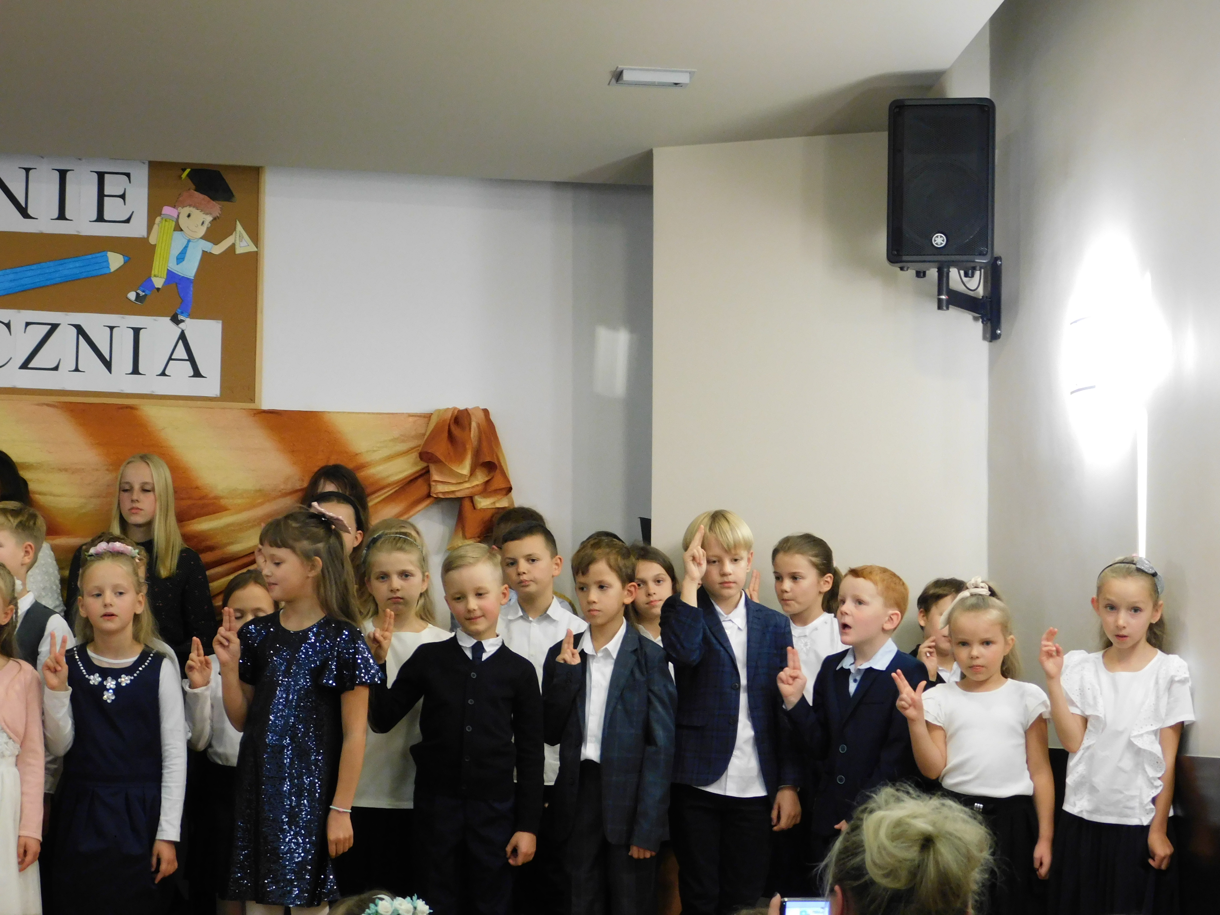 Po zakończeniu ślubowania dyrektor szkoły zaprosiła gości do wysłuchania koncertu z okazji Dnia Edukacji Narodowej w wykonaniu uczniów naszej szkoły.