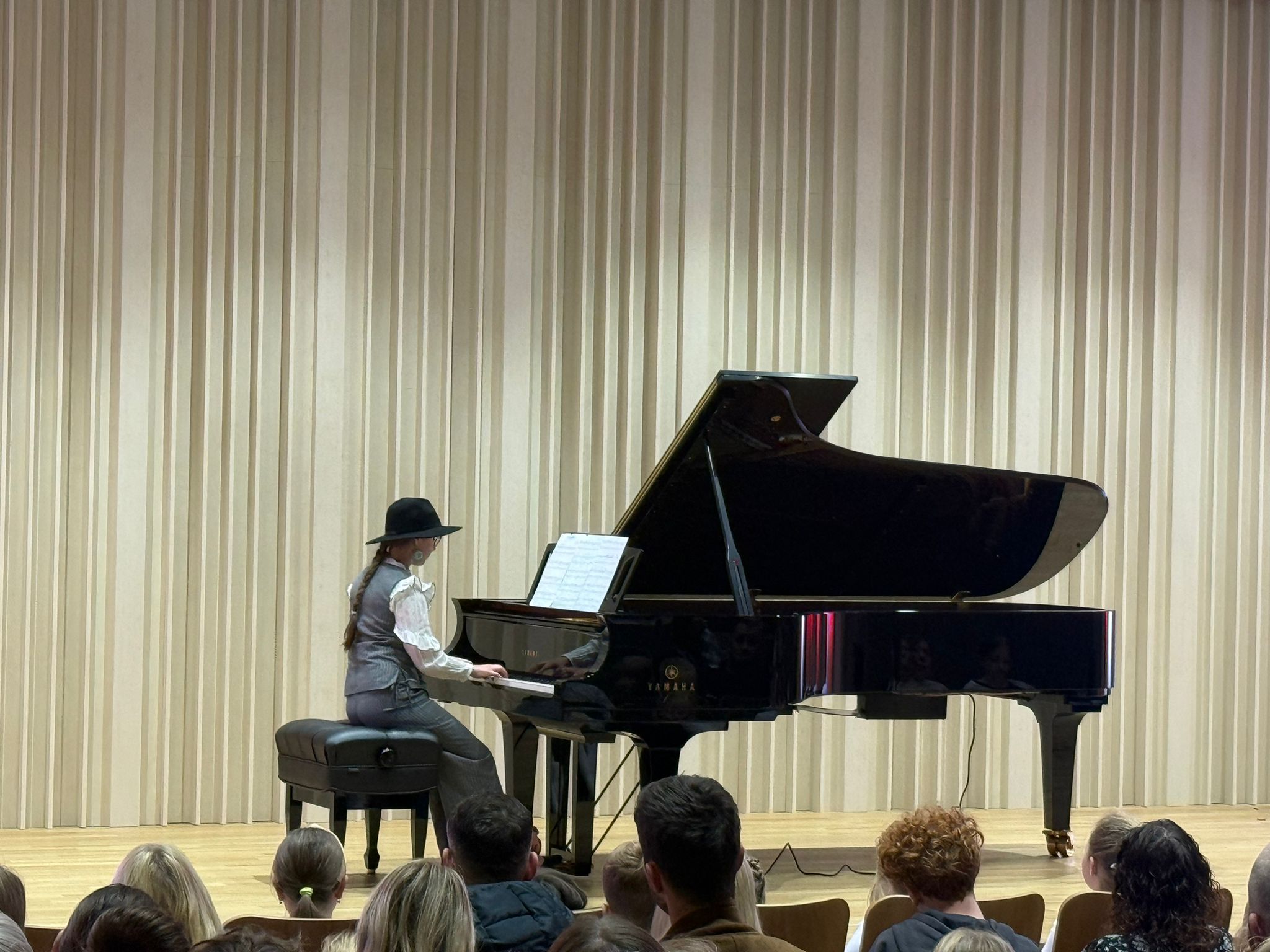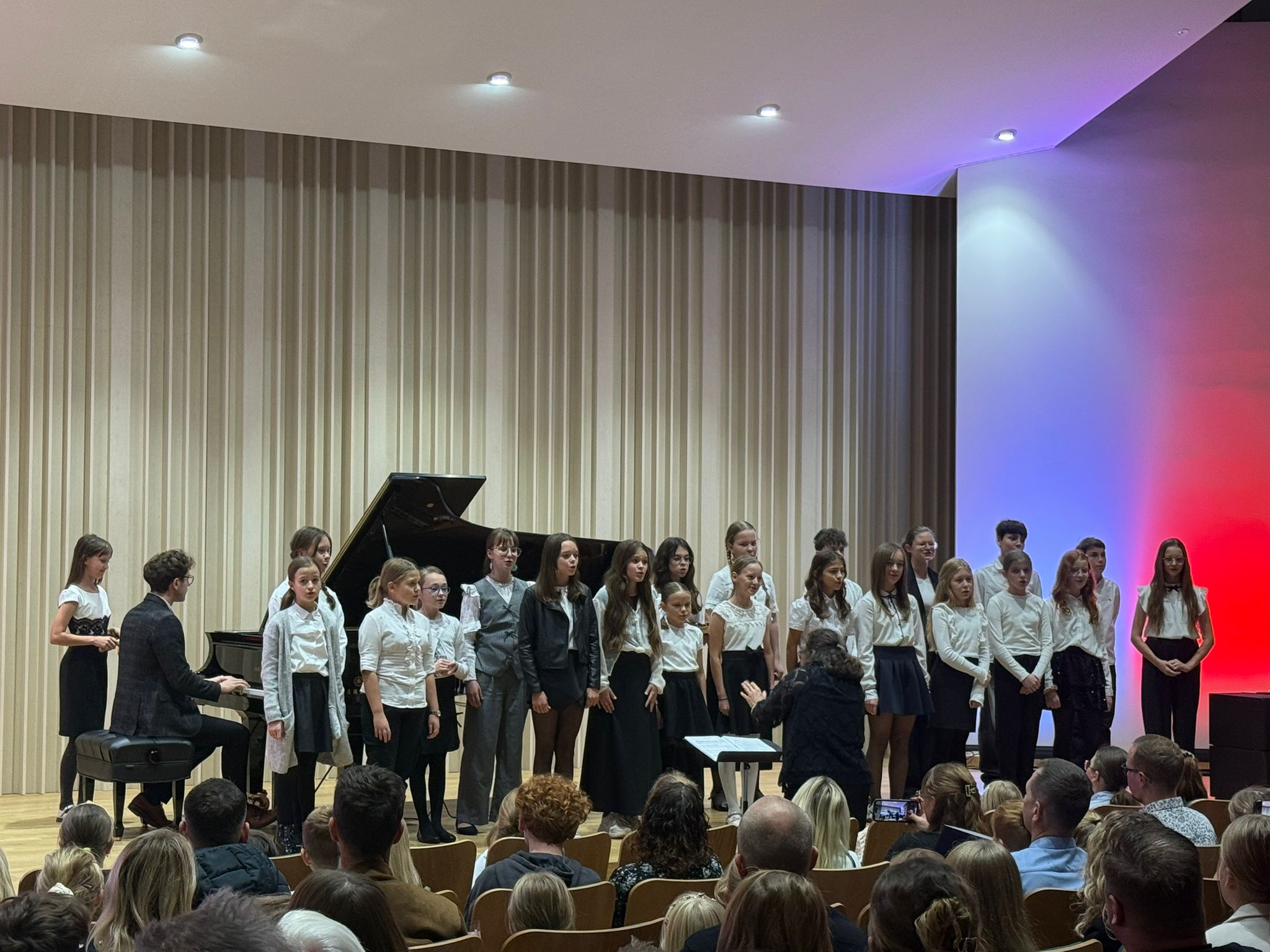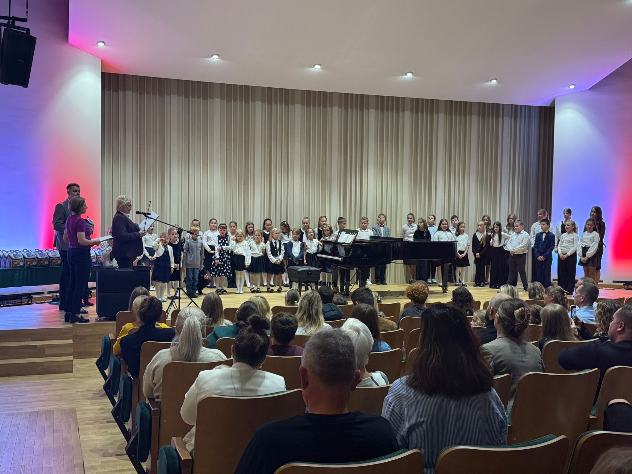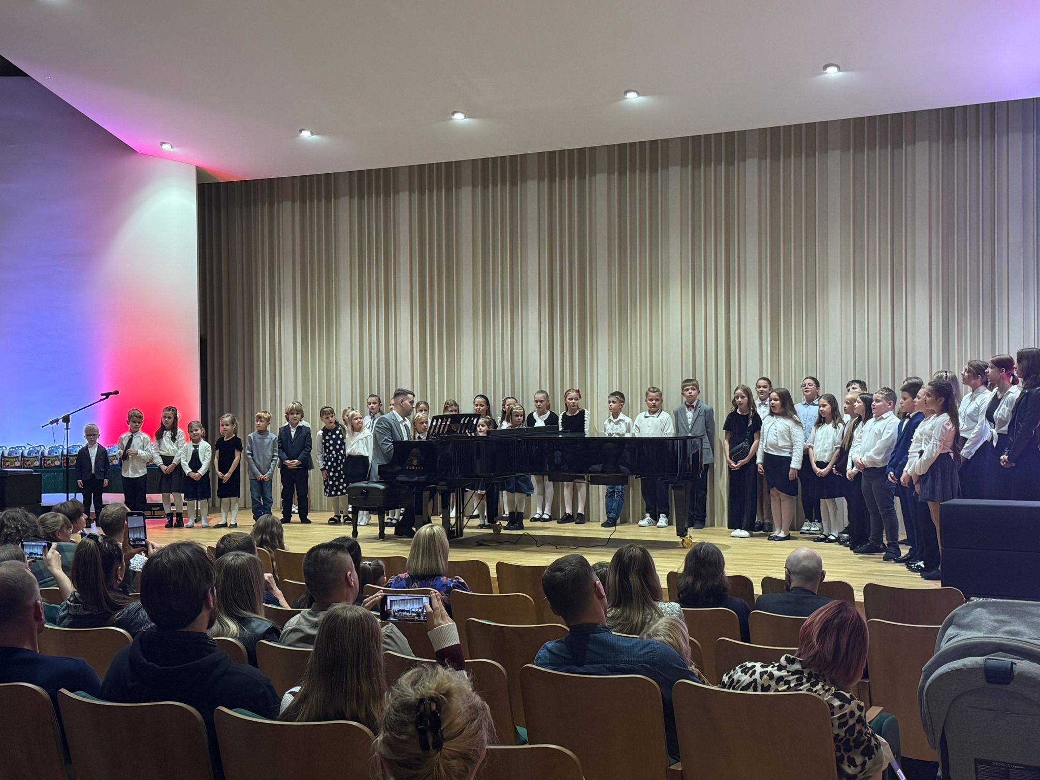 Po zakończeniu ceremonii ślubowania, Pani Dyrektor zaprosiła zgromadzonych na koncert z okazji Dnia Edukacji Narodowej, przygotowany przez uczniów naszej szkoły. Publiczność miała okazję usłyszeć występy solowe, duety, zespoły kameralne oraz chór – wszystko w wykonaniu młodych, zdolnych muzyków.