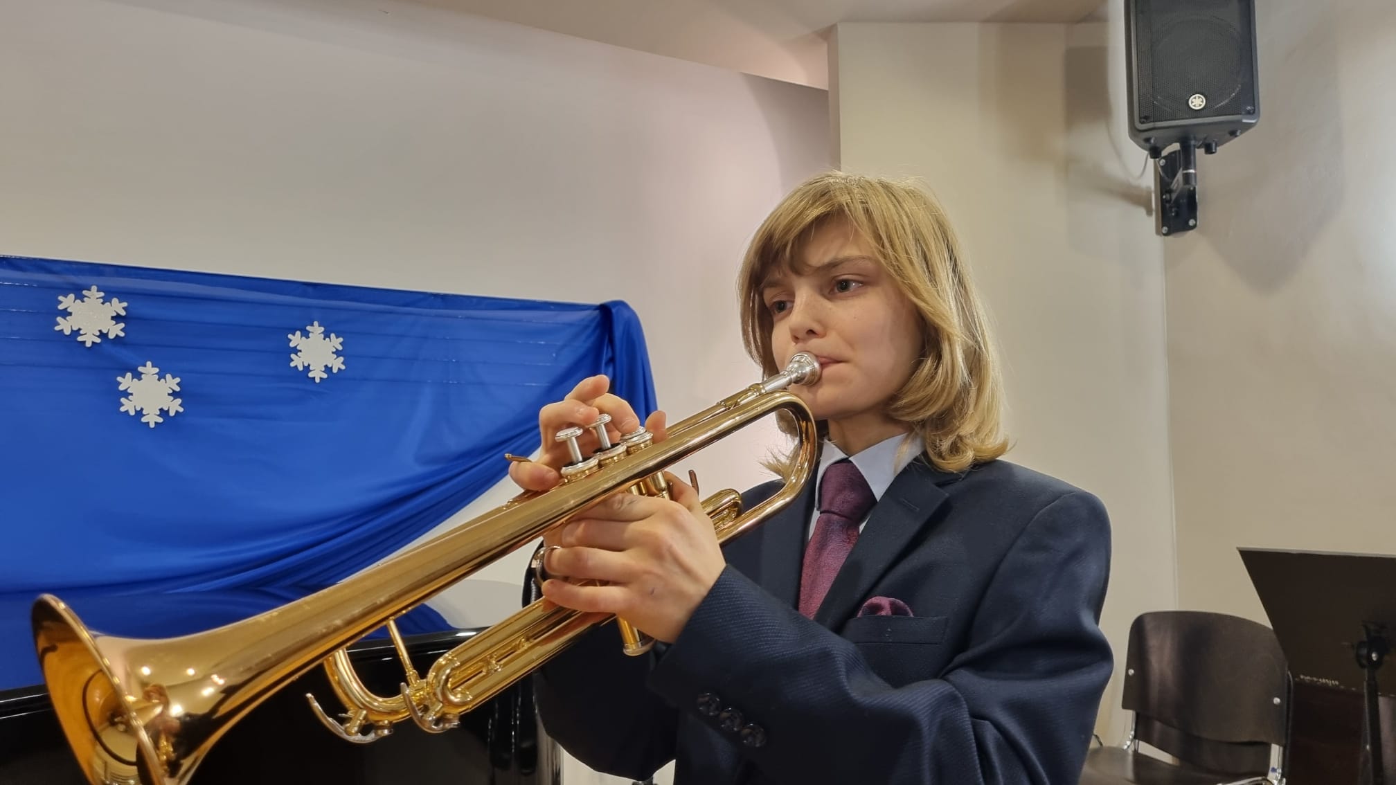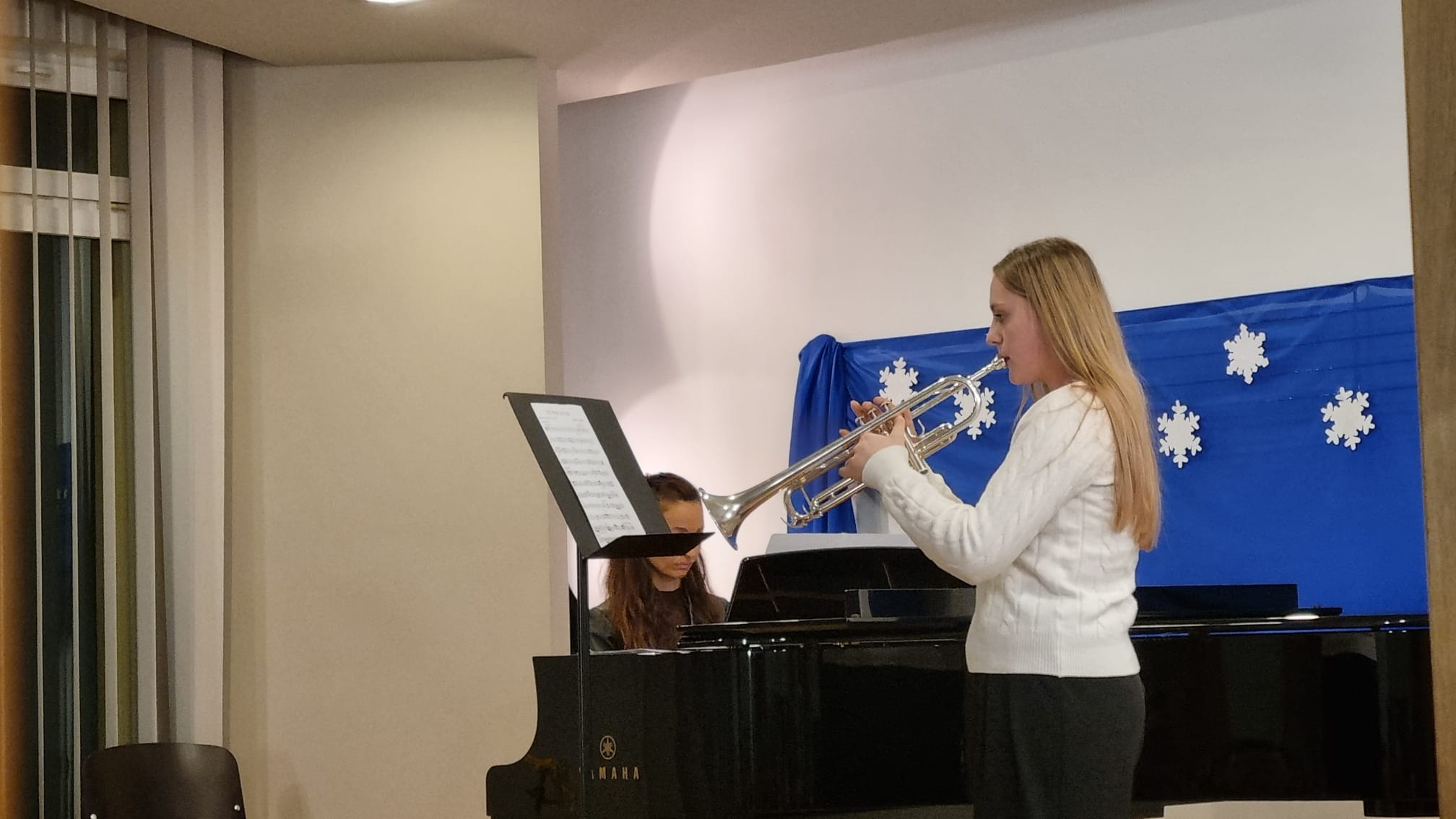 Uczniom klasy trąbki przy fortepianie akompaniowała Pani Eugenia Mazur, której profesjonalny akompaniament stanowił ważne wsparcie dla solistów i podkreślał walory artystyczne wykonywanych utworów.