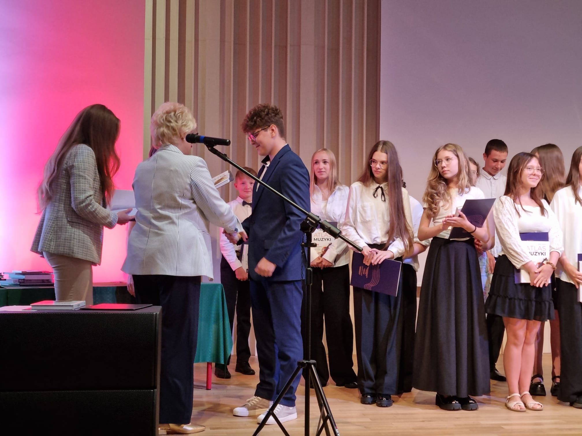 W czwartek, 26 czerwca 2025 r., w sali koncertowej naszej szkoły odbyła się uroczystość zakończenia roku szkolnego, podczas której pożegnano 27 absolwentów kończących pierwszy etap swojej edukacji muzycznej.