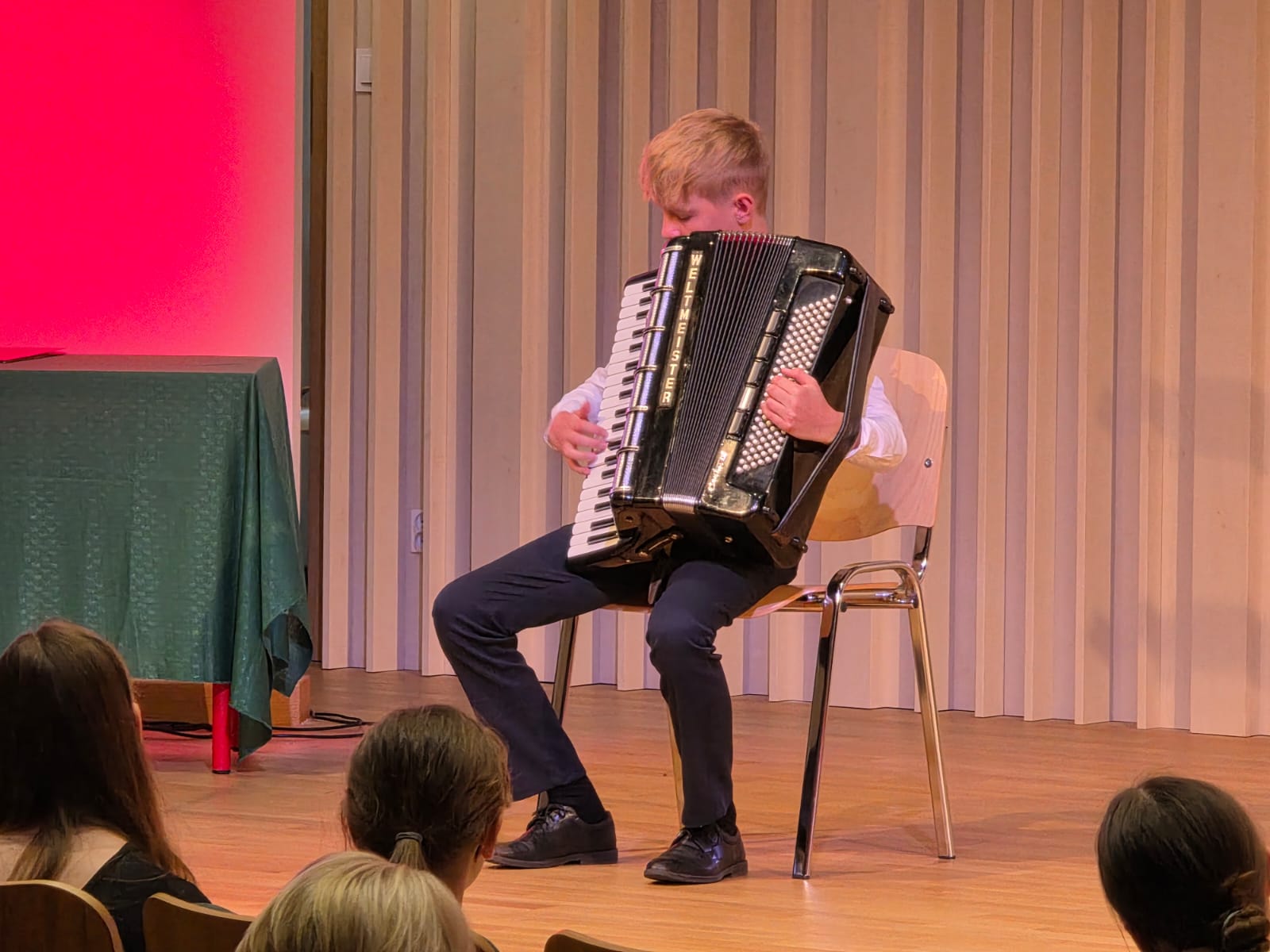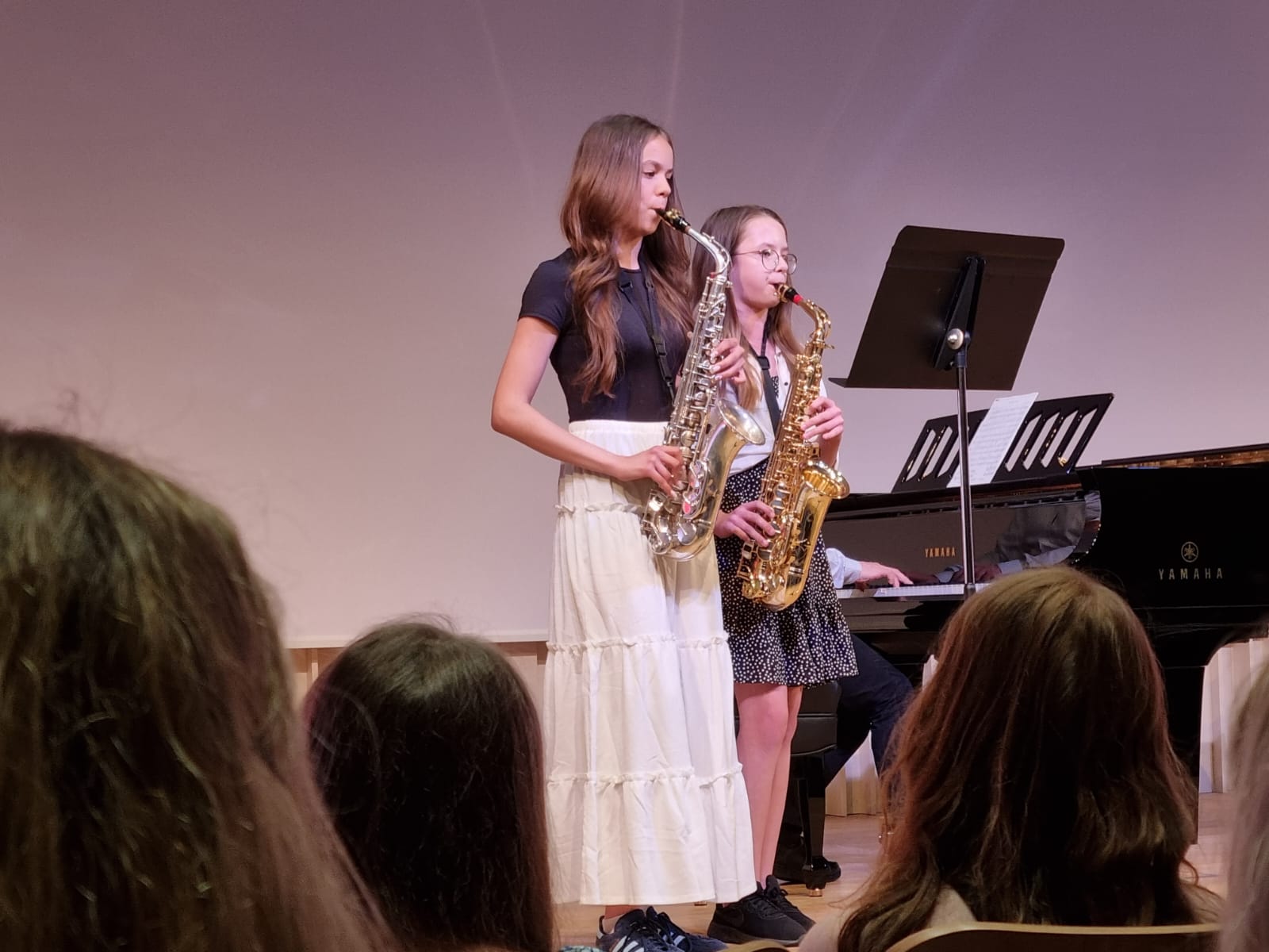 Zwieńczeniem uroczystości był koncert w wykonaniu uczniów kończących szkołę. Publiczność nagrodziła młodych artystów gromkimi brawami, doceniając nie tylko ich talent, ale i ogrom pracy włożonej w przygotowanie występów. Po zakończeniu koncertu wszyscy zgromadzeni mieli okazję do wspólnych rozmów, zdjęć i podzielenia się planami na przyszłość przy poczęstunku, który został przygotowany przez rodziców naszych absolwentów.