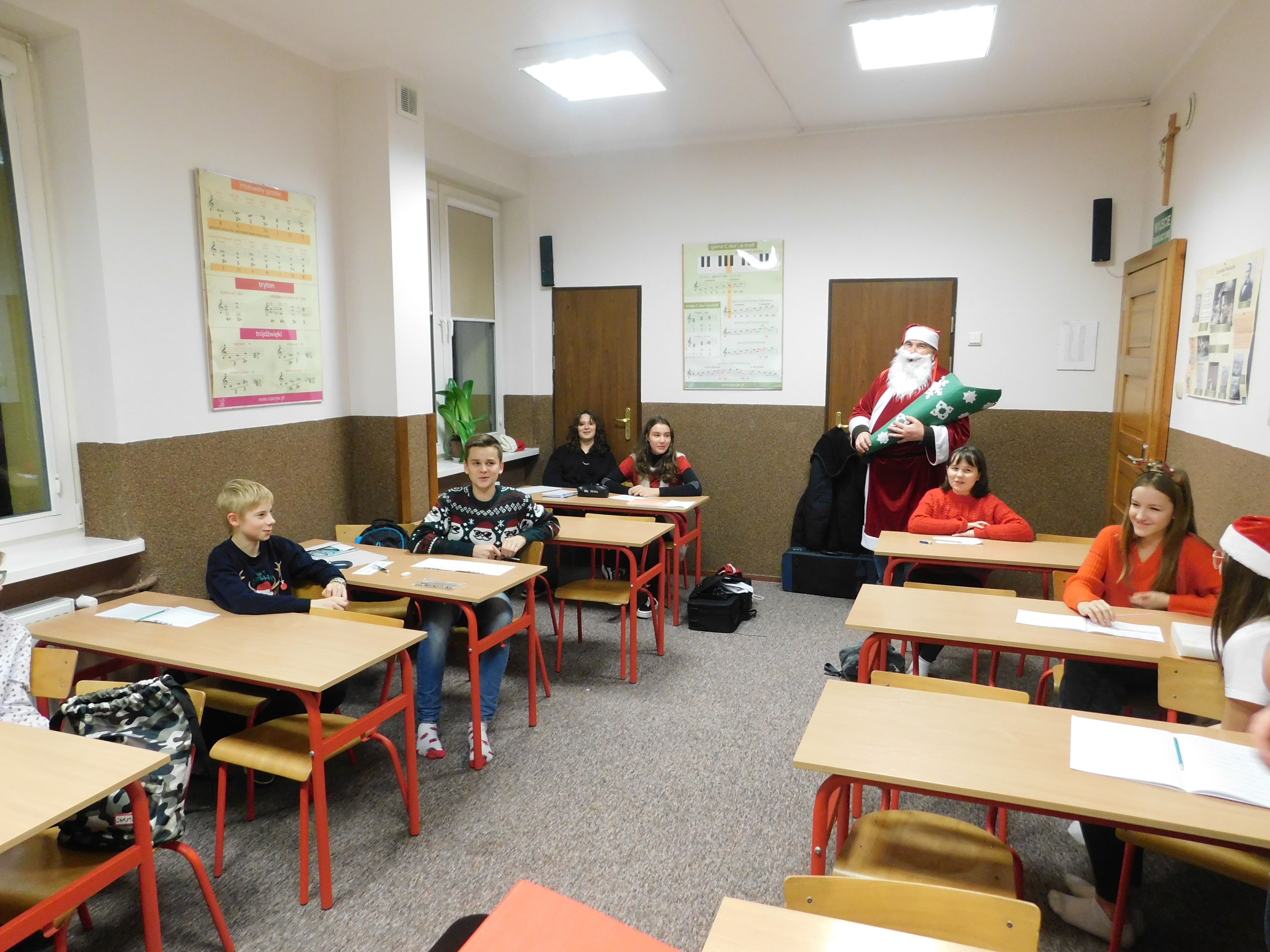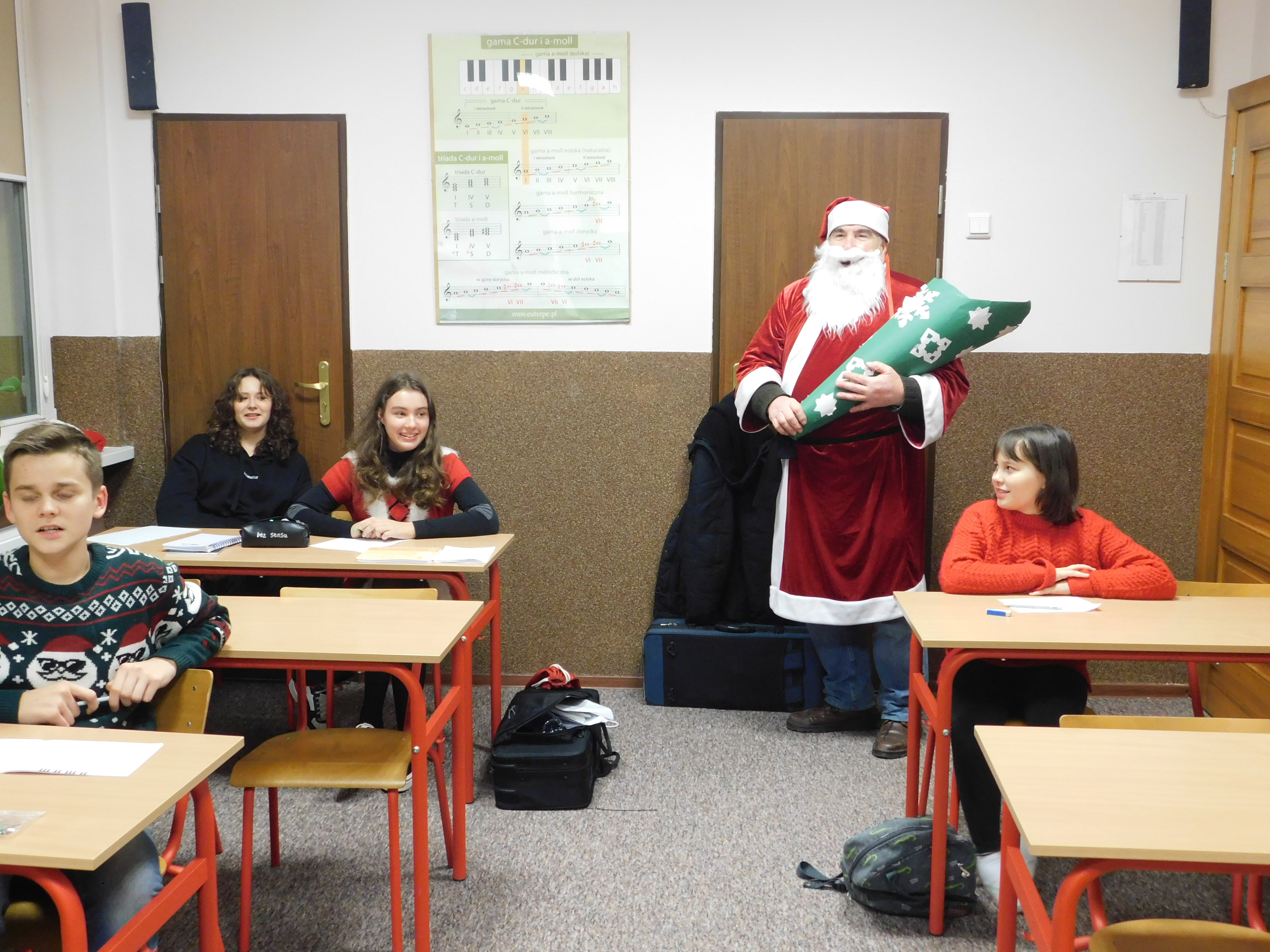 W dniu 06 grudnia 2022 r. gościliśmy w naszej szkole św. Mikołaja. Częstował on uczniów słodkościami. Nie zabrakło wspólnego muzykowania. O słodkie upominki zadbały elfy św. Mikołaja.