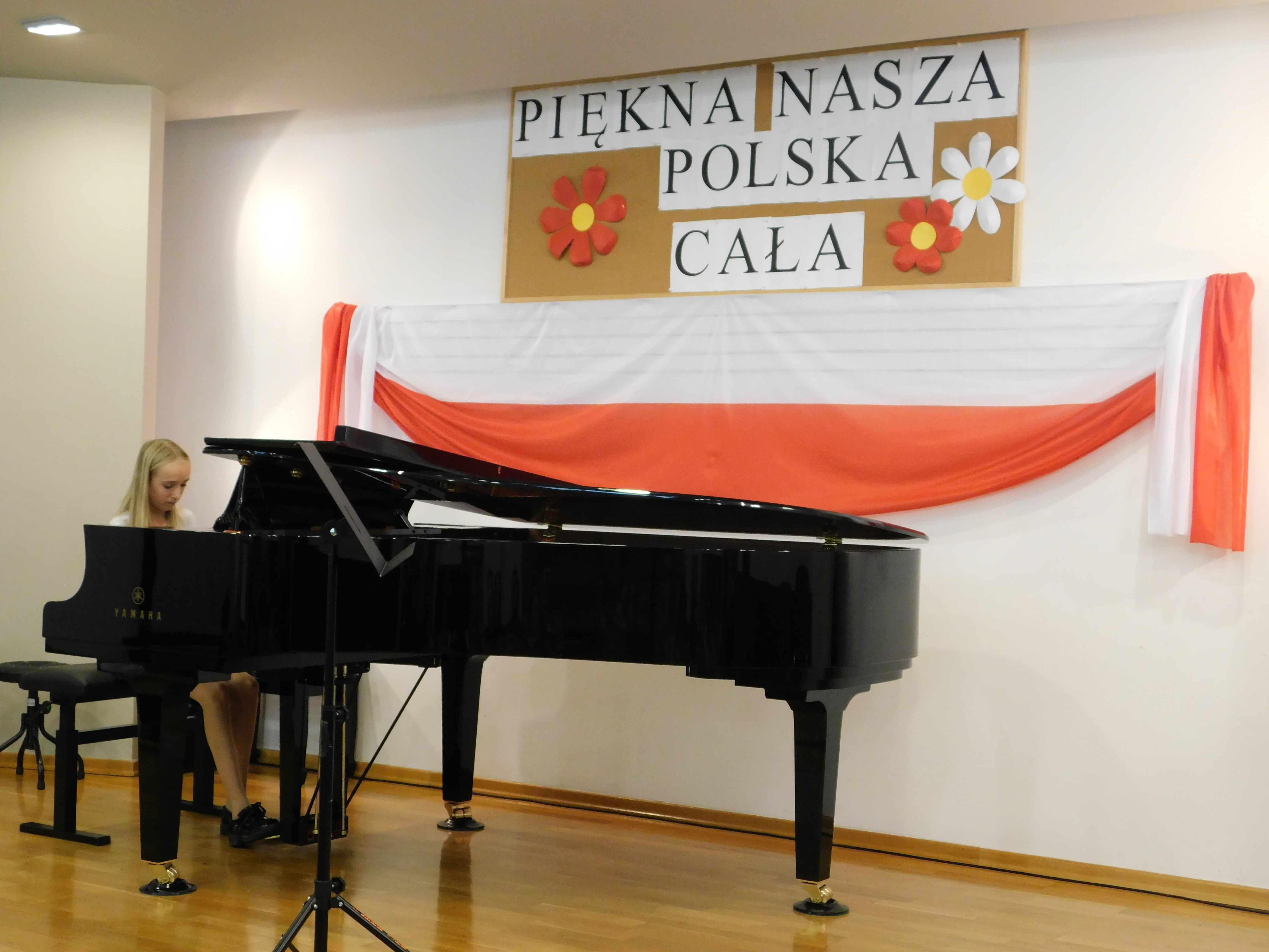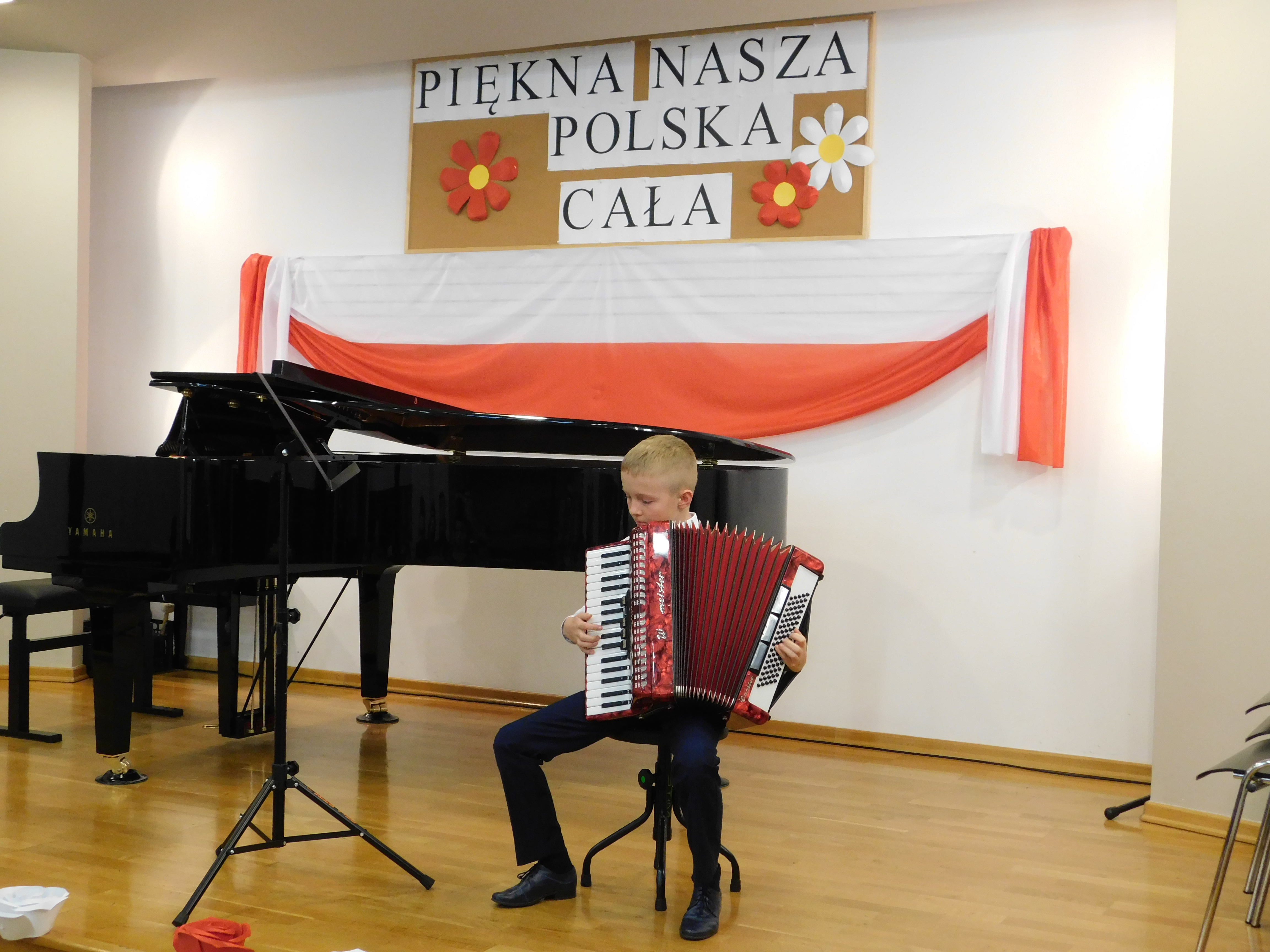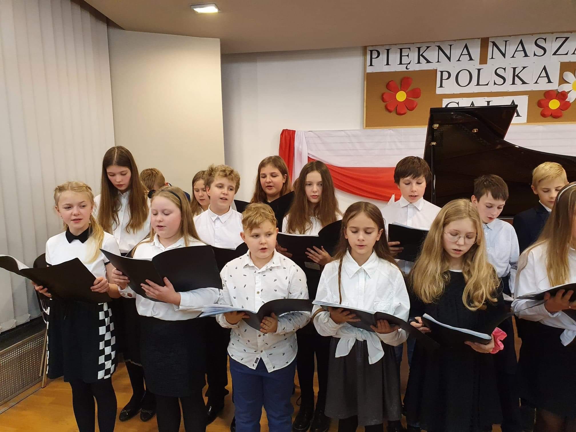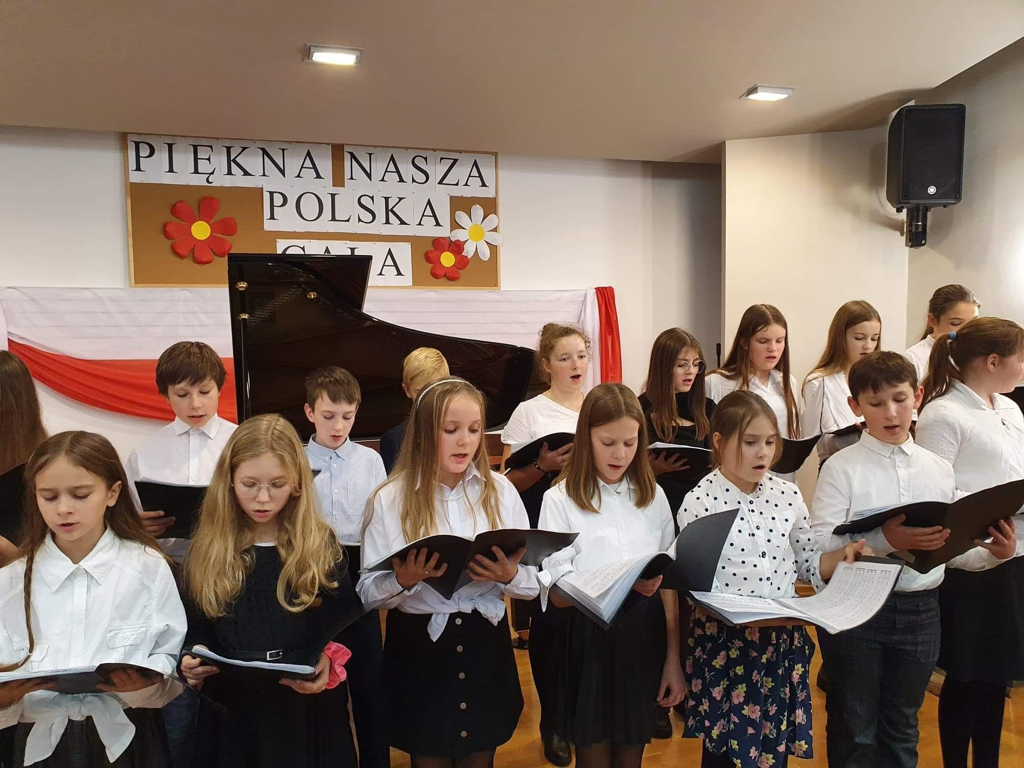 Galeria przedstawia zdjęcia z występów uczniów podczas koncertu pod tytułem „PIĘKNA NASZA POLSKA CAŁA”.