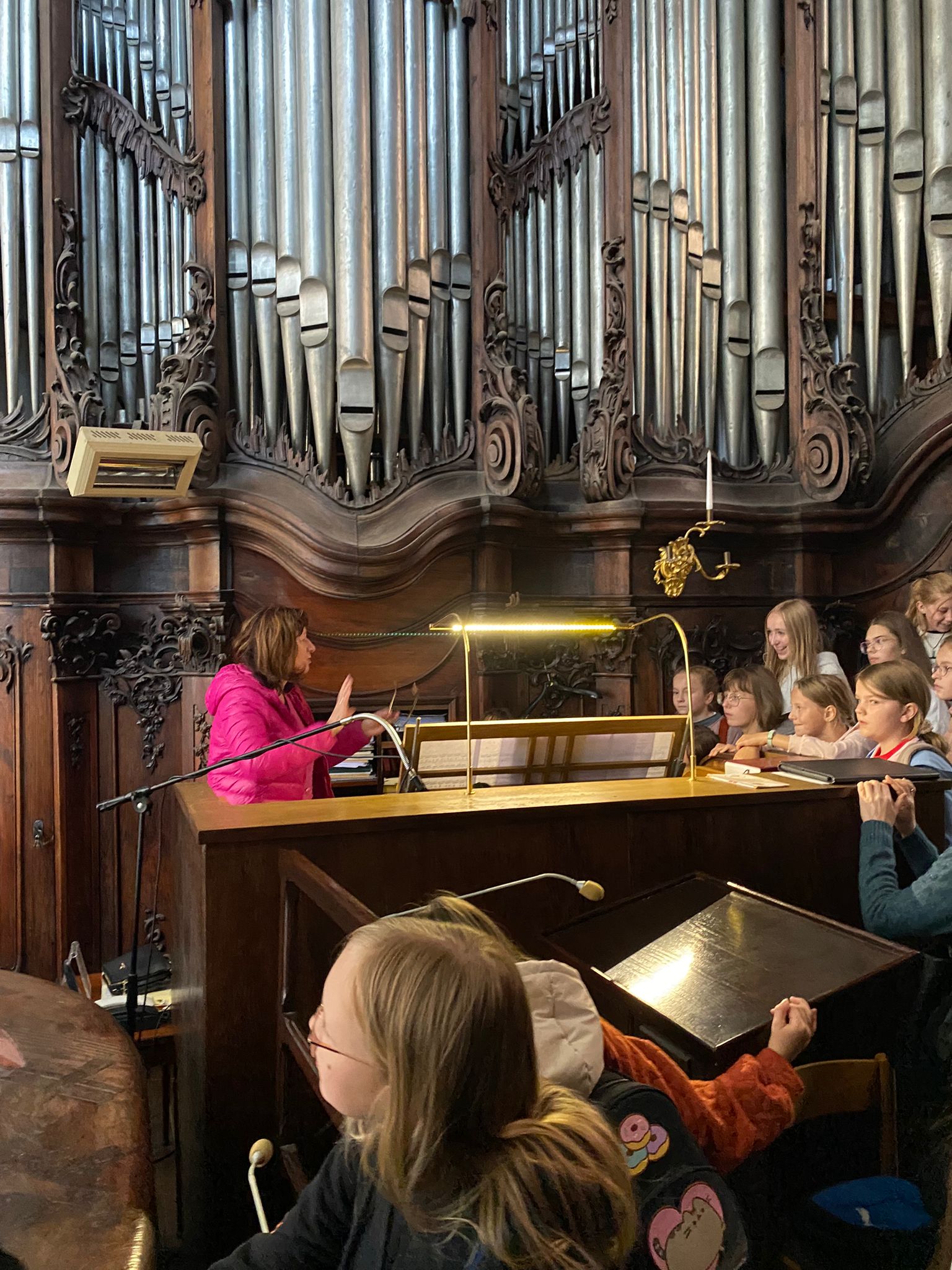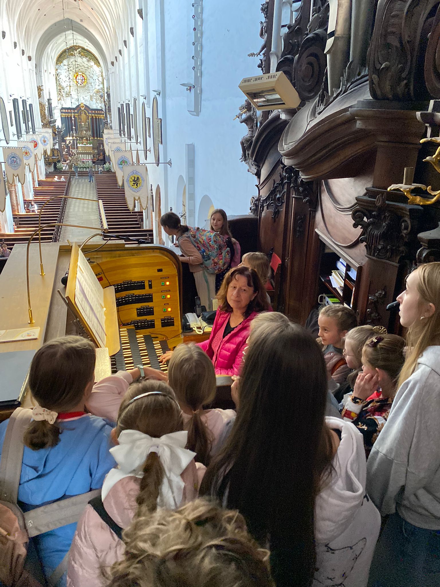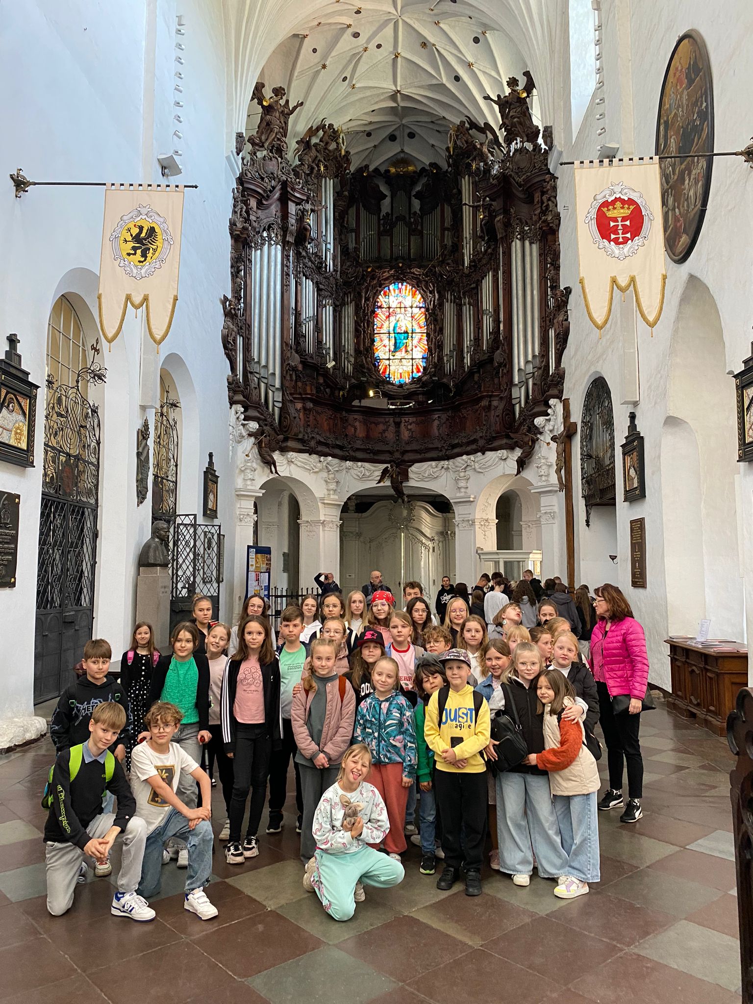 Kolejnym etapem naszej wycieczki była Katedra Oliwska, słynąca ze swoich monumentalnych organów. Podczas krótkiego koncertu mogliśmy na własne uszy przekonać się, jak potężny i piękny jest dźwięk tego niezwykłego instrumentu. Pani Katarzyna Olszewska, nasza przewodniczka, przybliżyła nam historię katedry oraz wiele ciekawostek dotyczących samych organów – ich budowy, działania i znaczenia w muzyce sakralnej.