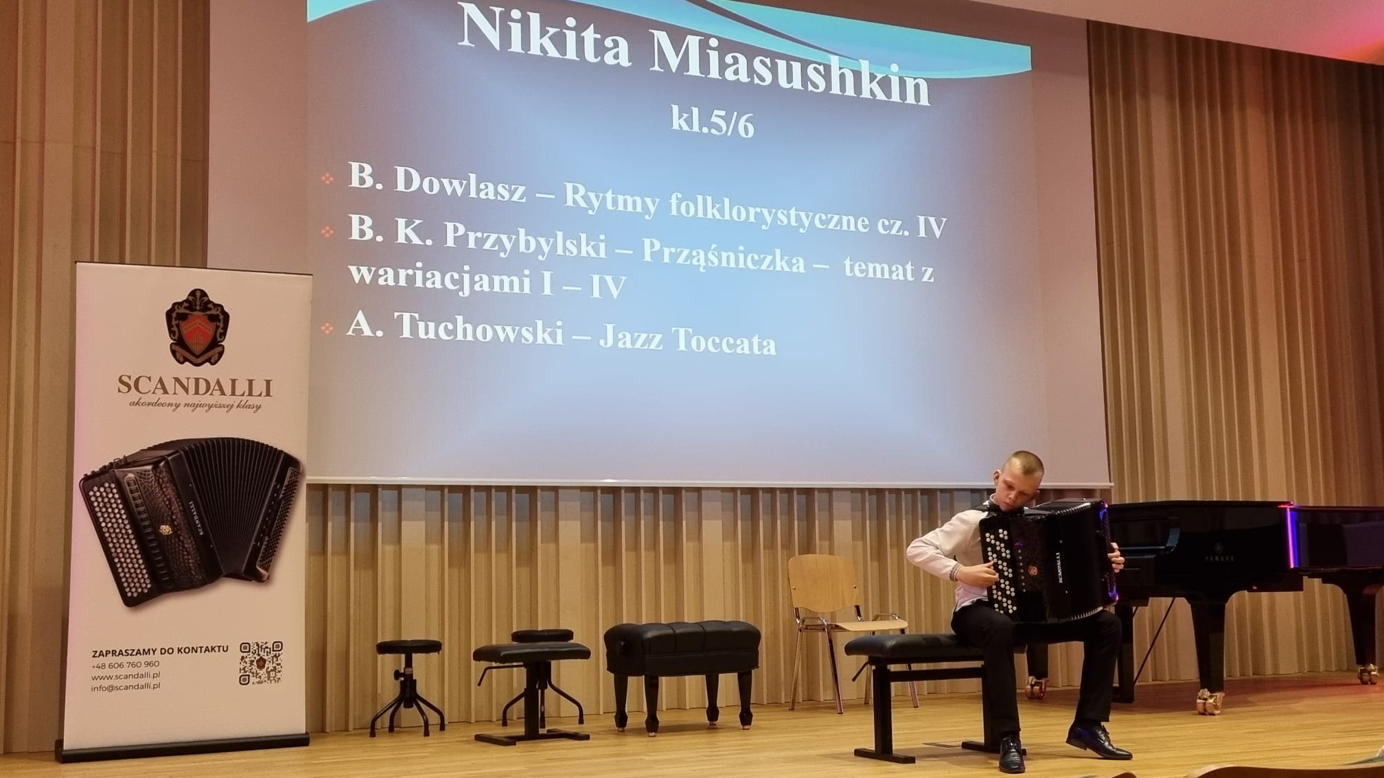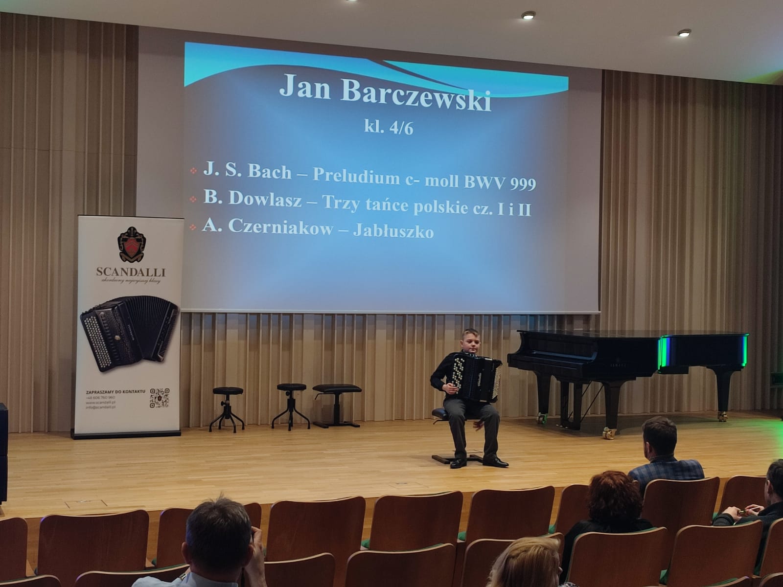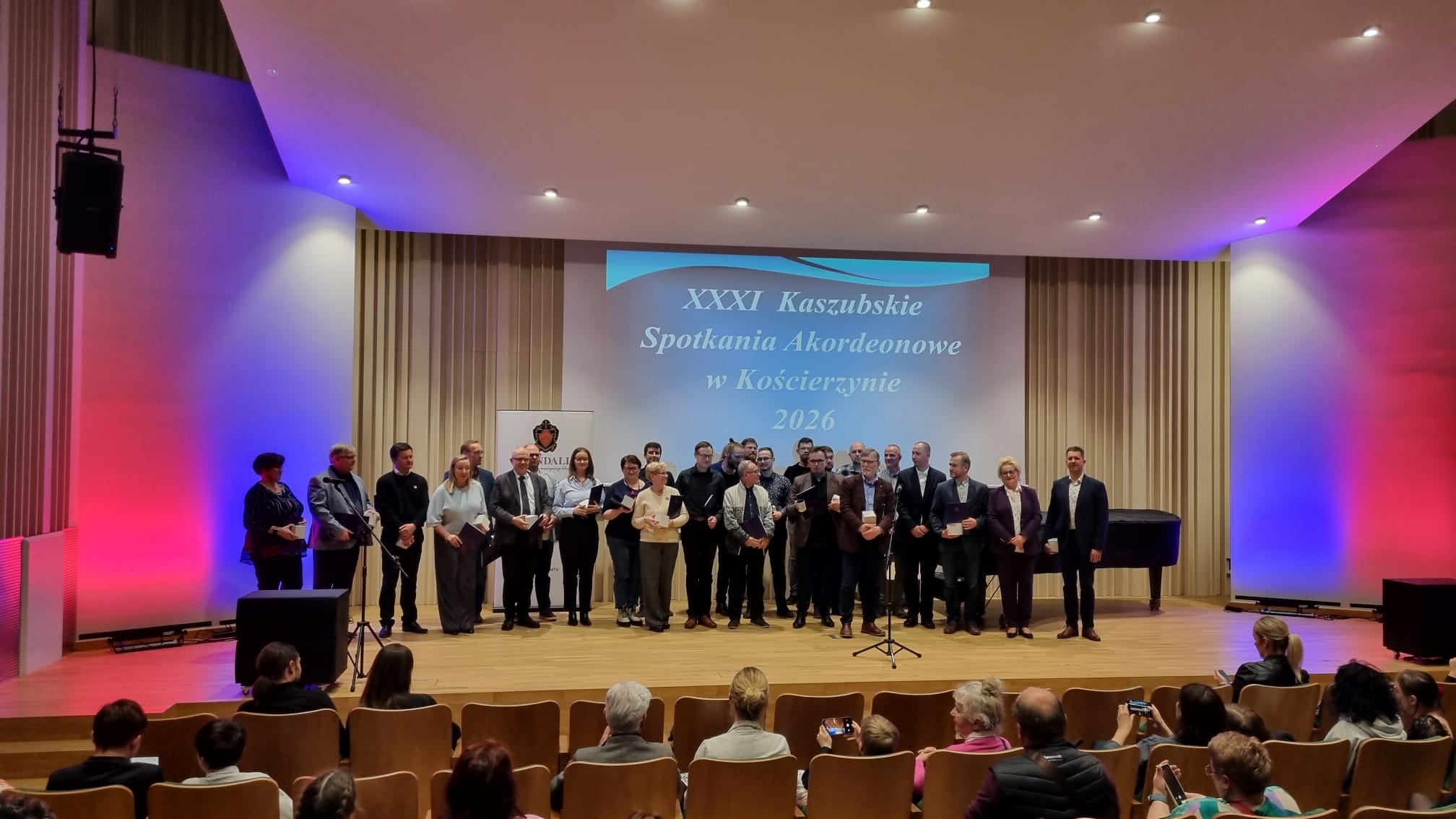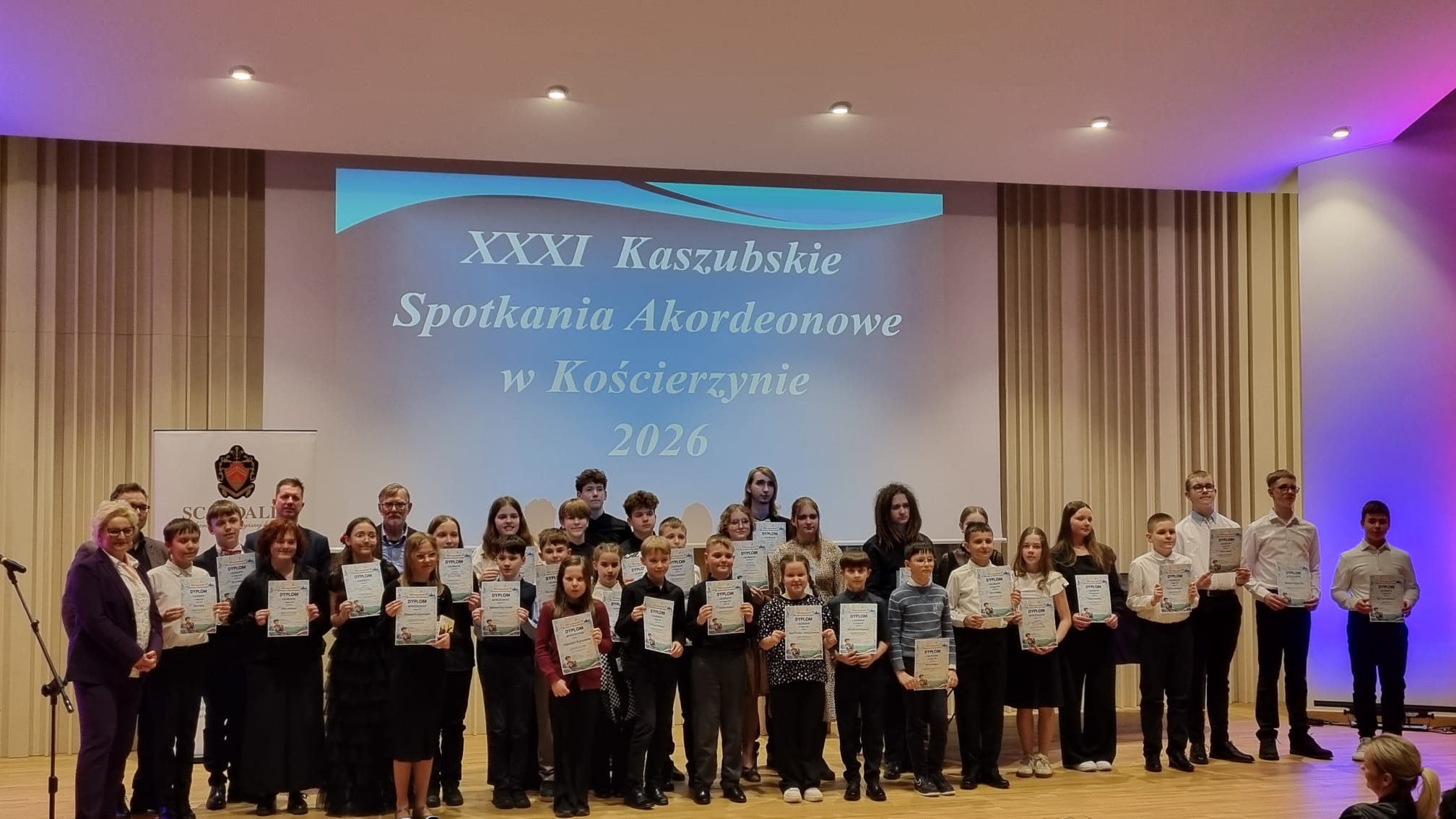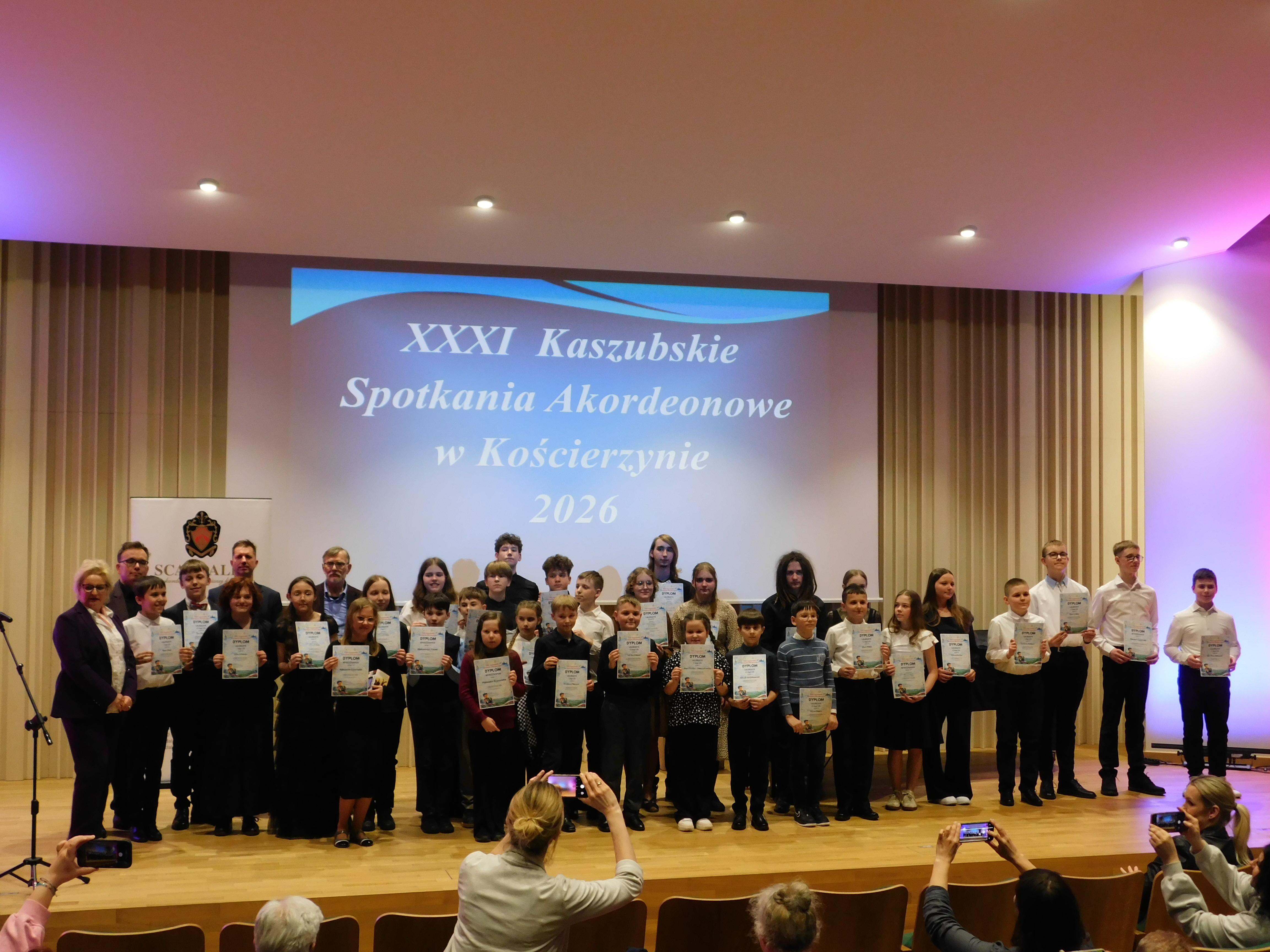 W dniu 17 marca (wtorek) 2026 r. w naszej szkole odbyły się XXXI Kaszubskie Spotkania Akordeonowe. Jury w składzie: prof. dr hab. Krzysztof Olczak, dr hab. Paweł Zagańczyk i mgr Maciej Ćwikliński przesłuchało 53 uczniów oraz 4 zespoły z 25 szkół muzycznych województw: pomorskiego, kujawsko- pomorskiego, zachodniopomorskiego i warmińsko- mazurskiego. Uczniów przygotowało 28 nauczycieli. W ramach XXXI Kaszubskich Spotkań Akordeonowych odbył się wykład seminaryjny dla nauczycieli szkół muzycznych I stopnia na temat: „Poprawna realizacja technik gry na przykładzie wybranych utworów Bogdana Dowlasza". Na wszystkich uczestników i nauczycieli, jak co roku, czekały pamiątkowe kubeczki. W wolnym czasie można było podziwiać wystawę akordeonów, którą przygotował Pan Zygmunt Czupryn- przedstawiciel akordeonów Scandalli w Polsce.