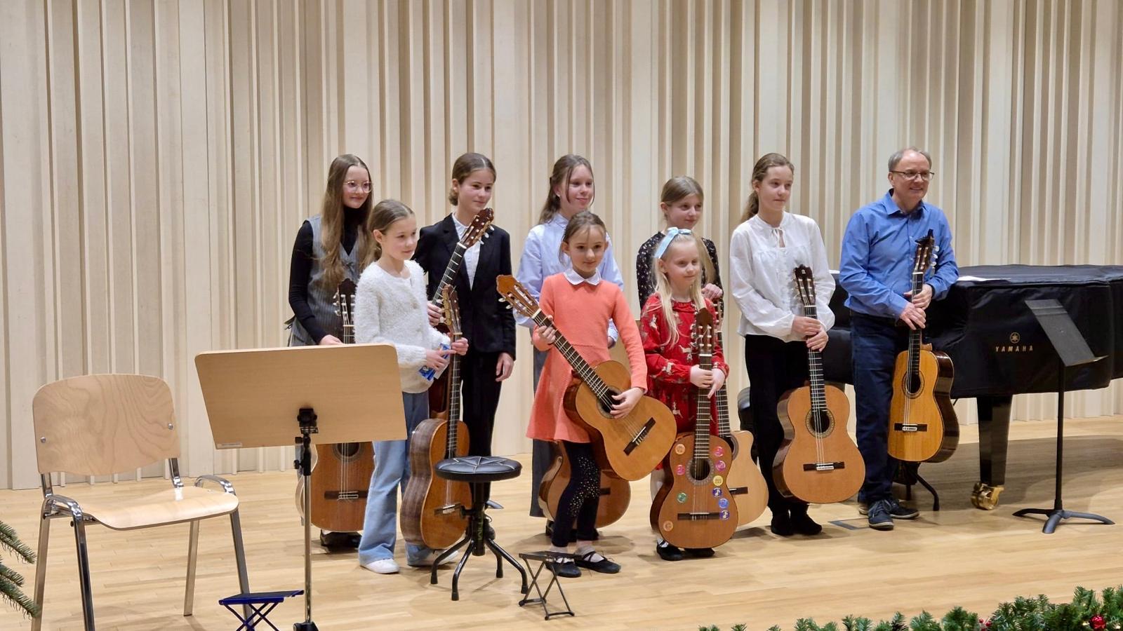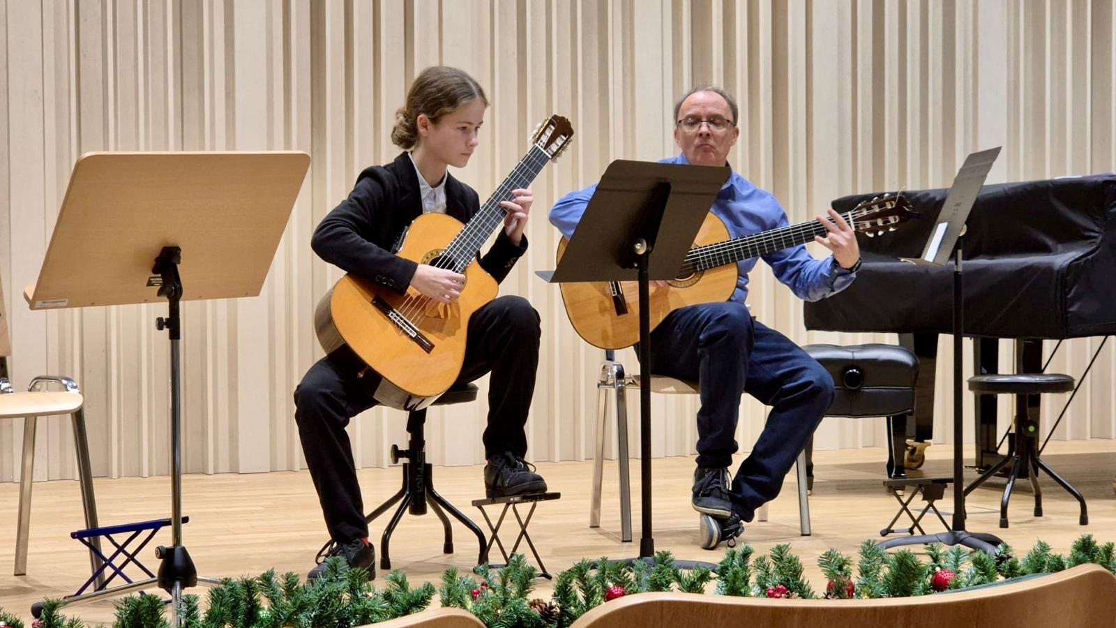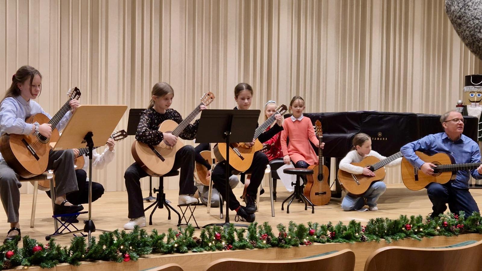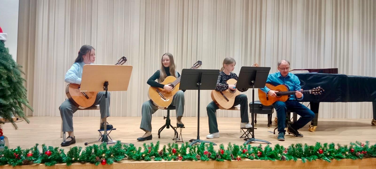 W dniu 19 grudnia 2025 r. w sali koncertowej odbył się popis uczniów klasy gitary Pana Tadeusza Wirzby. Oprócz wykonań utworów solowych gitarzyści mieli możliwość wspólnego muzykowania w zespołach wraz z nauczycielem.